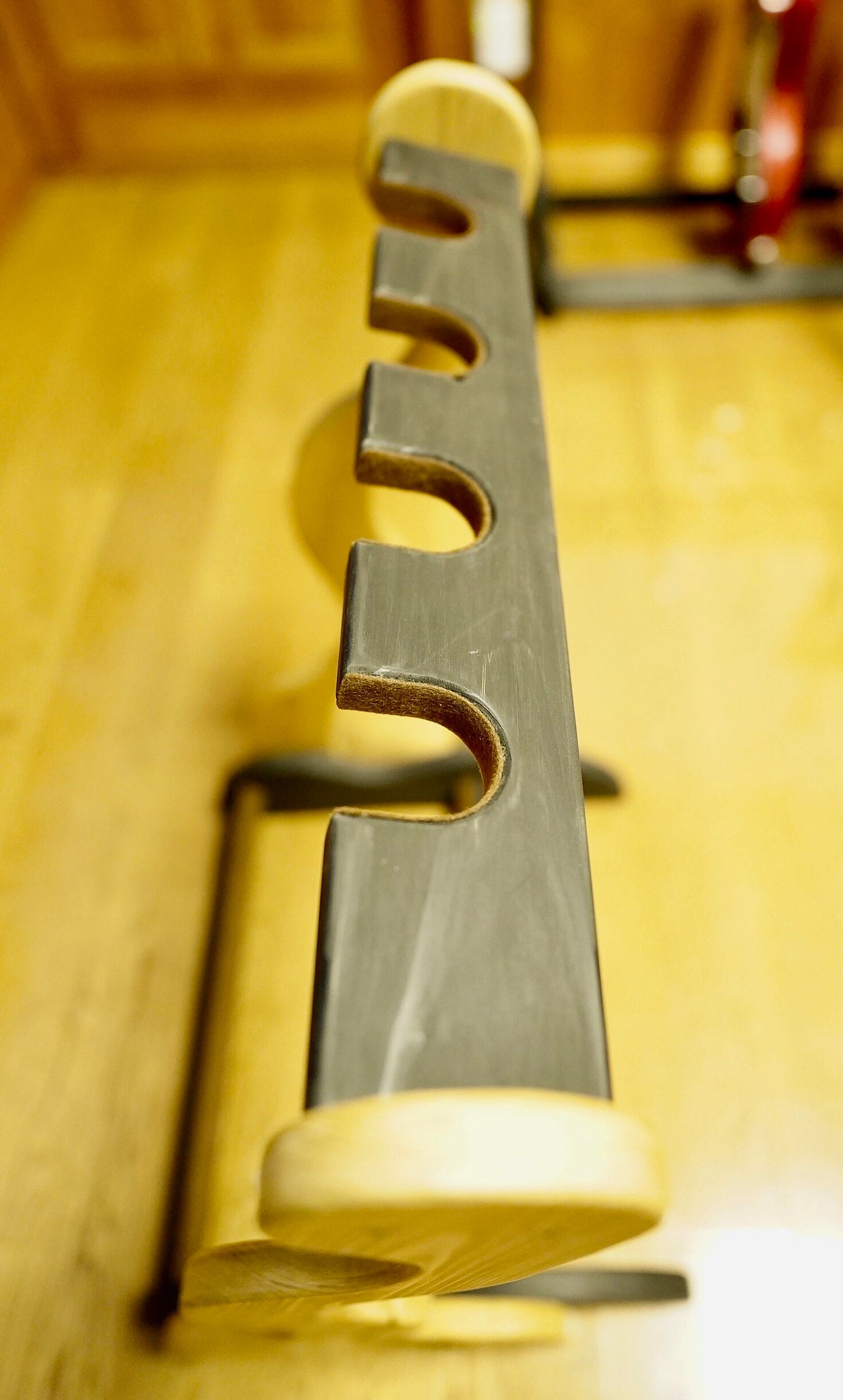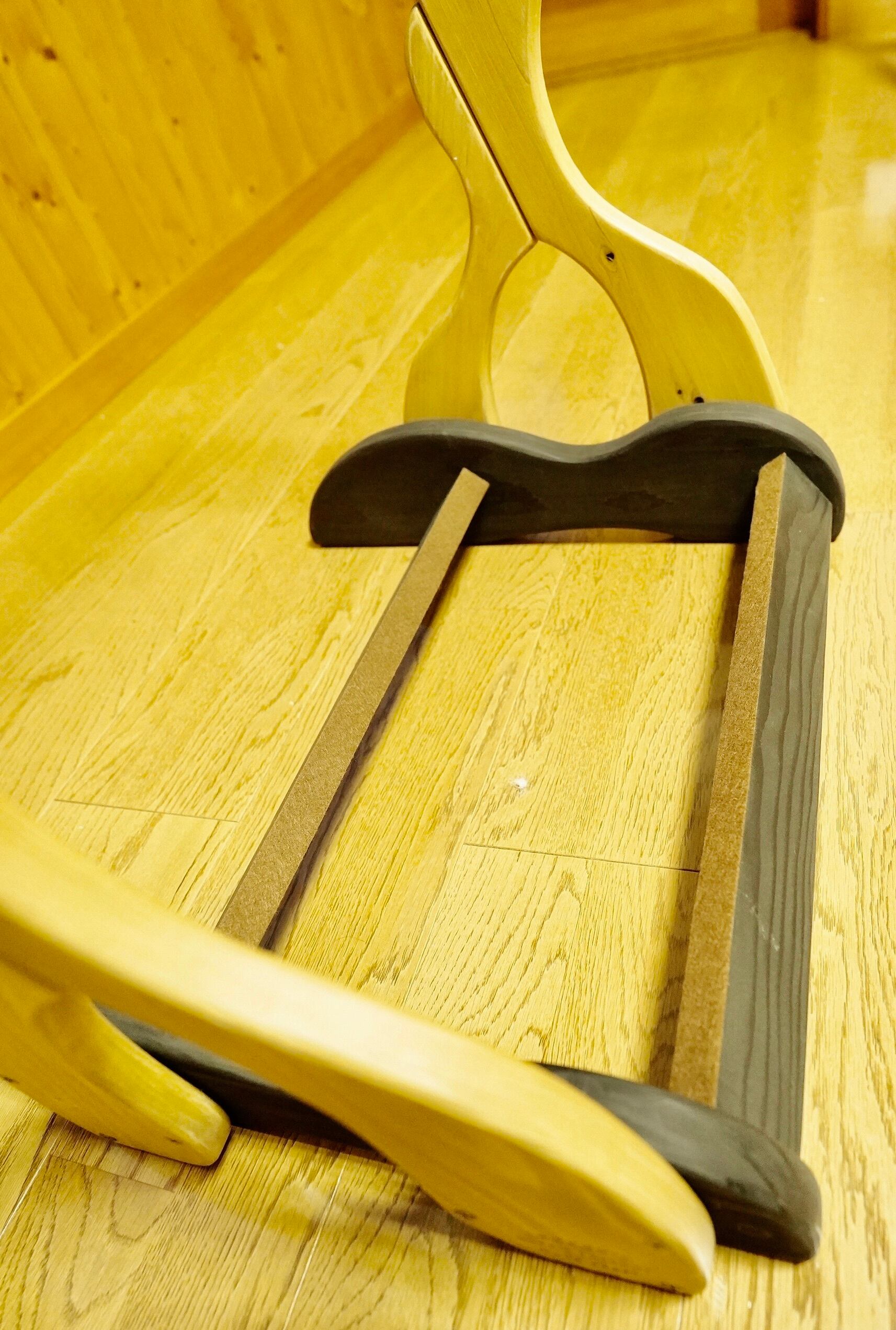 ギターを支える二本の横木は角度をつけてハの字にしてありボディをしっかりとキャッチされるように設計されています。