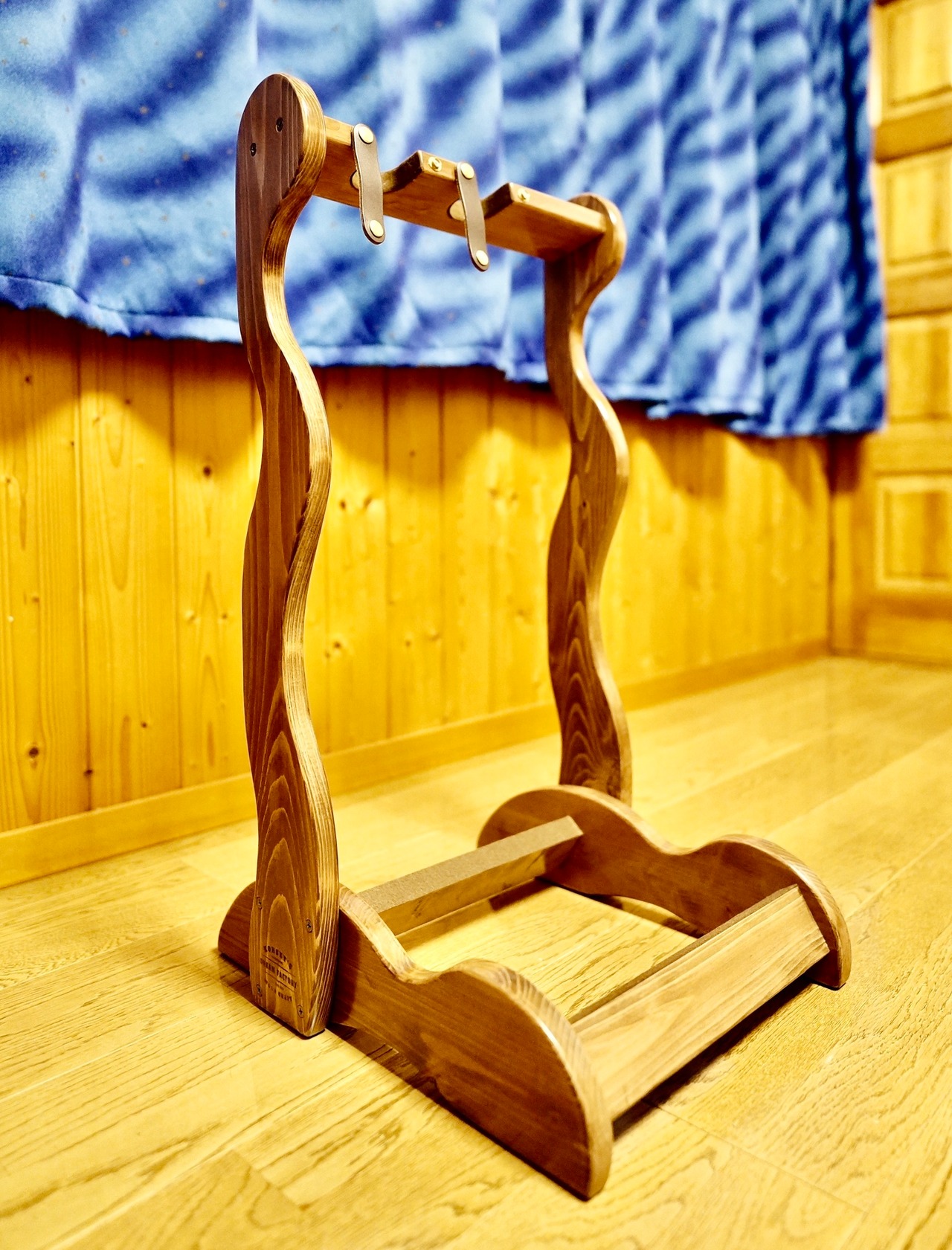 こちらは無垢材を使用したハンドメイドのギターラックです。
