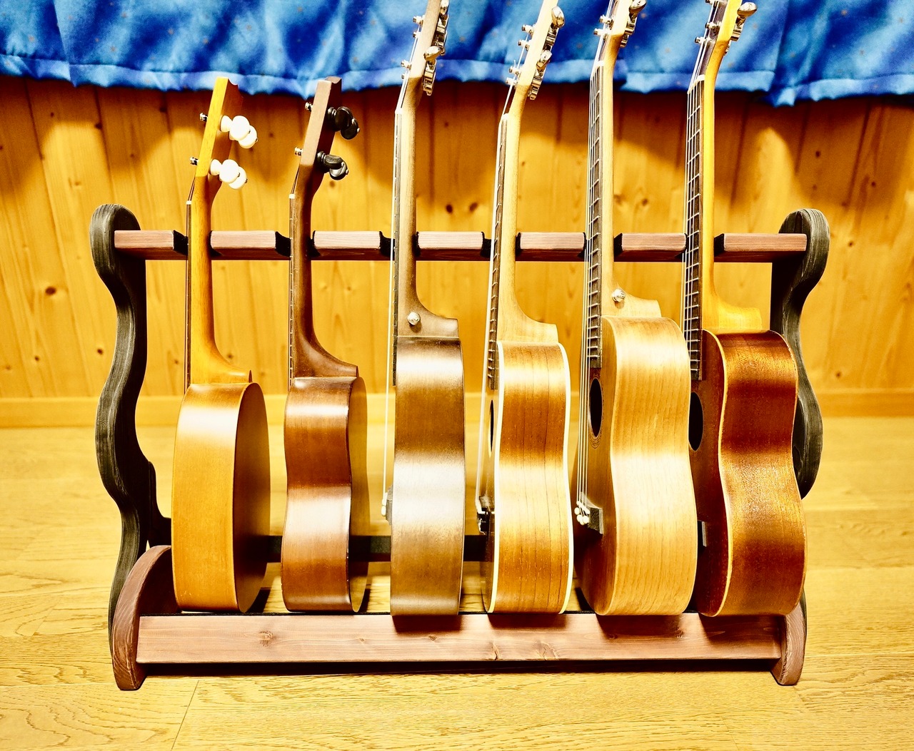 【限定1台】手作り木工 木製ウクレレスタンド(ステイン仕上げ) 6本掛け