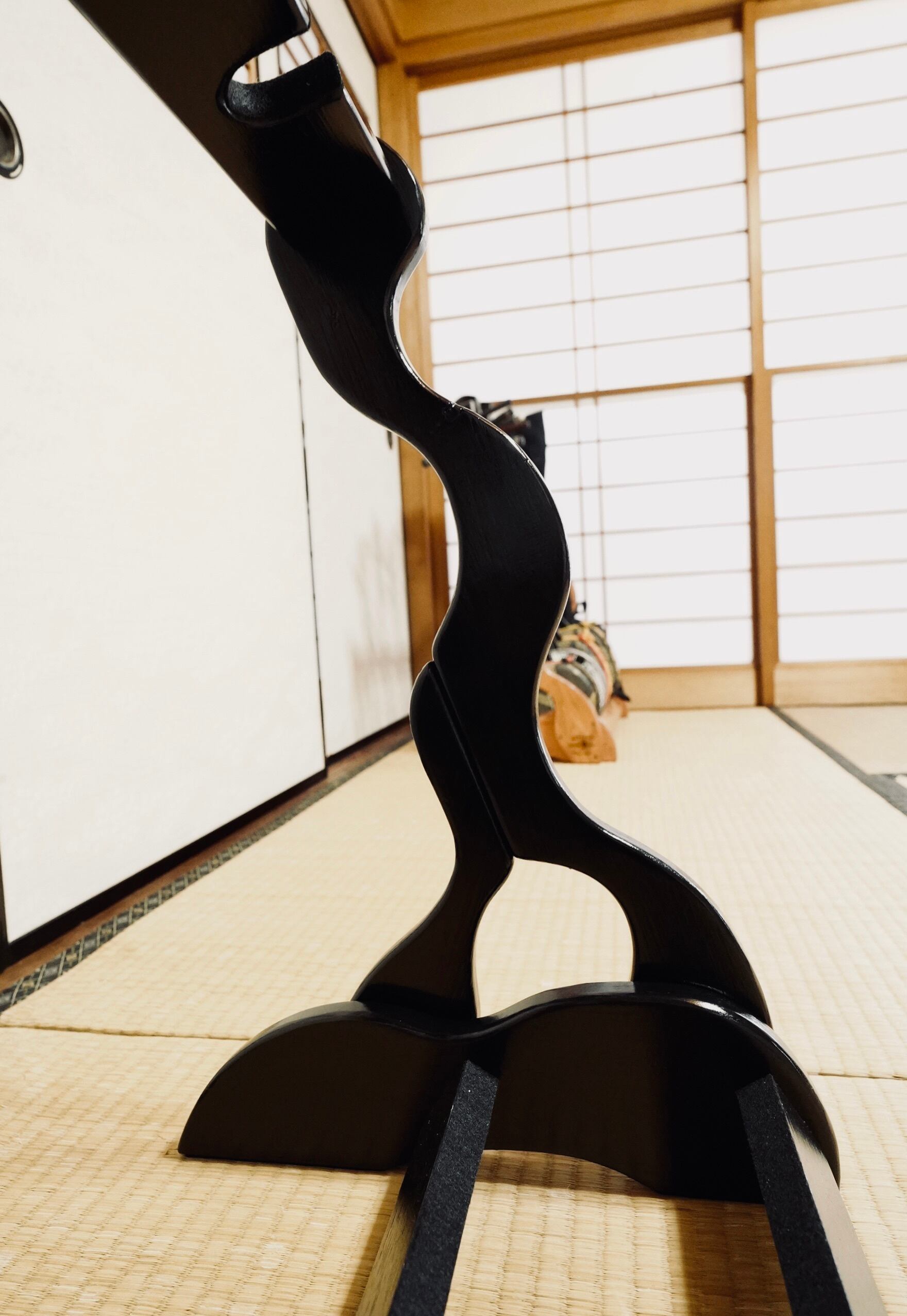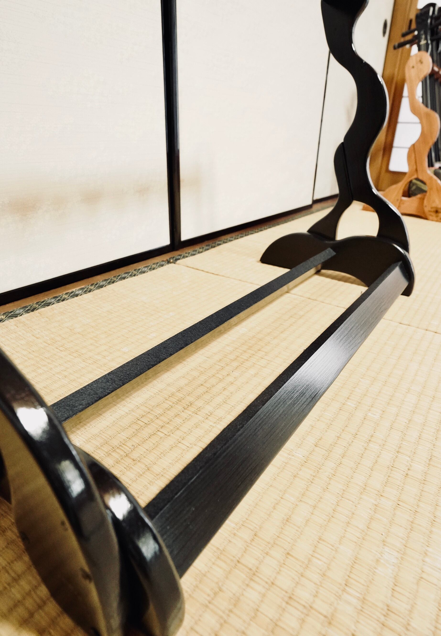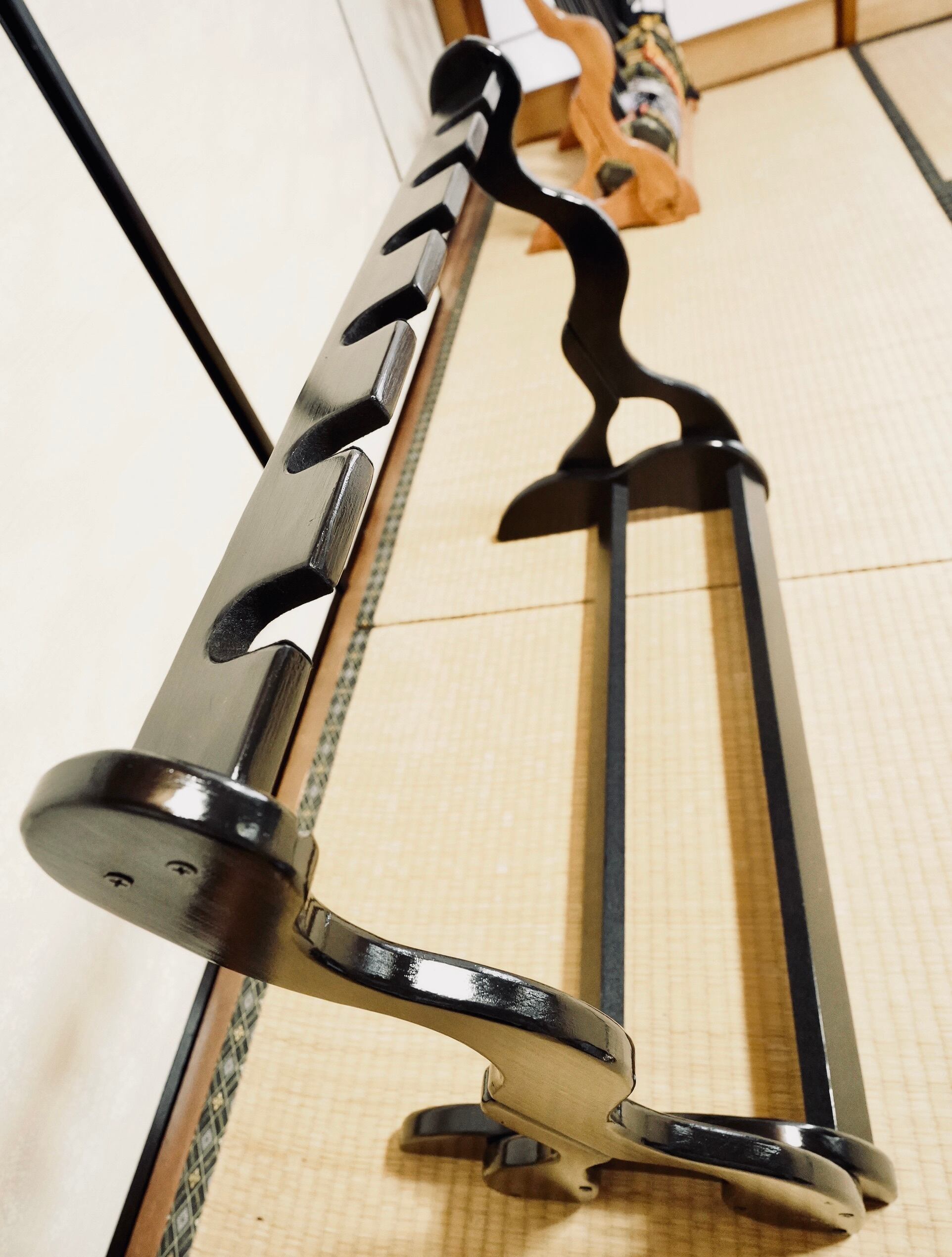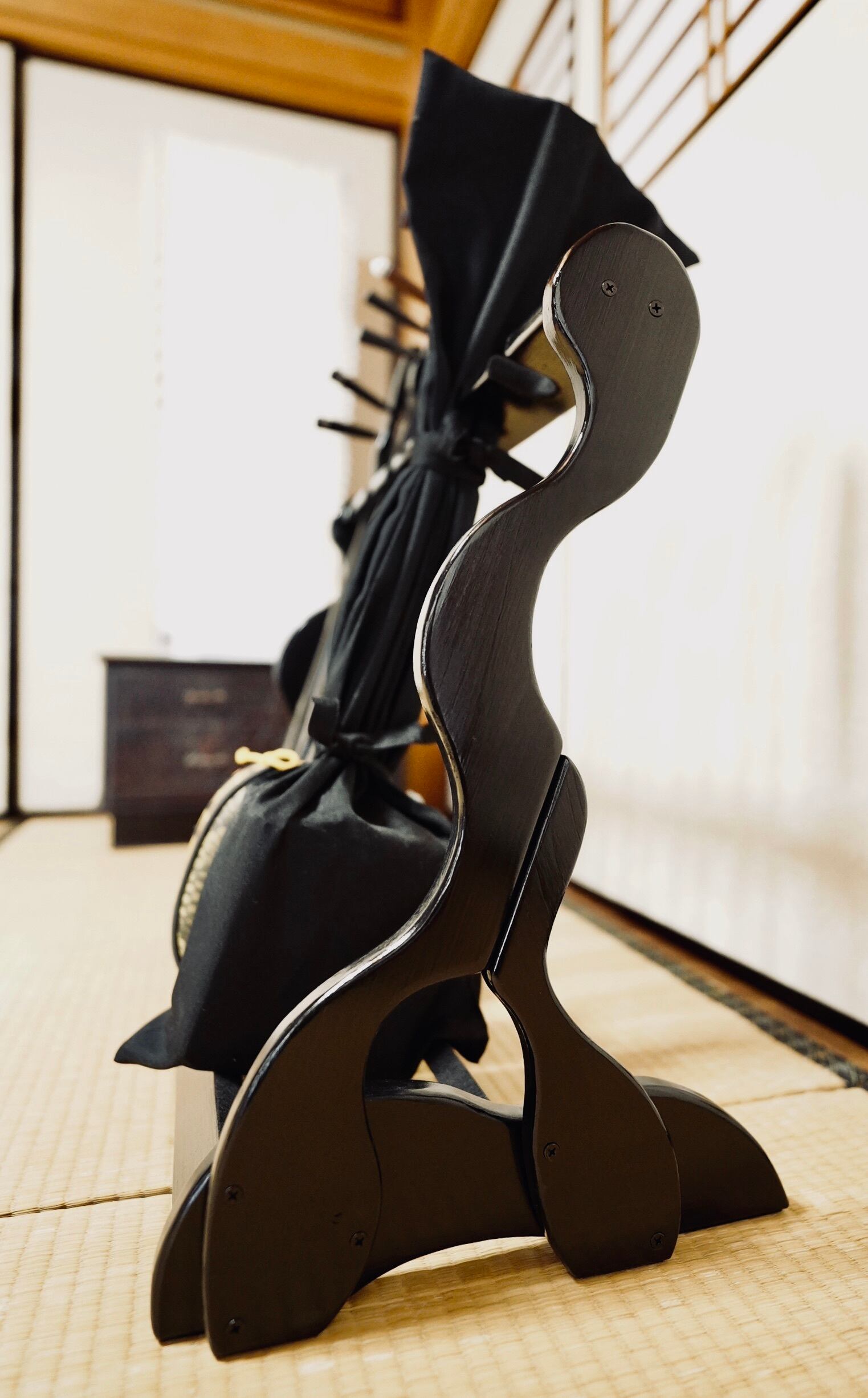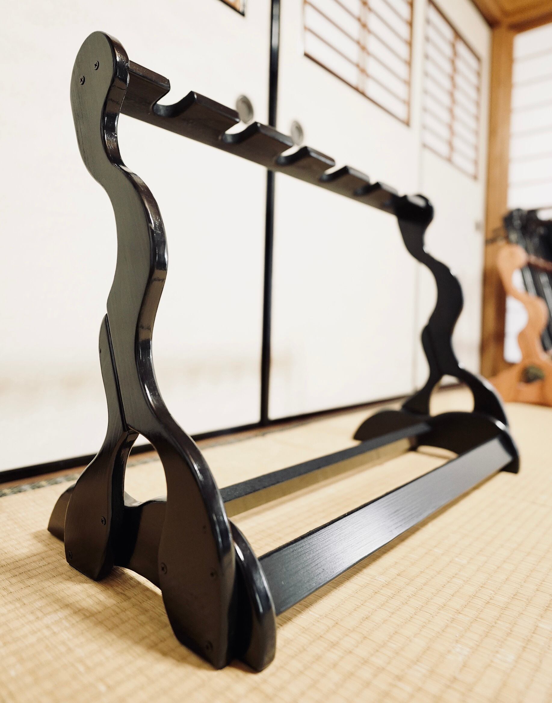 【限定1台】手作り木工 木製三線スタンド (黒漆仕上げ) 6丁掛け