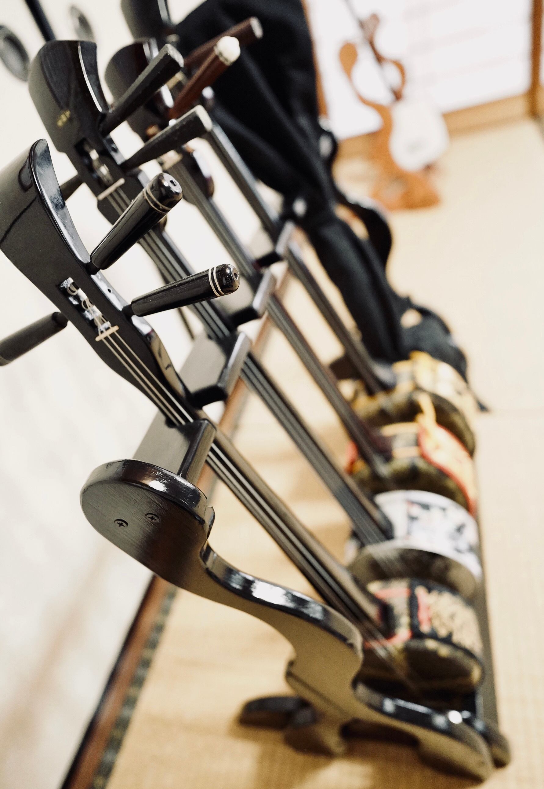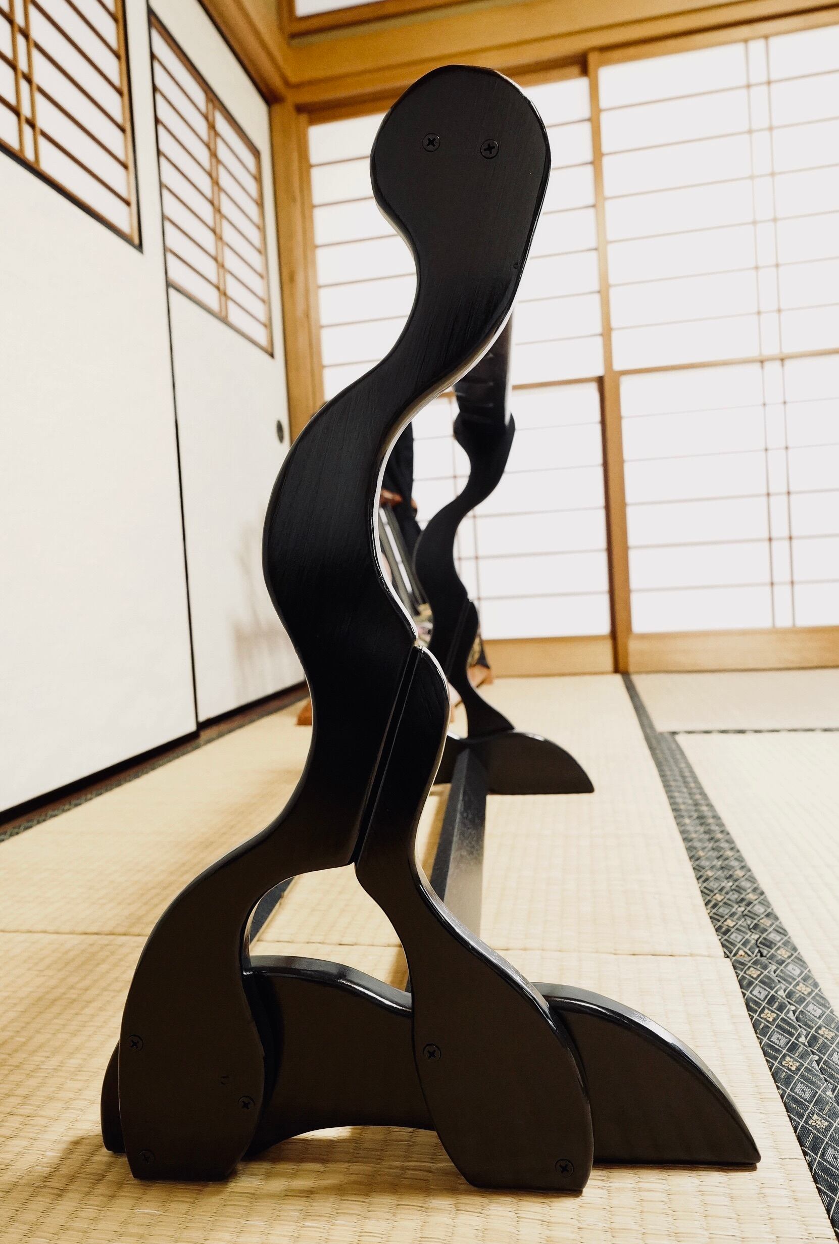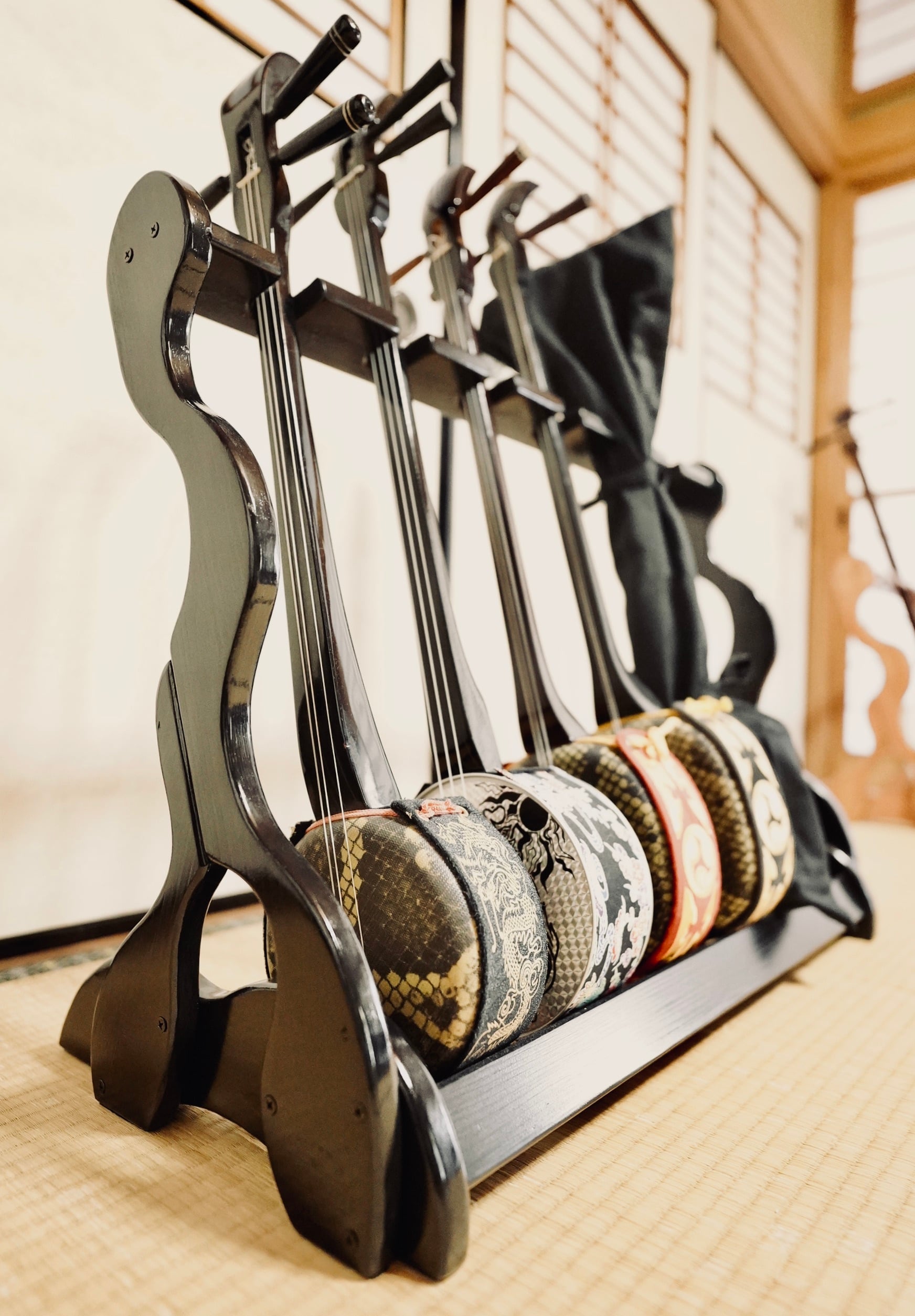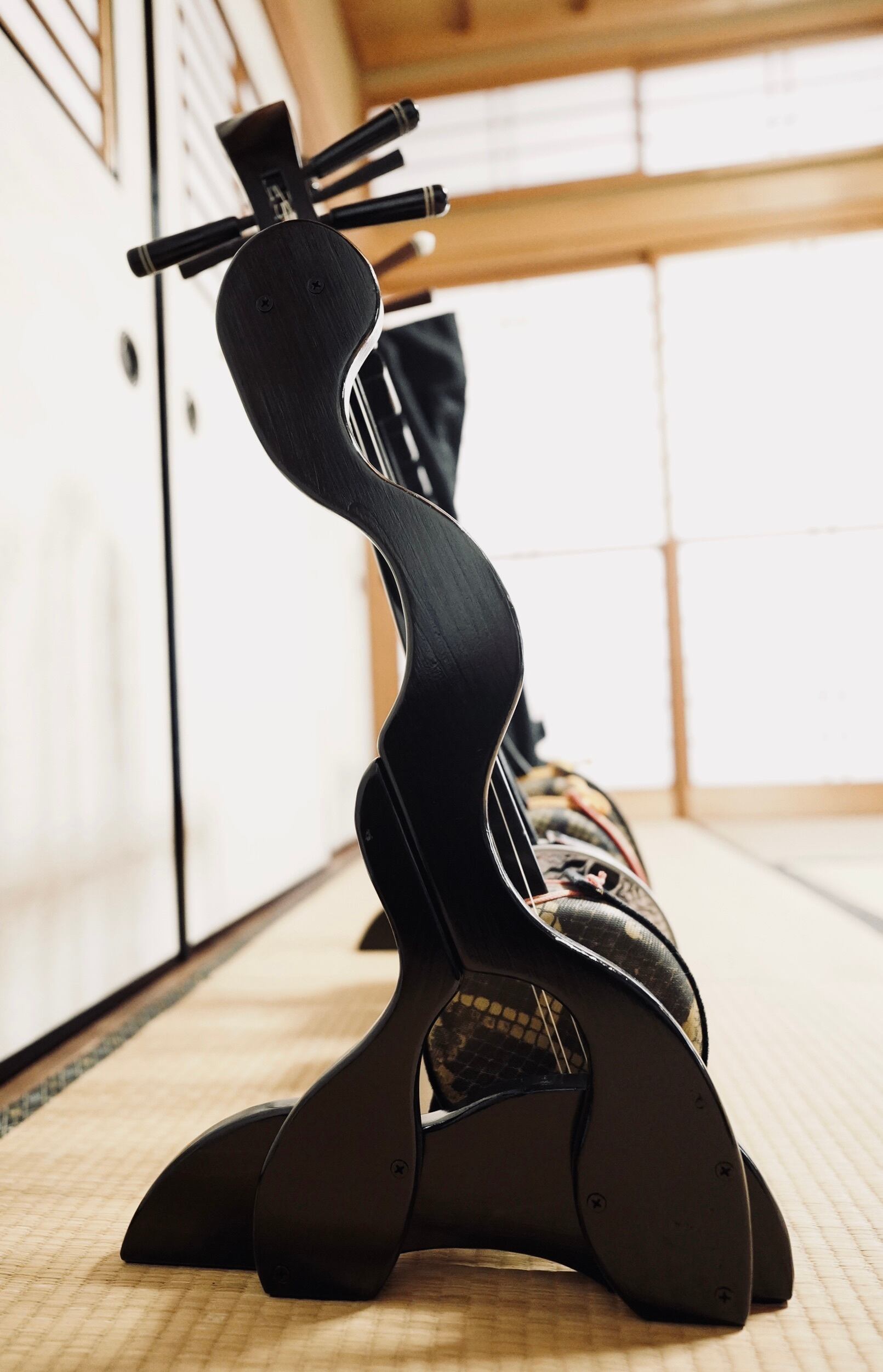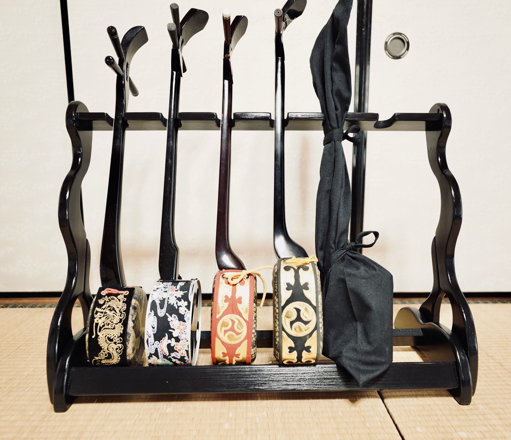 【限定1台】手作り木工 木製三線スタンド (黒漆仕上げ) 6丁掛け