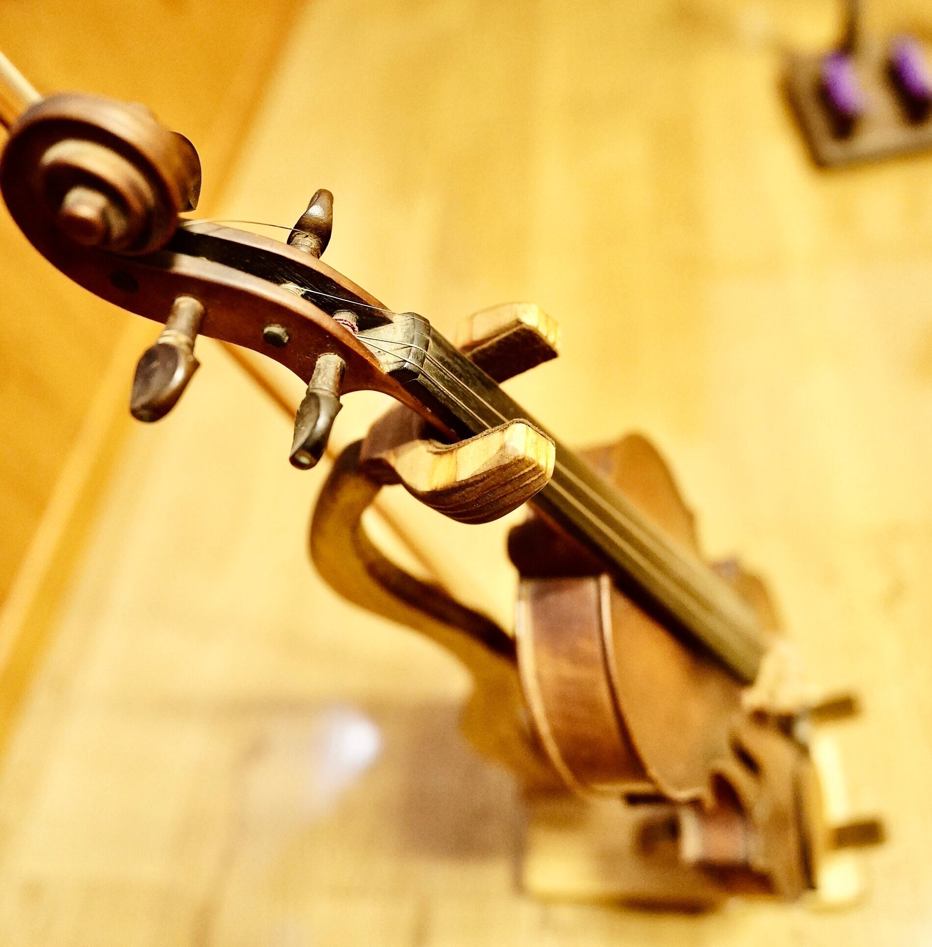 無垢材と集成材を使用したハンドメイドのフルサイズのバイオリンラックです。
