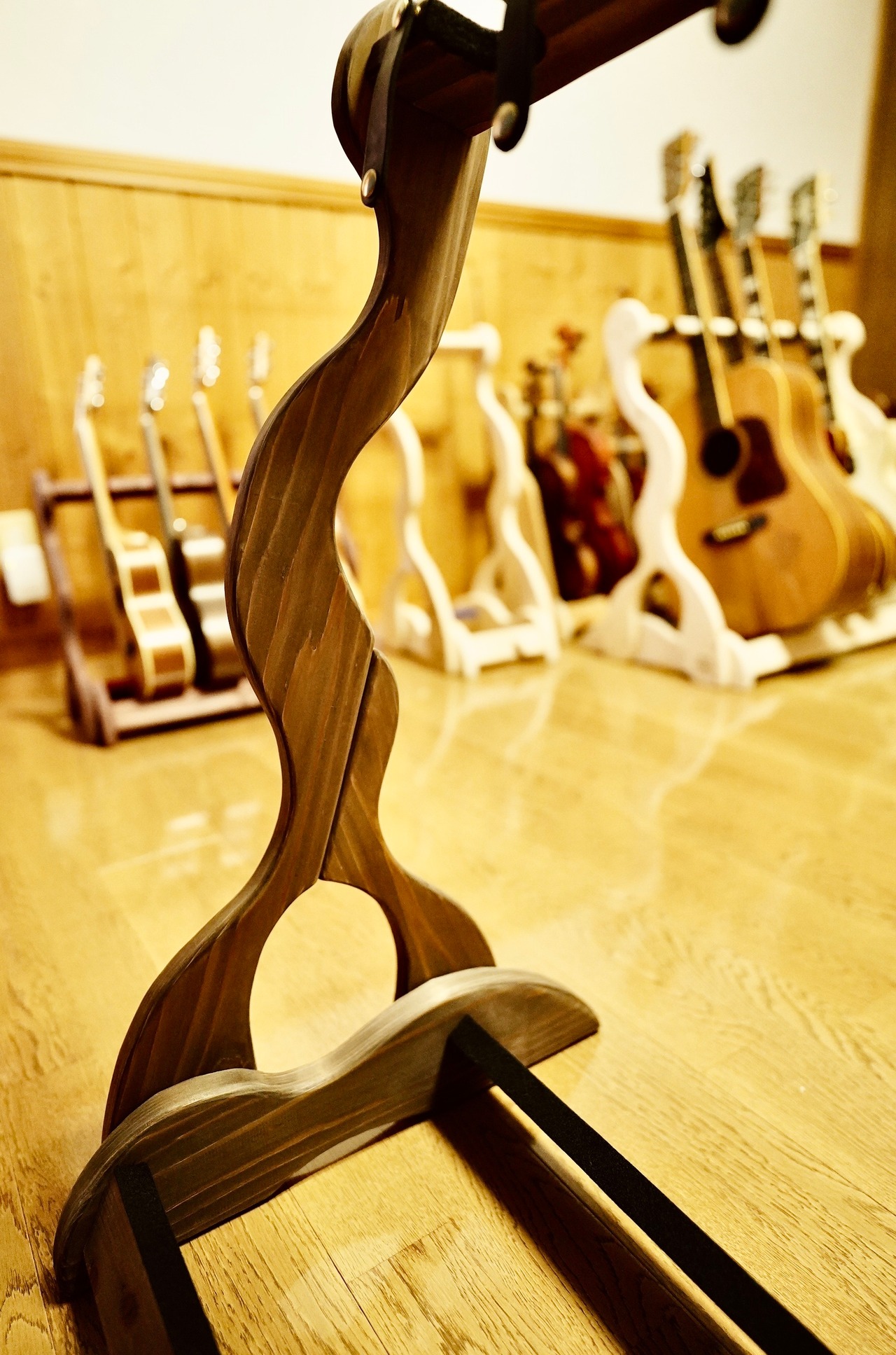 ギターを支える二本の横木は角度をつけてハの字にしてあり、ボディをしっかりとキャッチされるように設計されています。