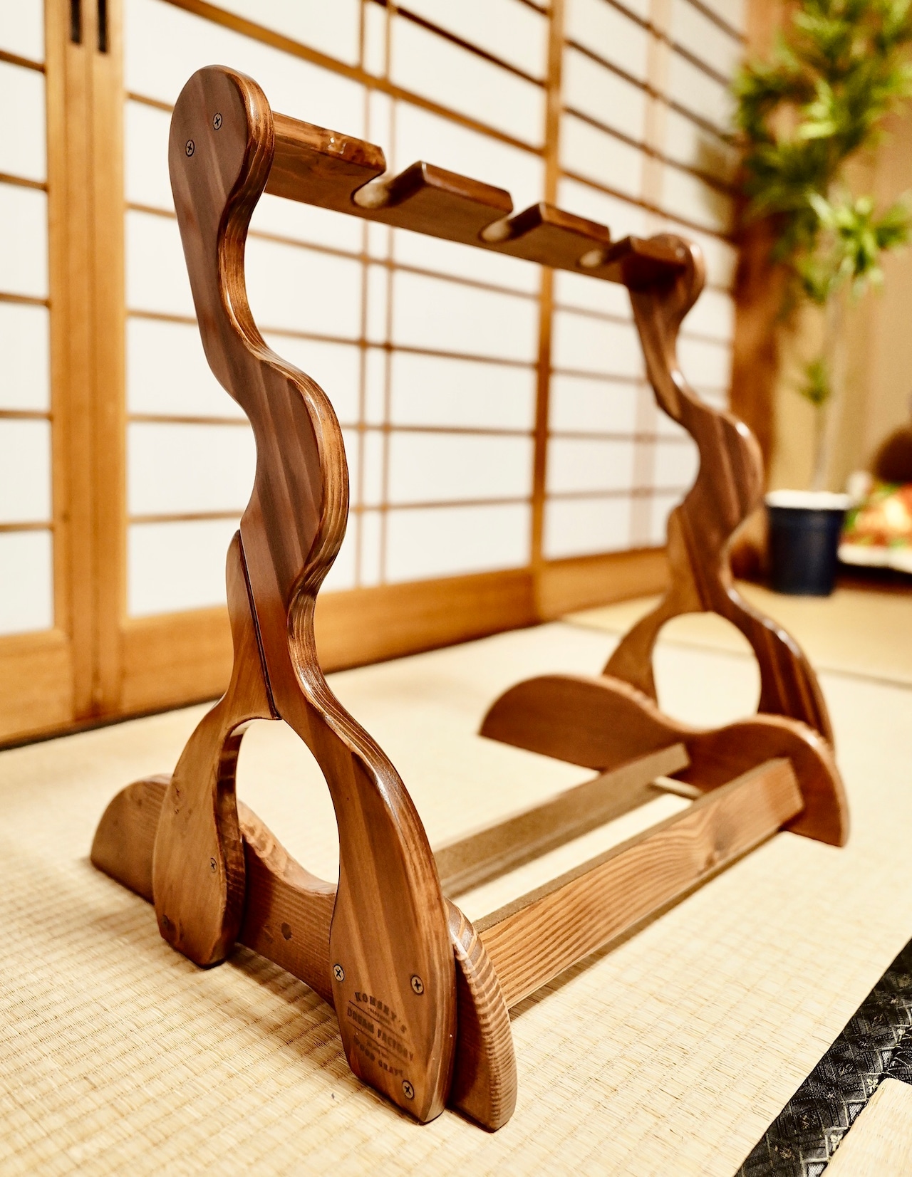 【限定1台】手作り木工 木製二胡スタンド (ニス仕上げ) 3丁掛け