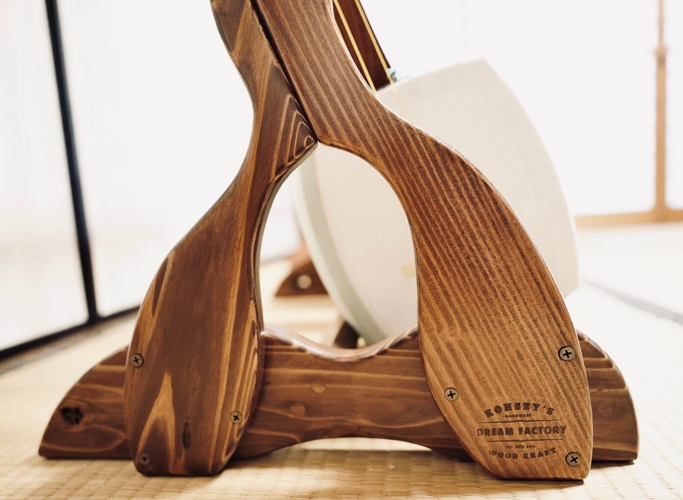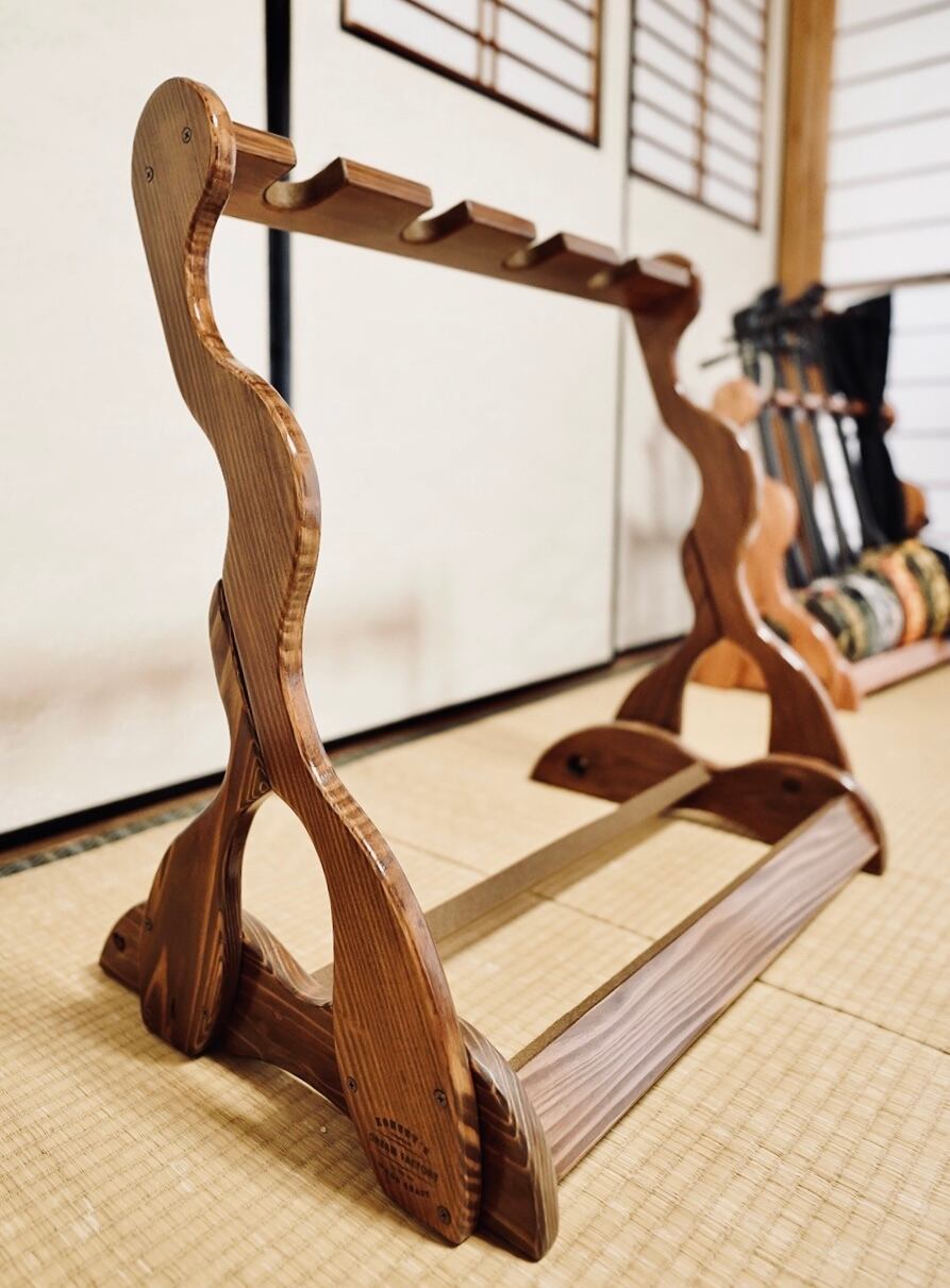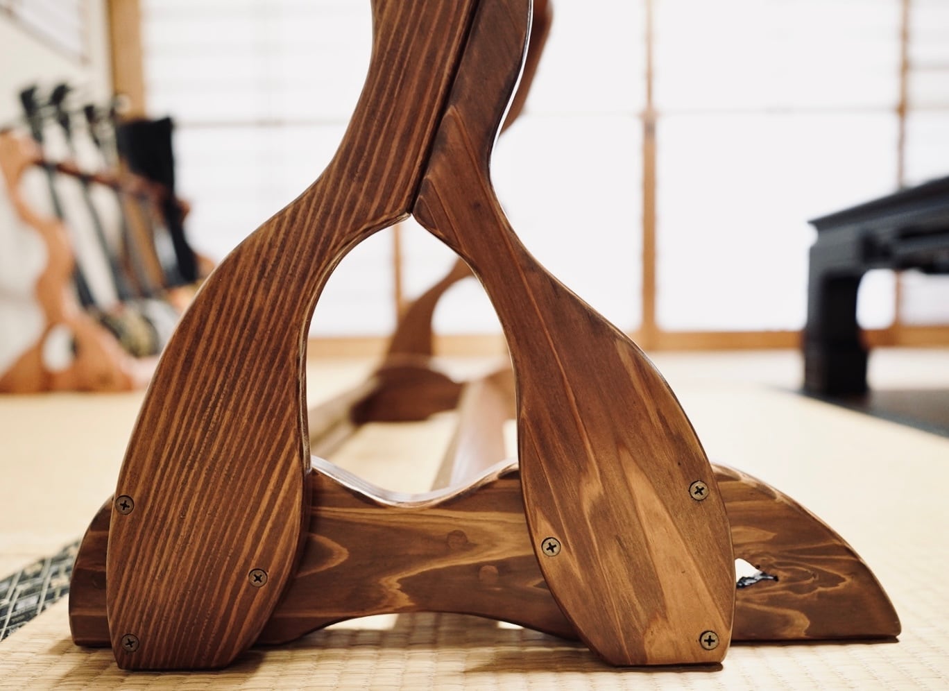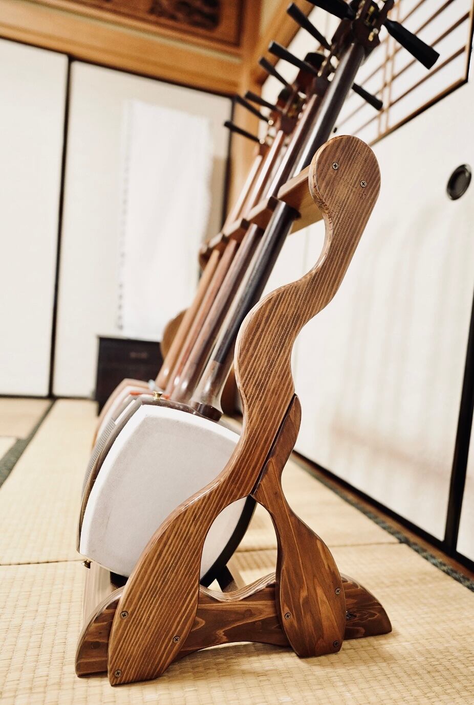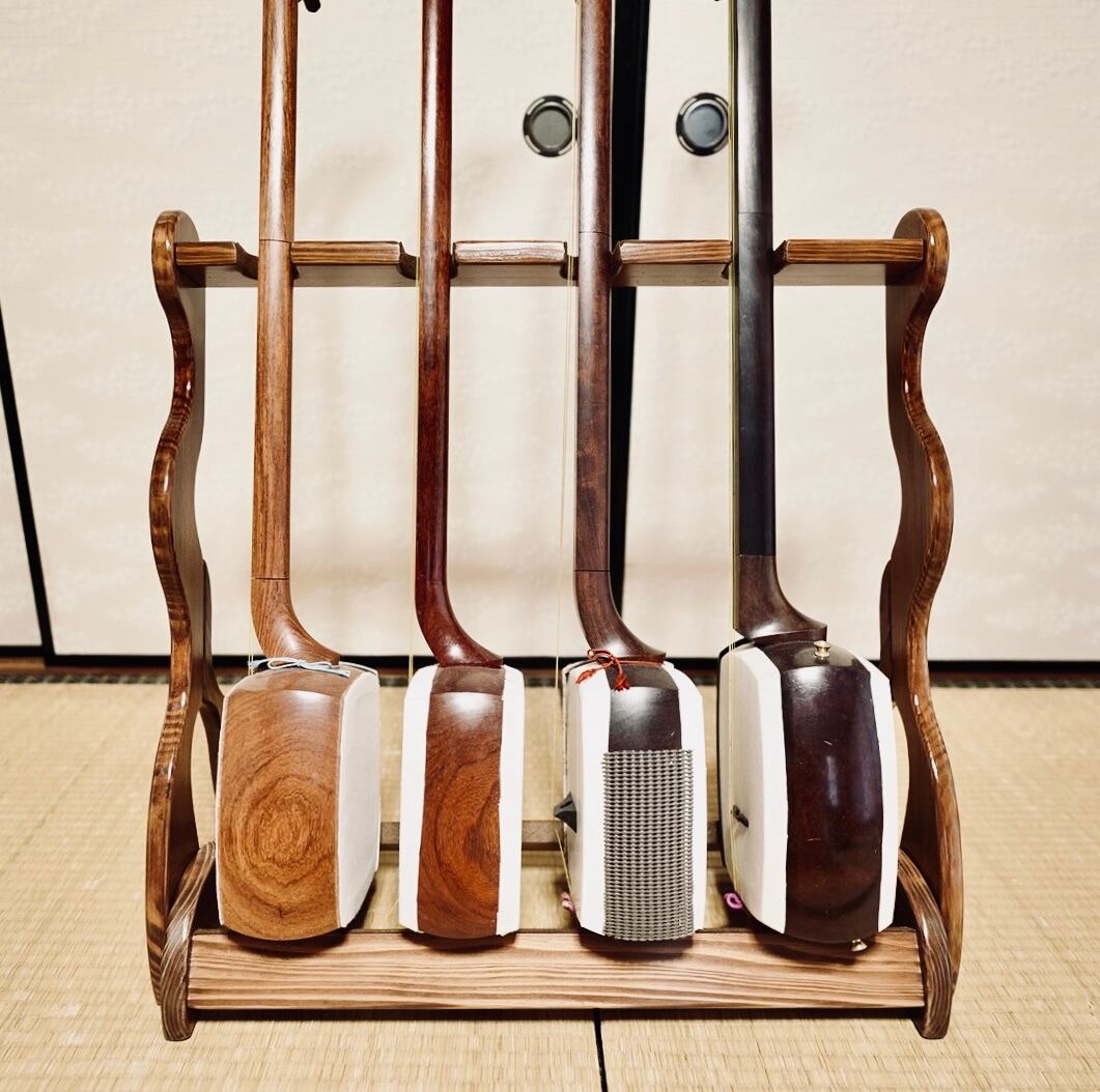 【限定1台】手作り木工 木製三味線スタンド (ニス仕上げ) 4丁掛け