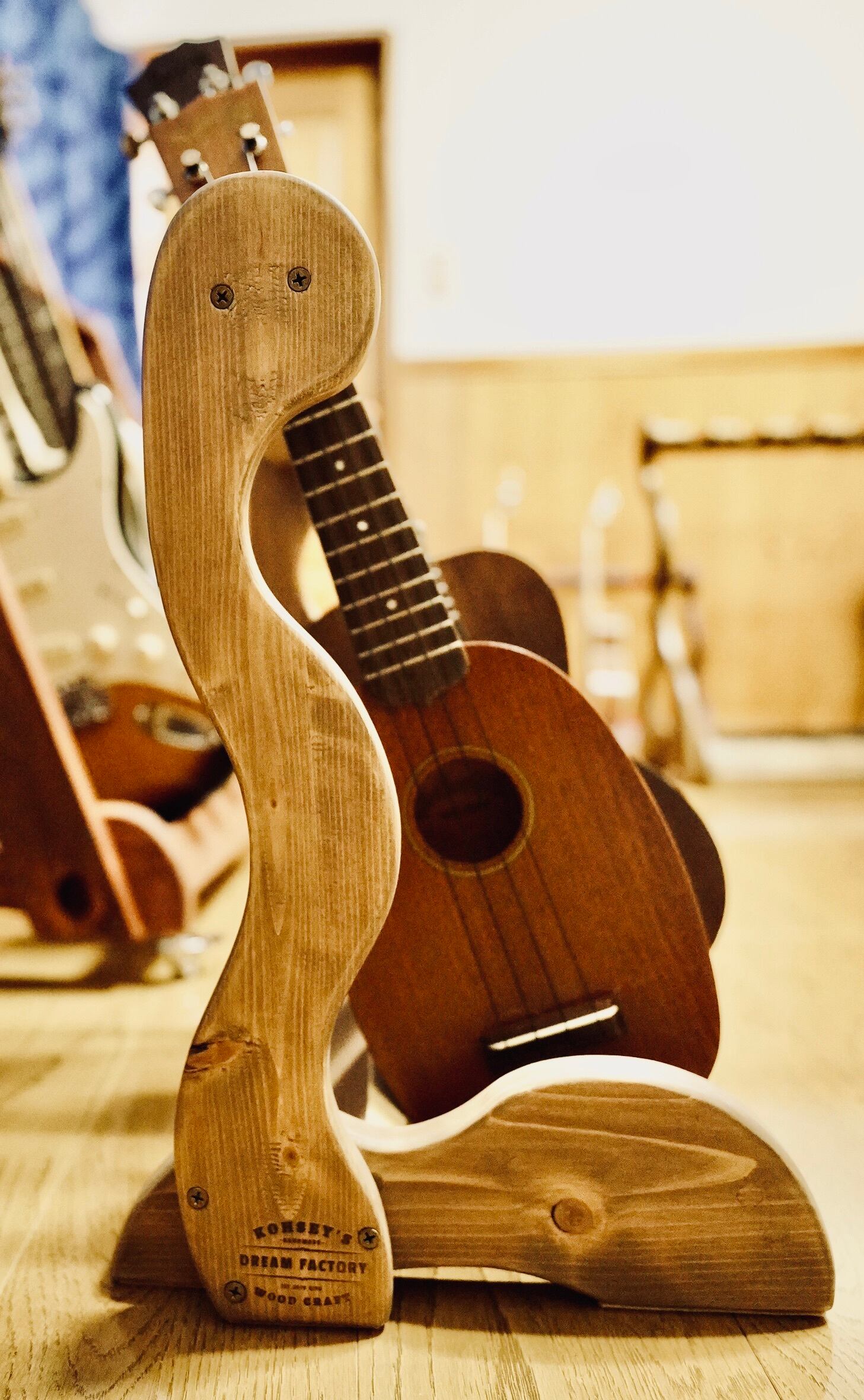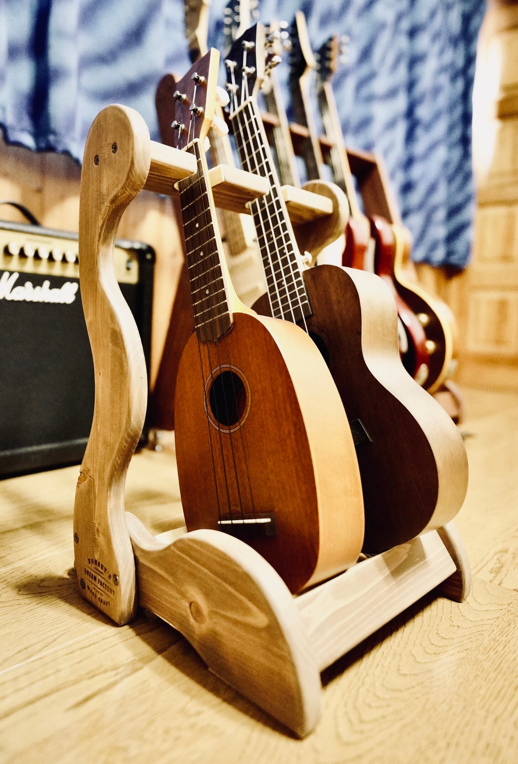 【限定1台】手作り木工 木製ウクレレスタンド(保護剤仕上げ) 2本掛け