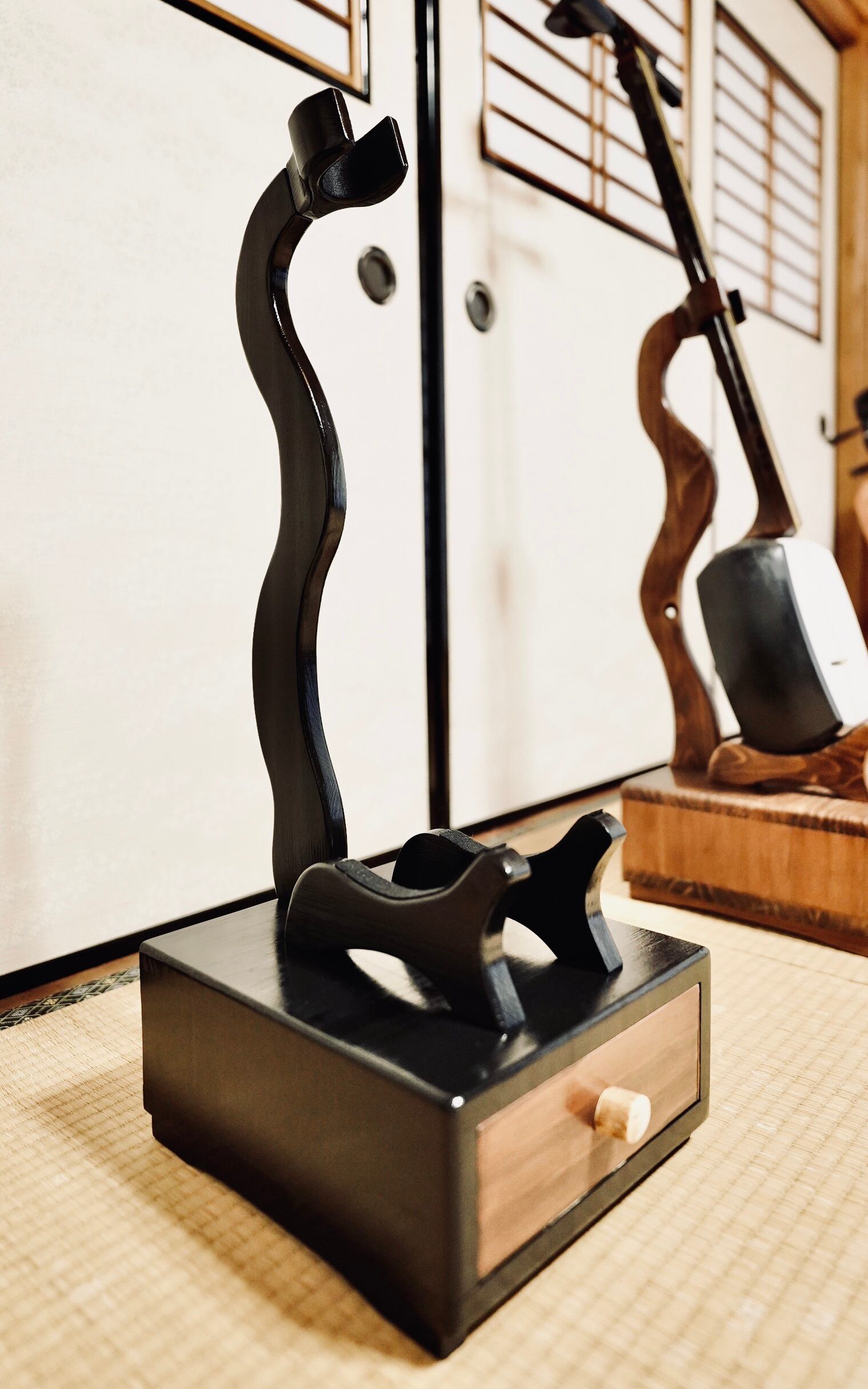 【オーダー品】手作り木工 木製三味線スタンド (漆仕上げ) 1本掛け 引き出し付き