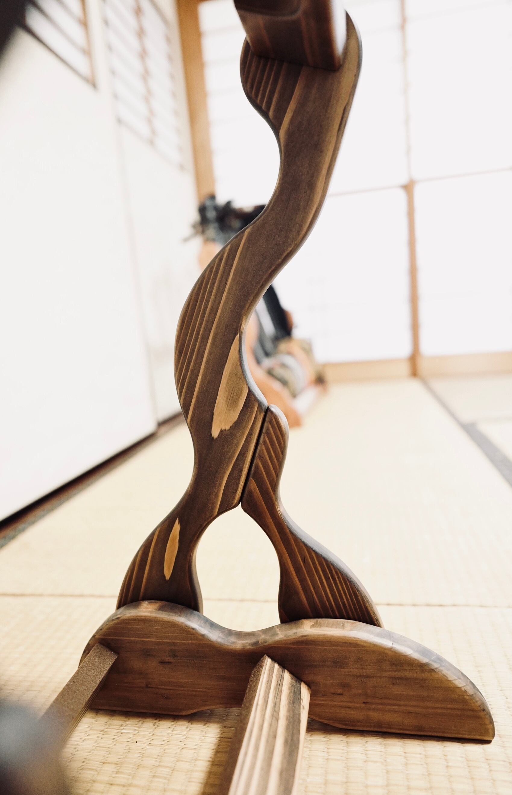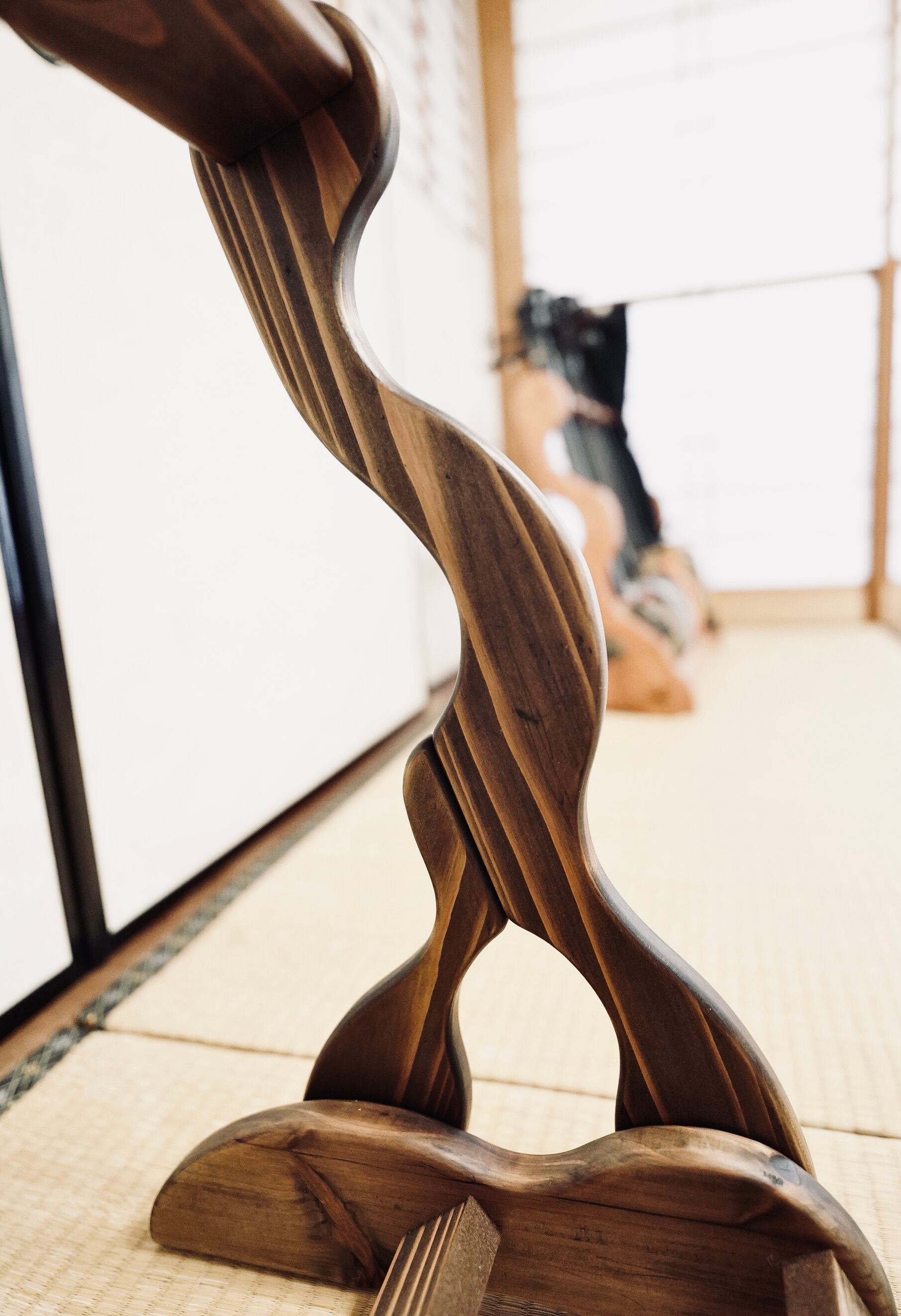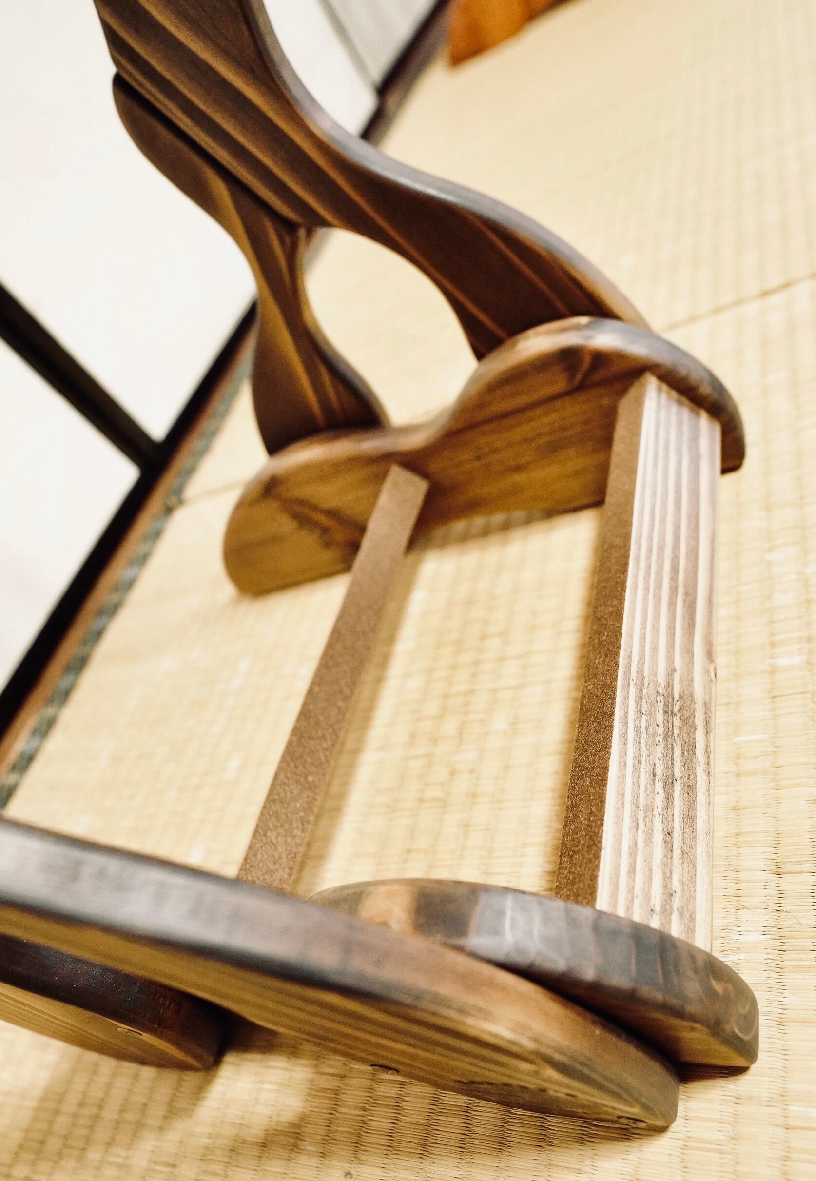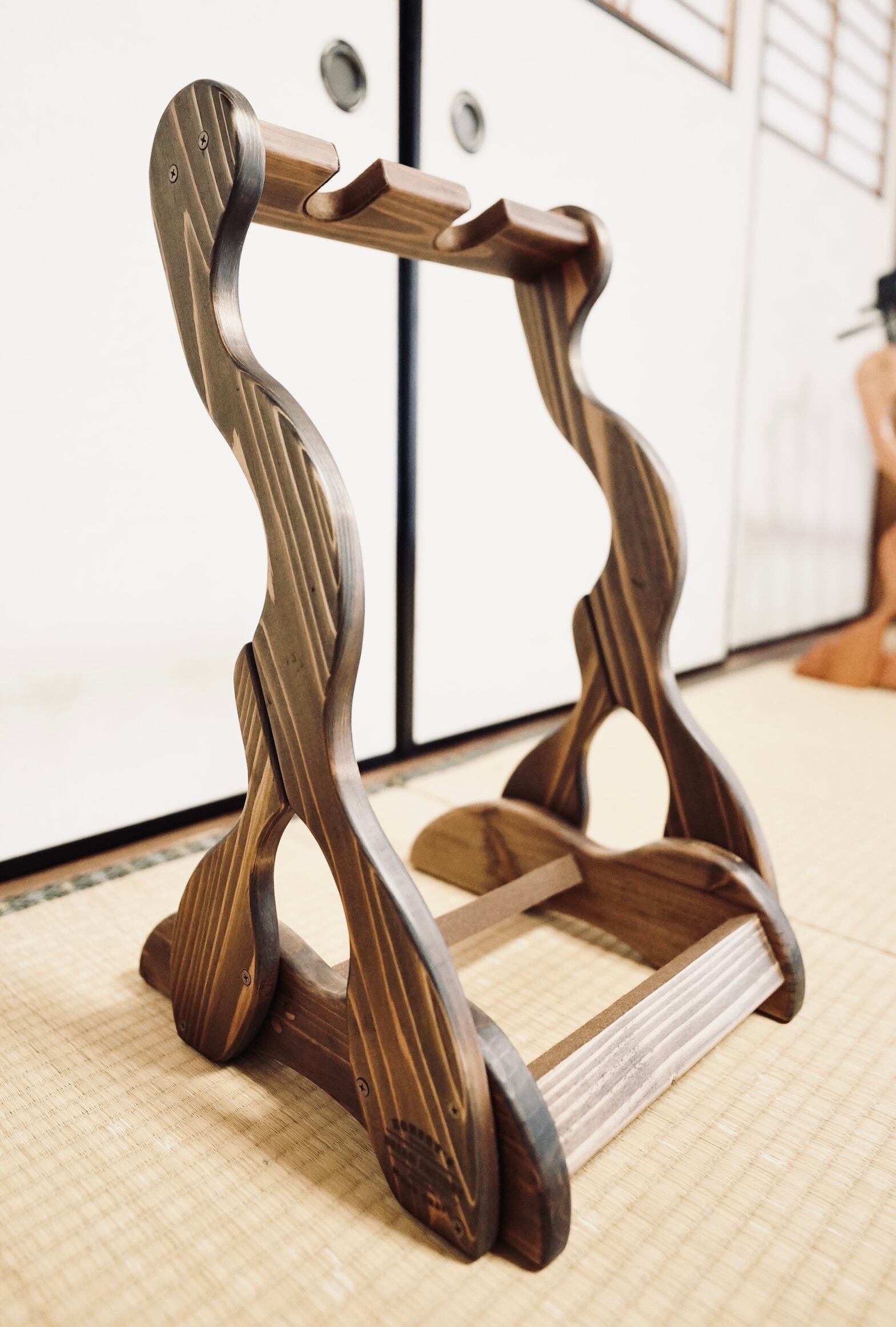 こちらは無垢材を使用したハンドメイドの三線ラックです。