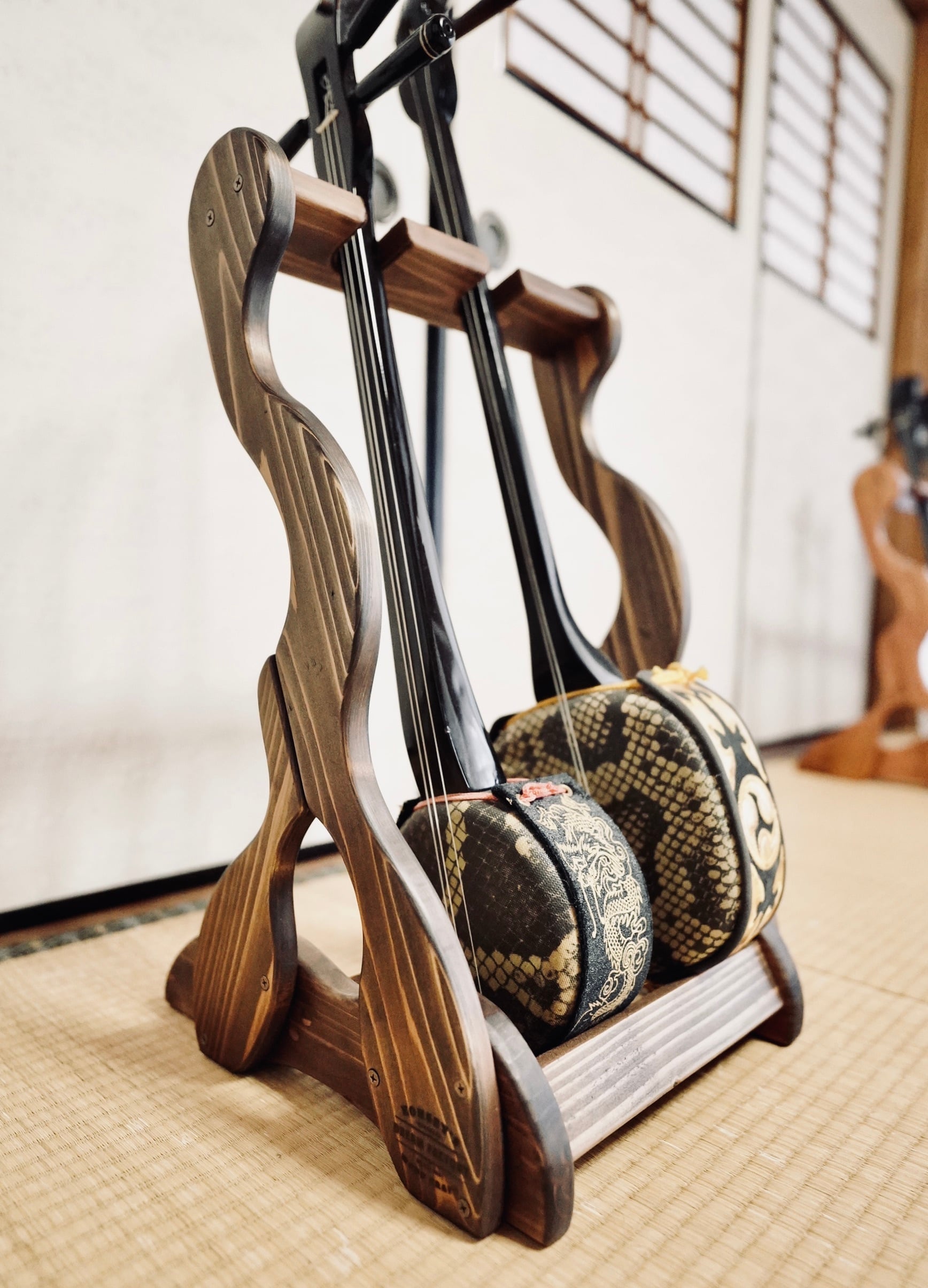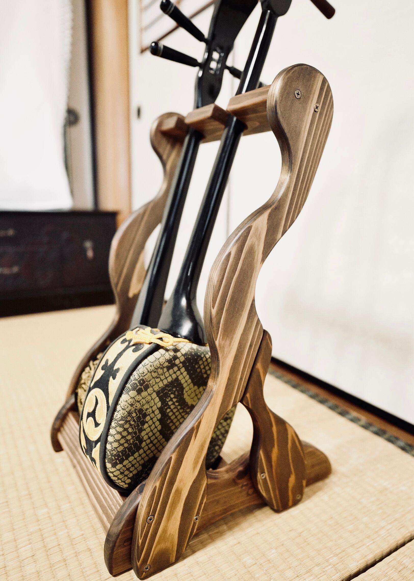 ※こちらのスタンドには三味線(細棹〜太棹)を掛けることはできません。