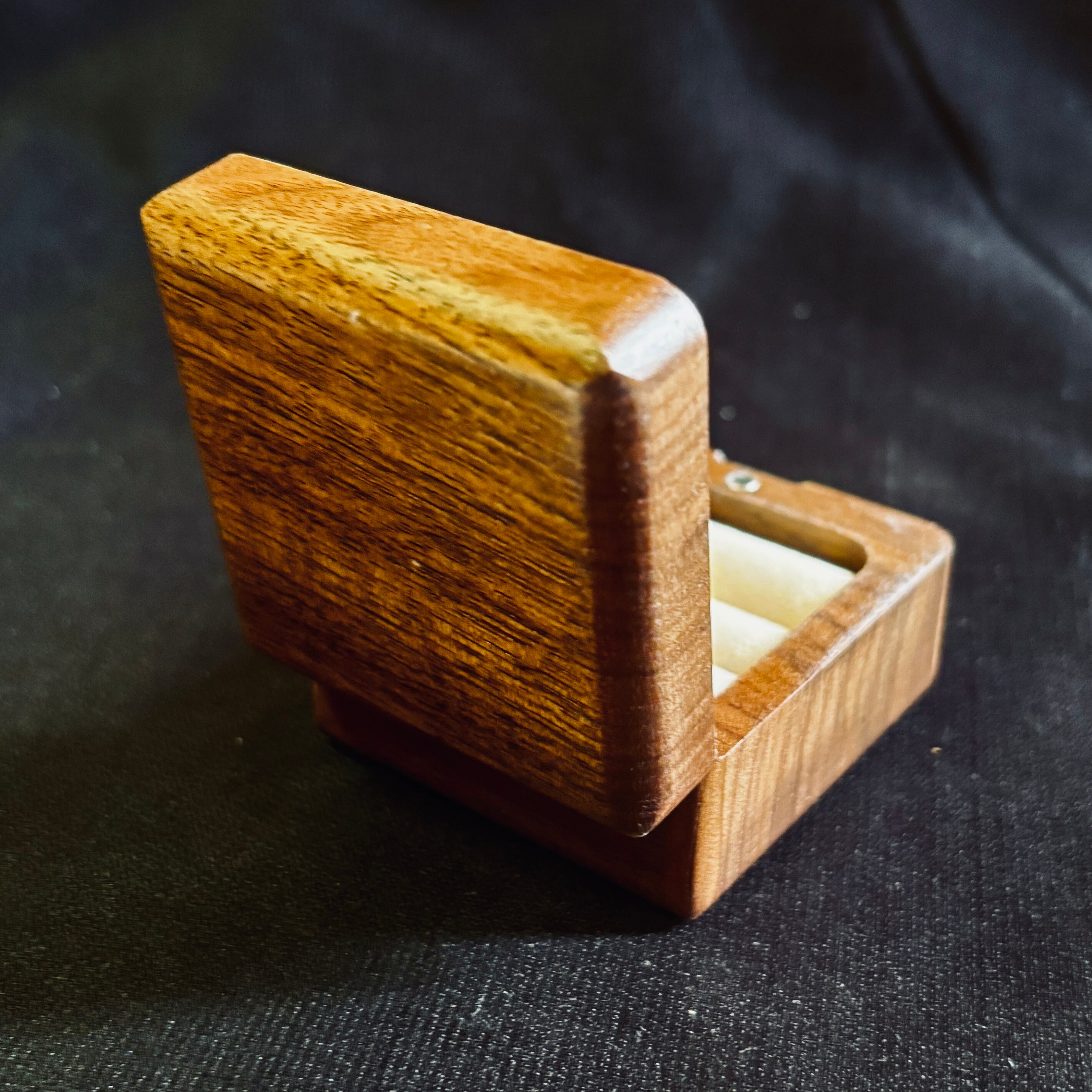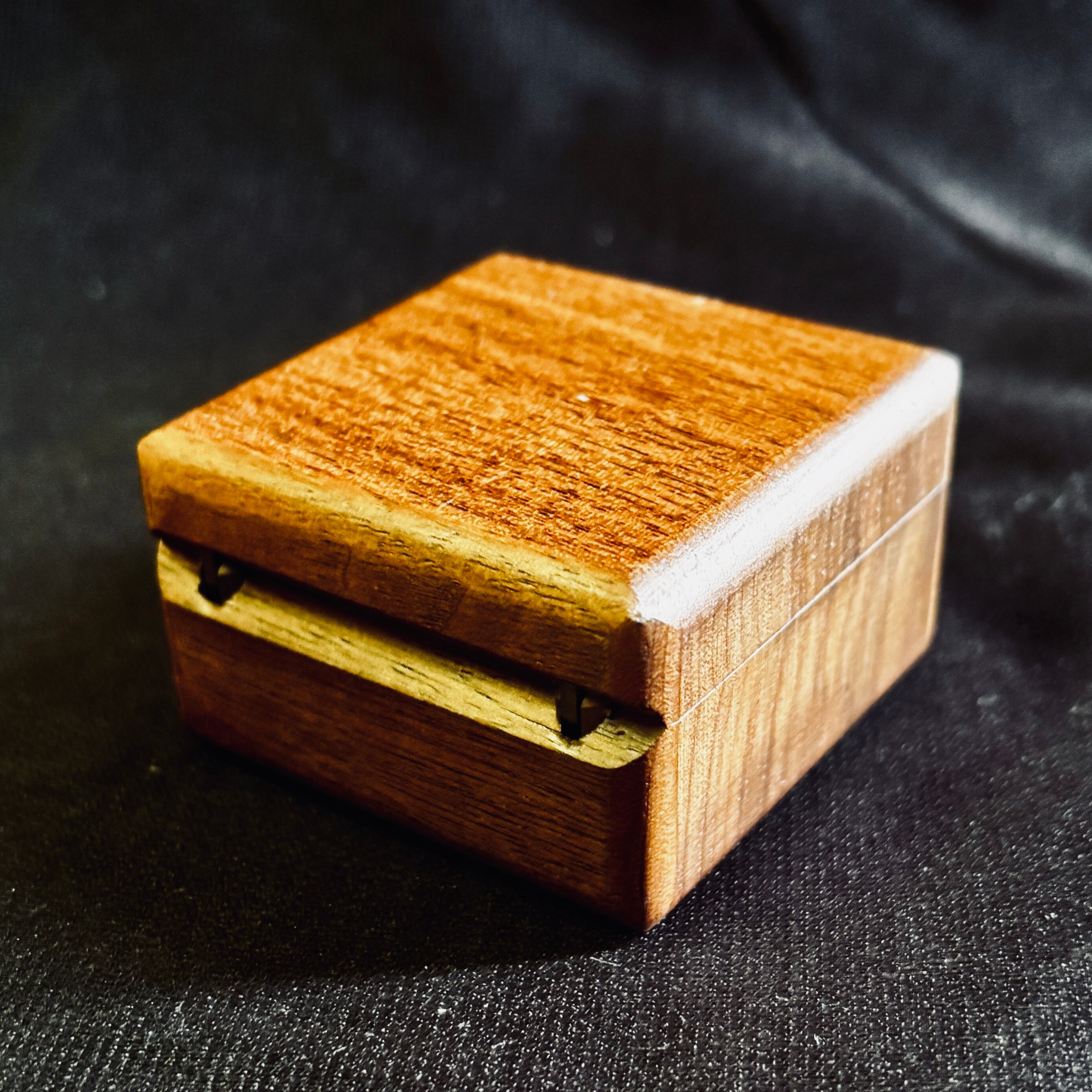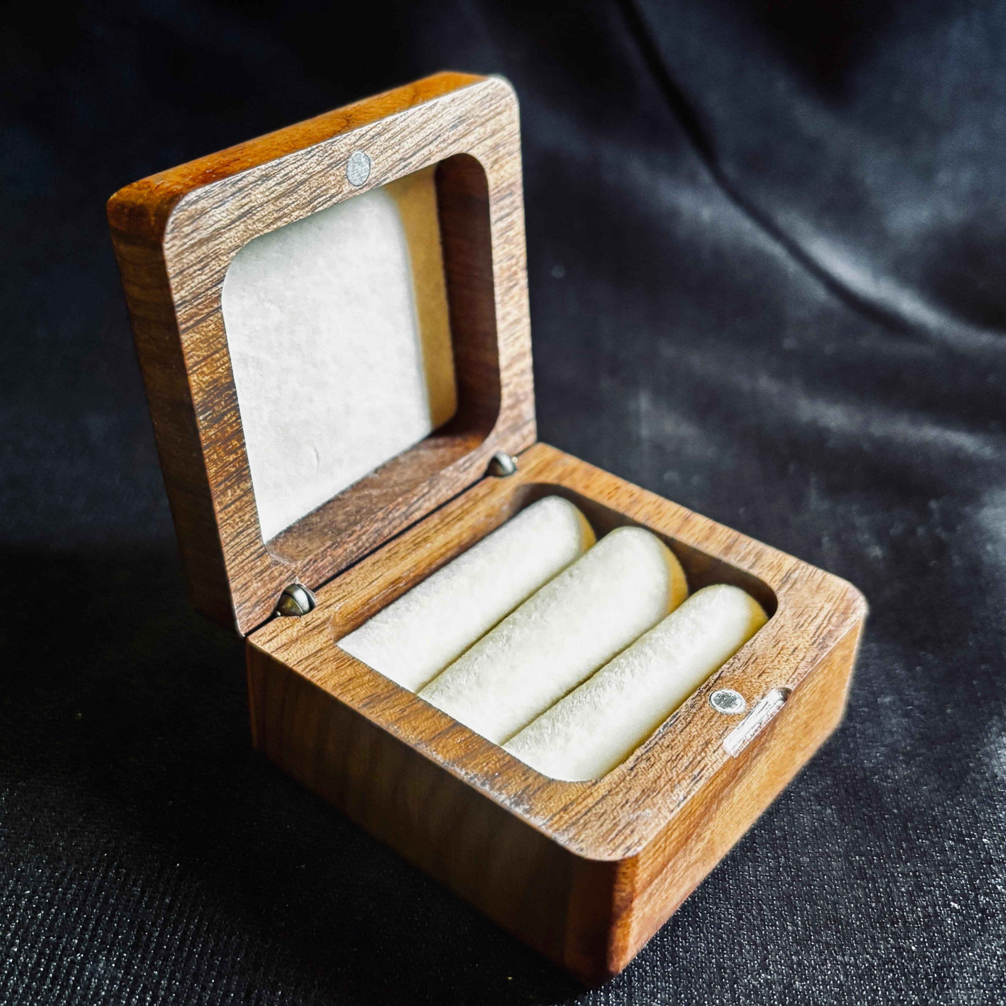 手のひらにコロンと収まるサイズ感(約60mm四方)ながら、無垢材ならではの重厚感と気品を兼ね備えた、特別な一箱です。