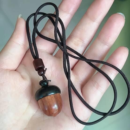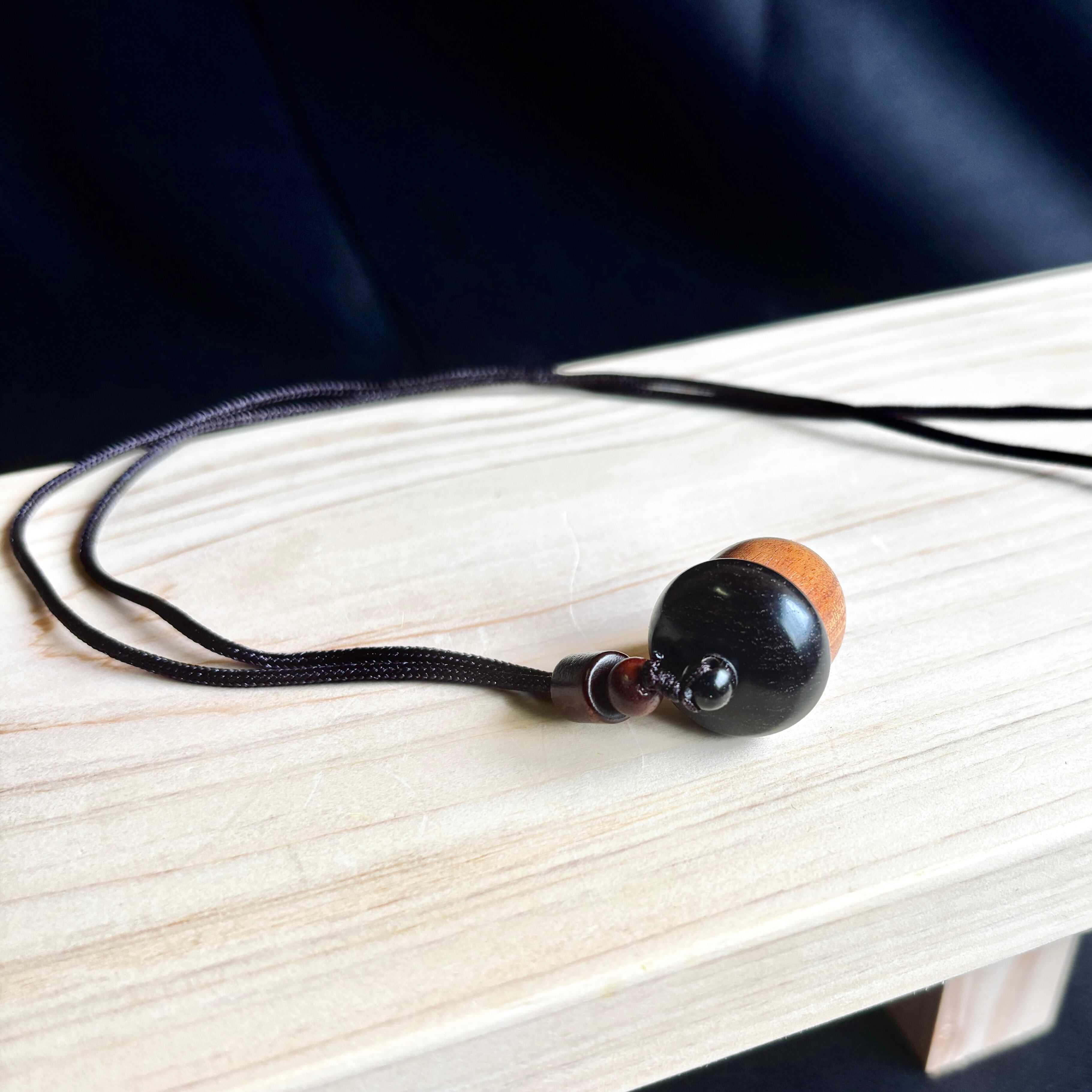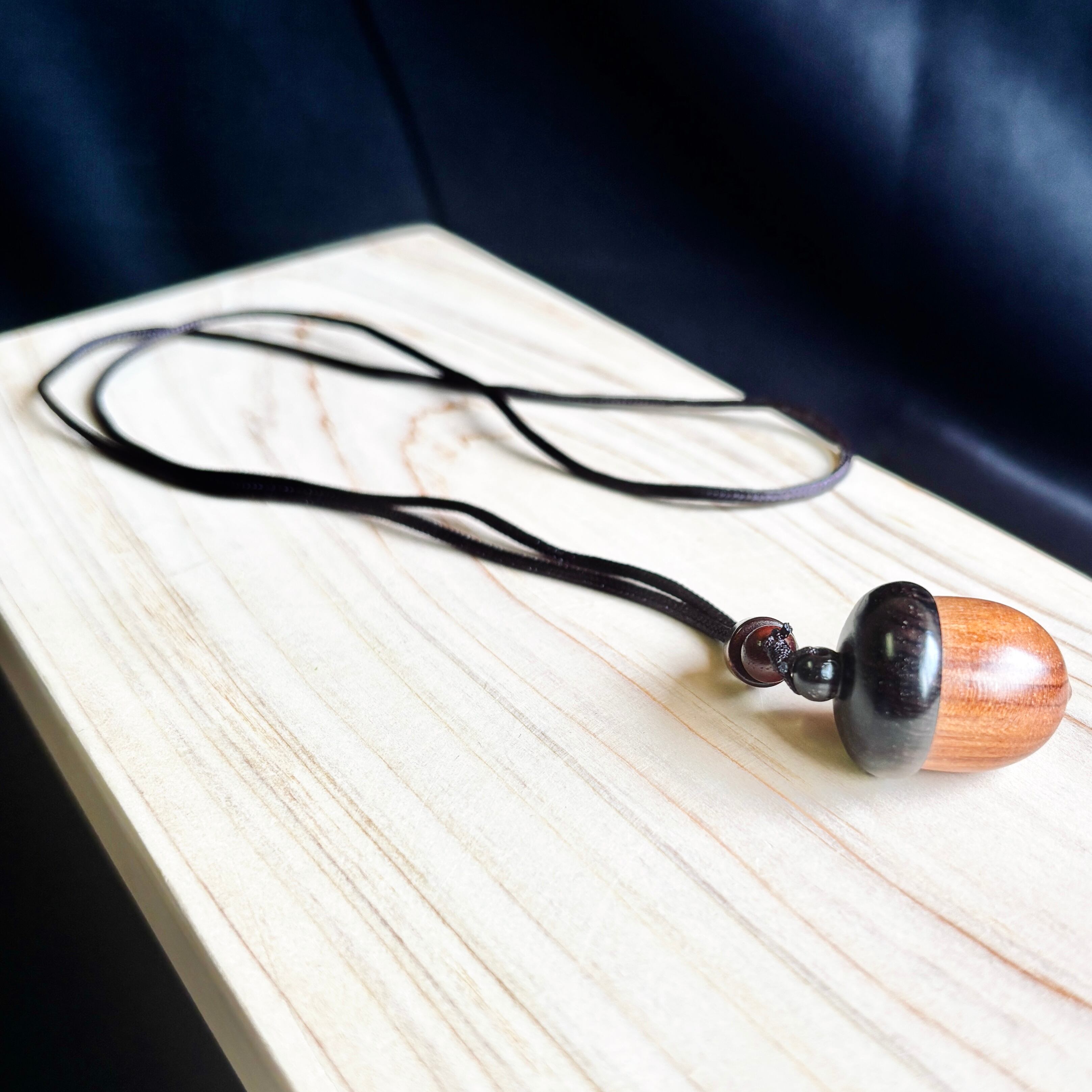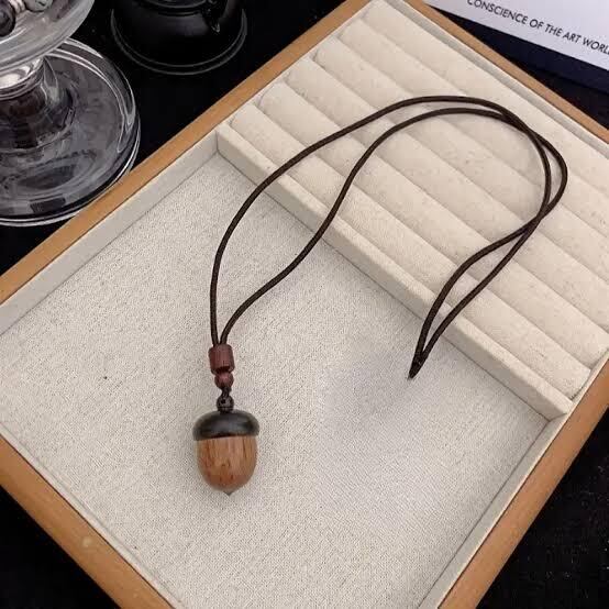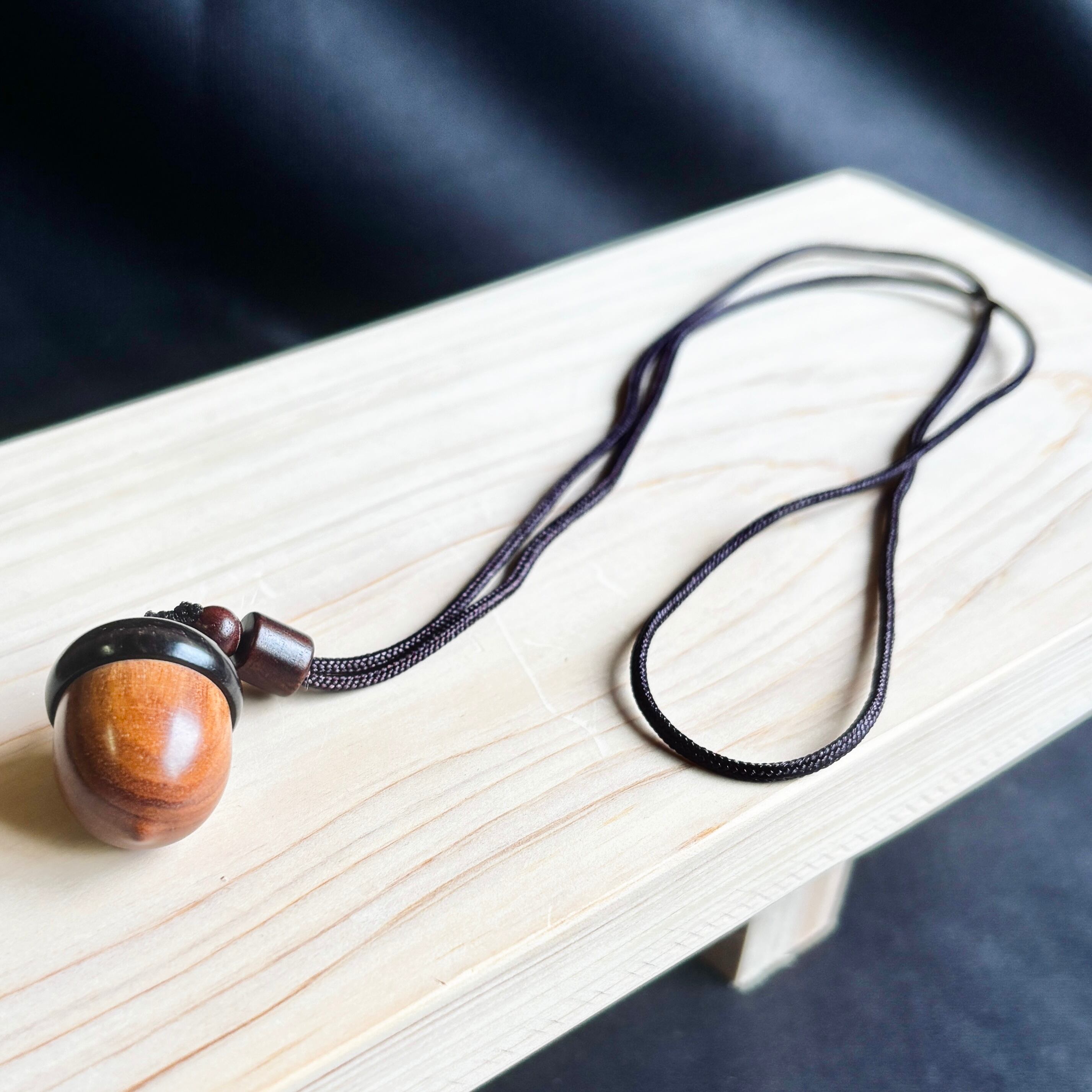 ころんと丸いフォルムが愛らしい天然木で作られたどんぐりのネックレスです。