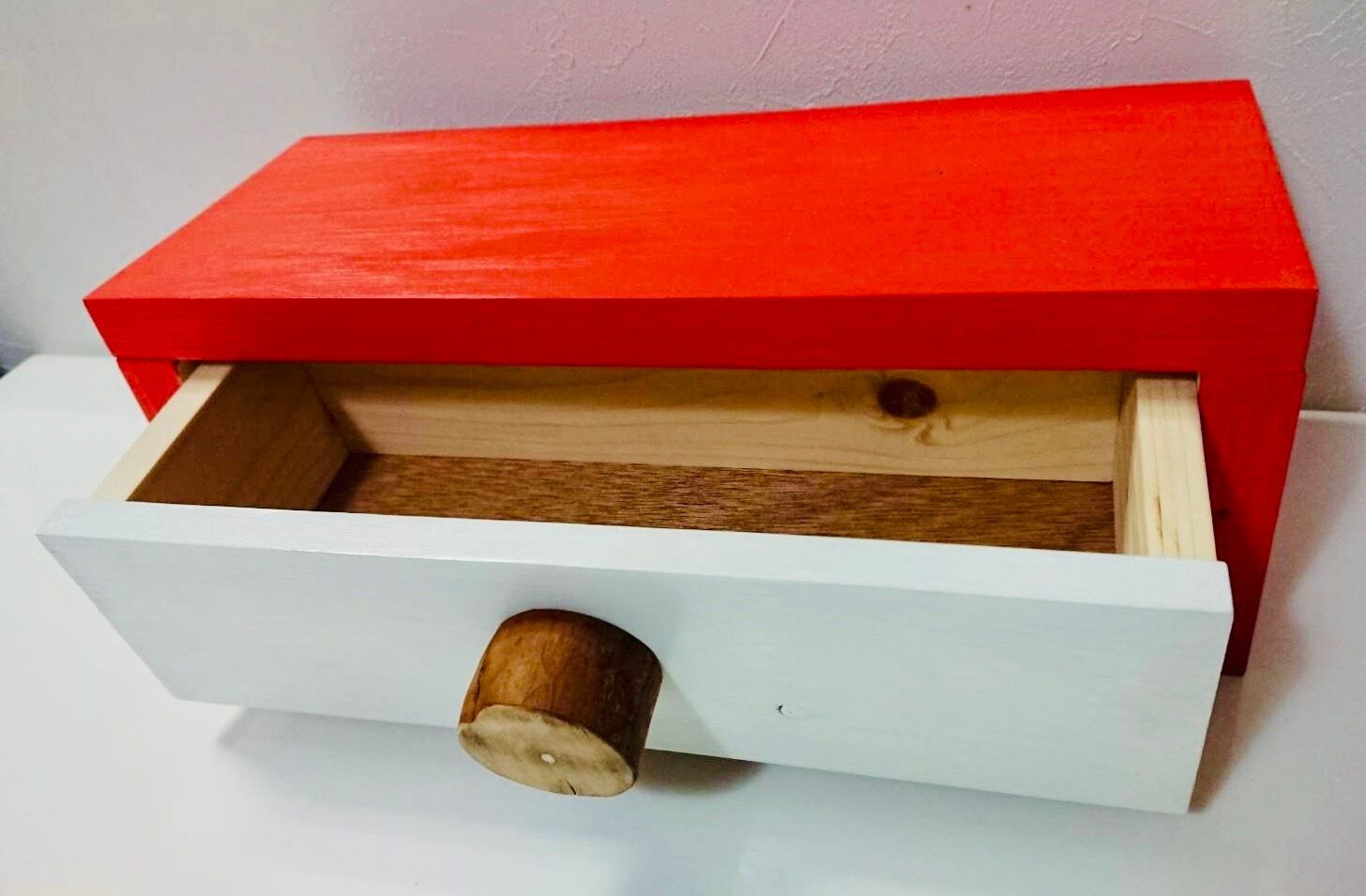 手作り木工 無垢材の小物入れ カラフルなオレンジカラー