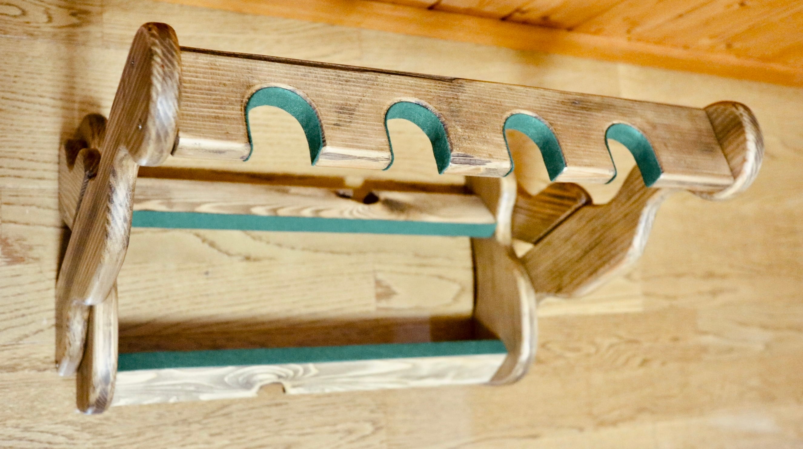 こちらは古材を使用した4本掛けのハンドメイドのウクレレラックです。