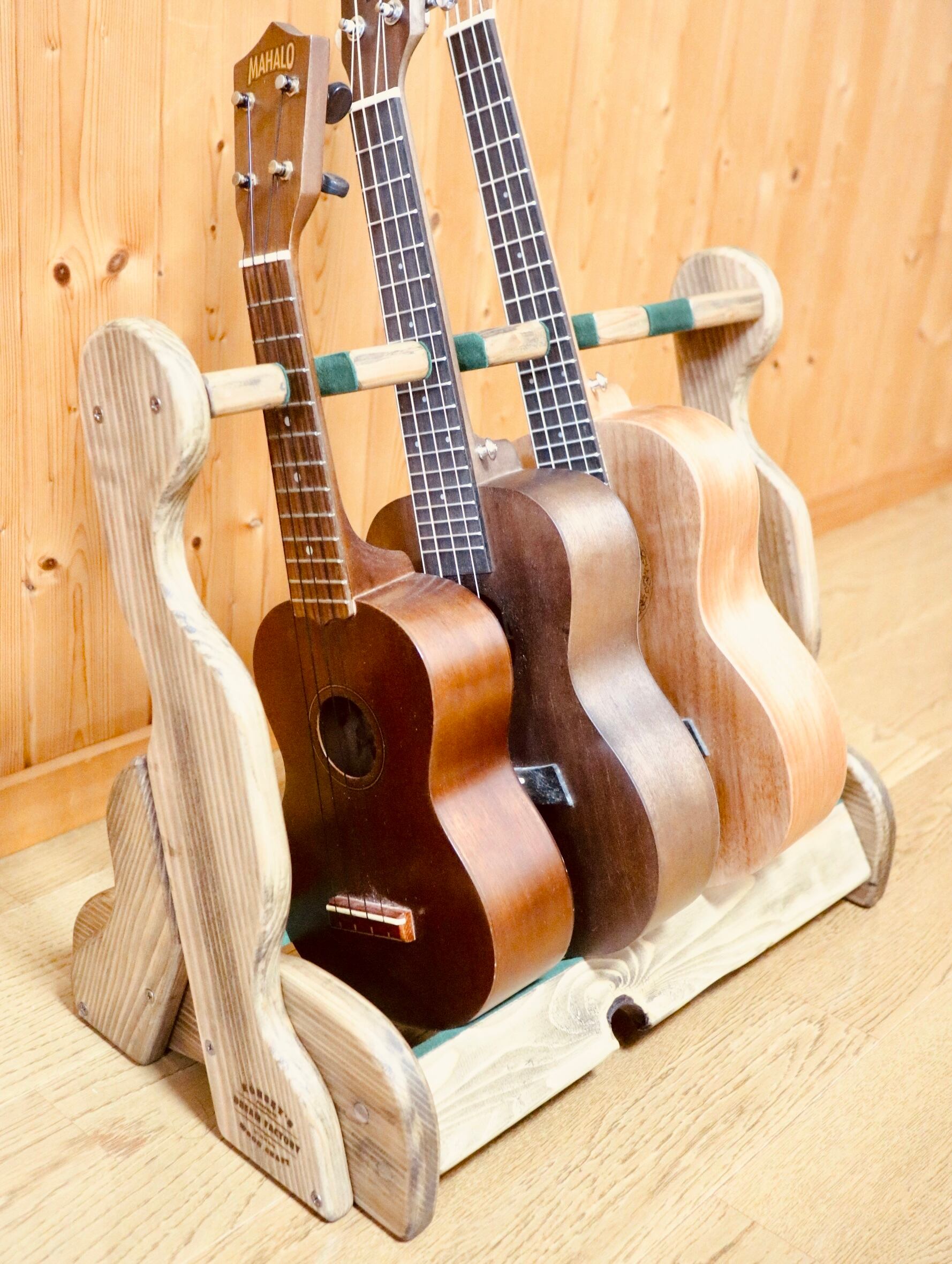 【24時間以内に発送】手作り木工 木製ウクレレスタンド(古材) 4本掛け