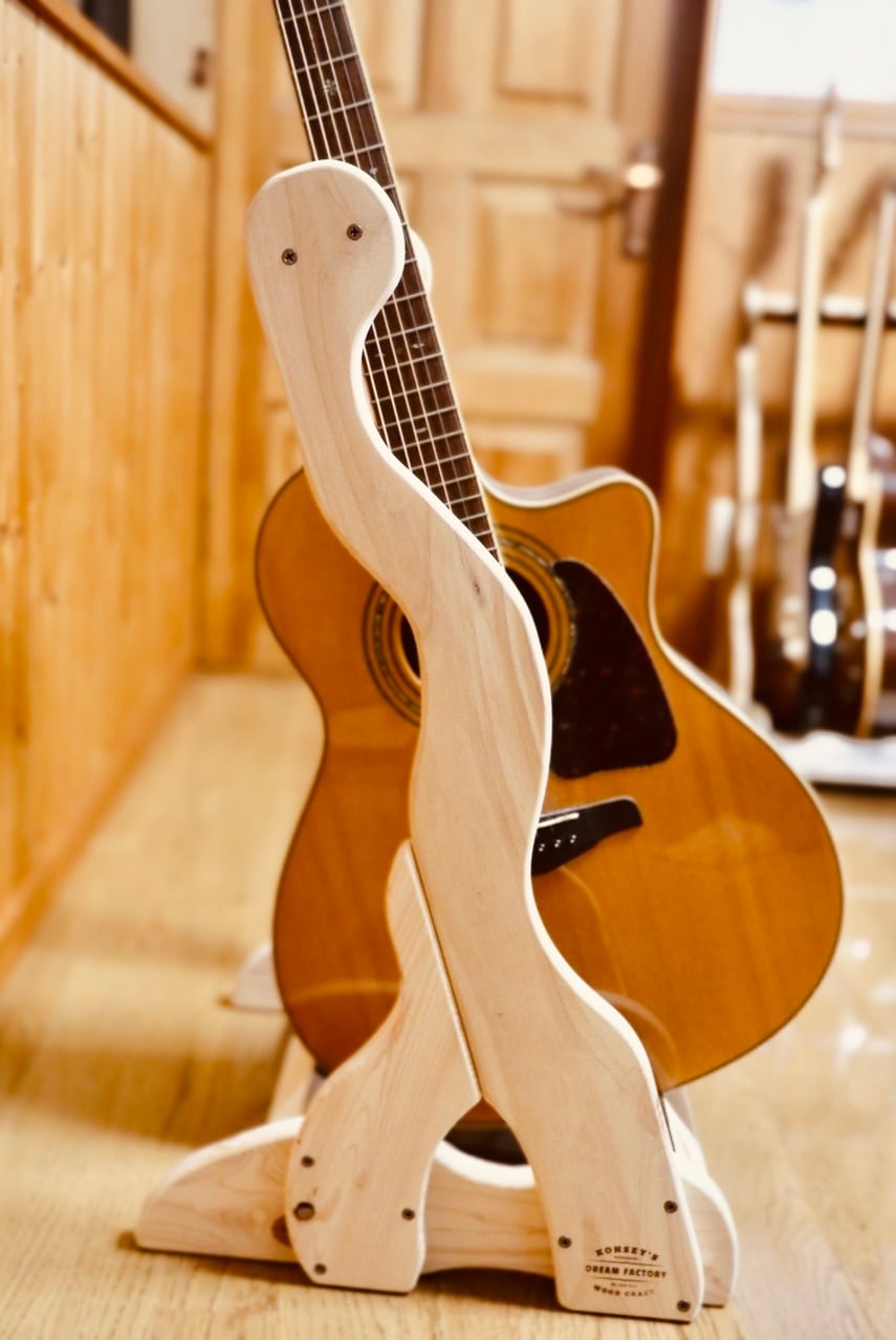 【24時間以内に発送】手作り木工 木製ギタースタンド (無塗装) 1本掛け