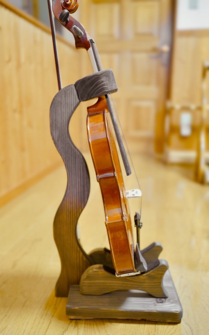 無垢材を使用したハンドメイドのフルサイズのバイオリンラックです。