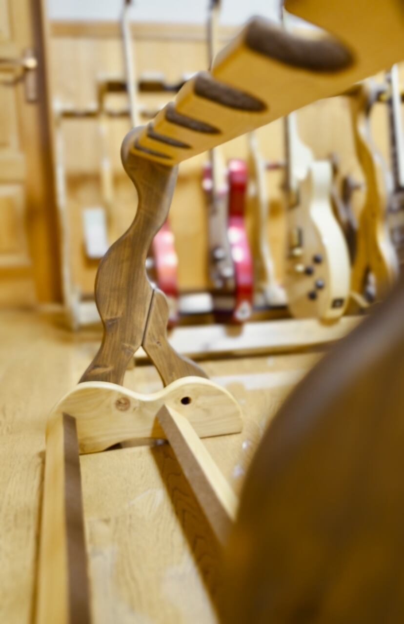 こちらは無垢材を使用したハンドメイドの木製ウクレレラックです。