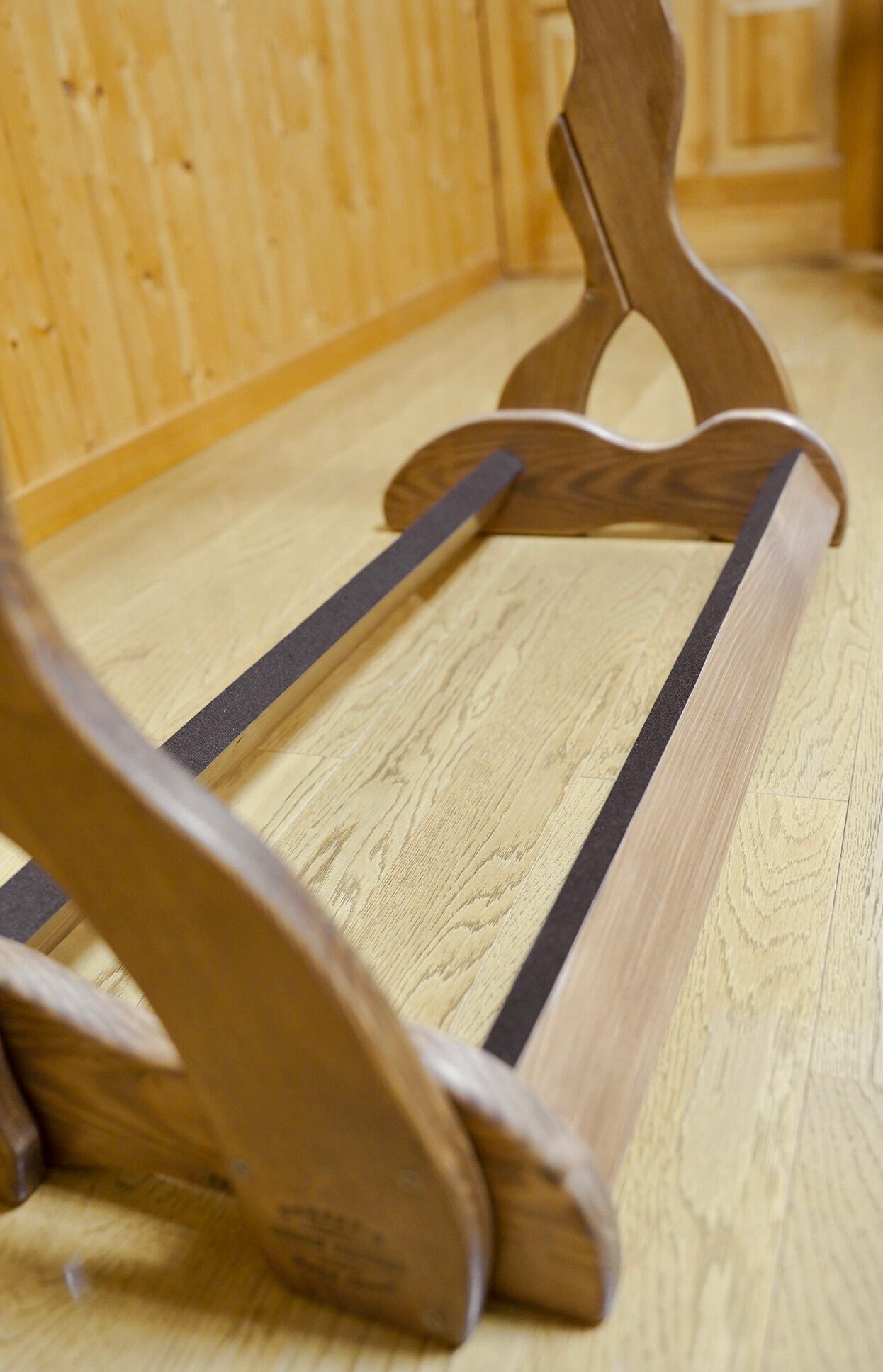 ギターのボディを支える二本の横木は角度をつけてハの字にしてあり、ボディをしっかりとキャッチできるように設計されています。