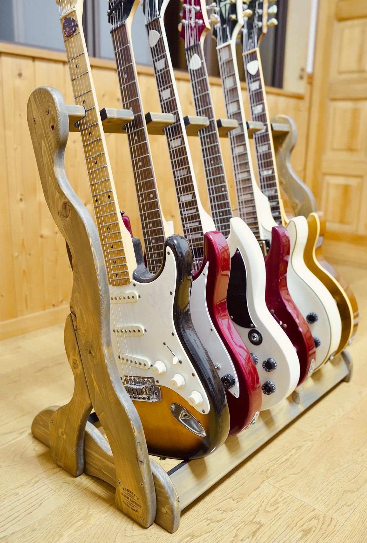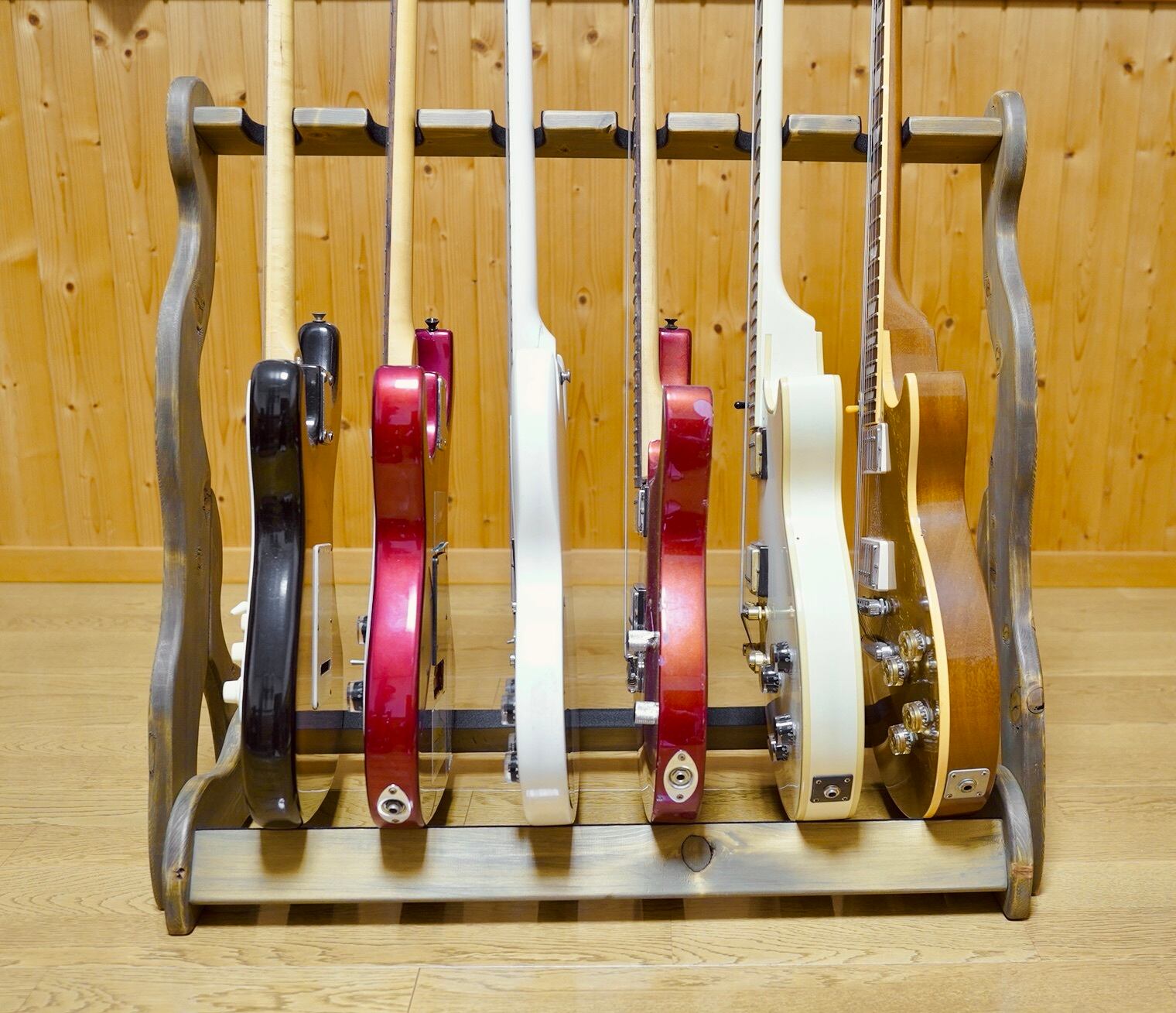 【24時間以内に発送】手作り木工 木製ギタースタンド (ステイン仕上げ) 6本掛け