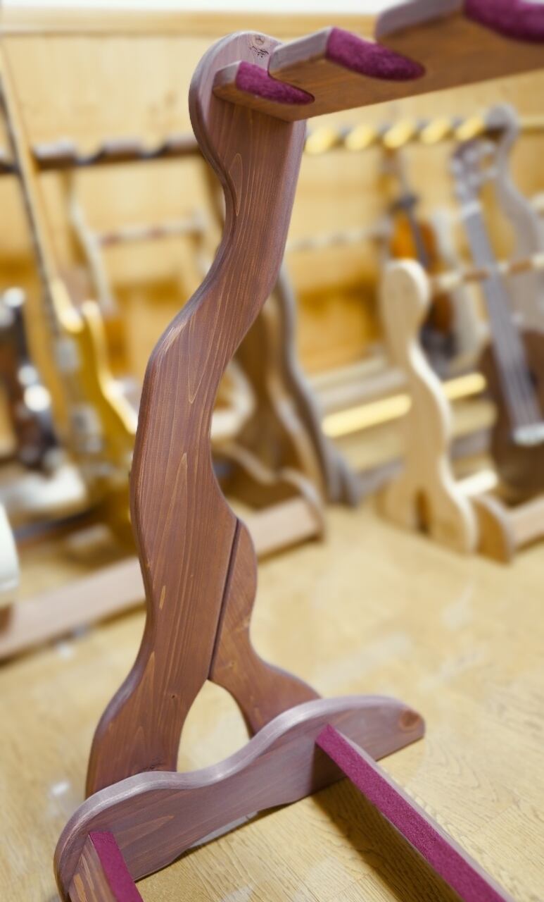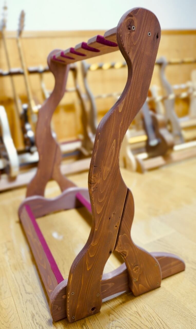【24時間以内に発送】手作り木工 木製ギタースタンド (ステイン仕上げ) 5本掛け