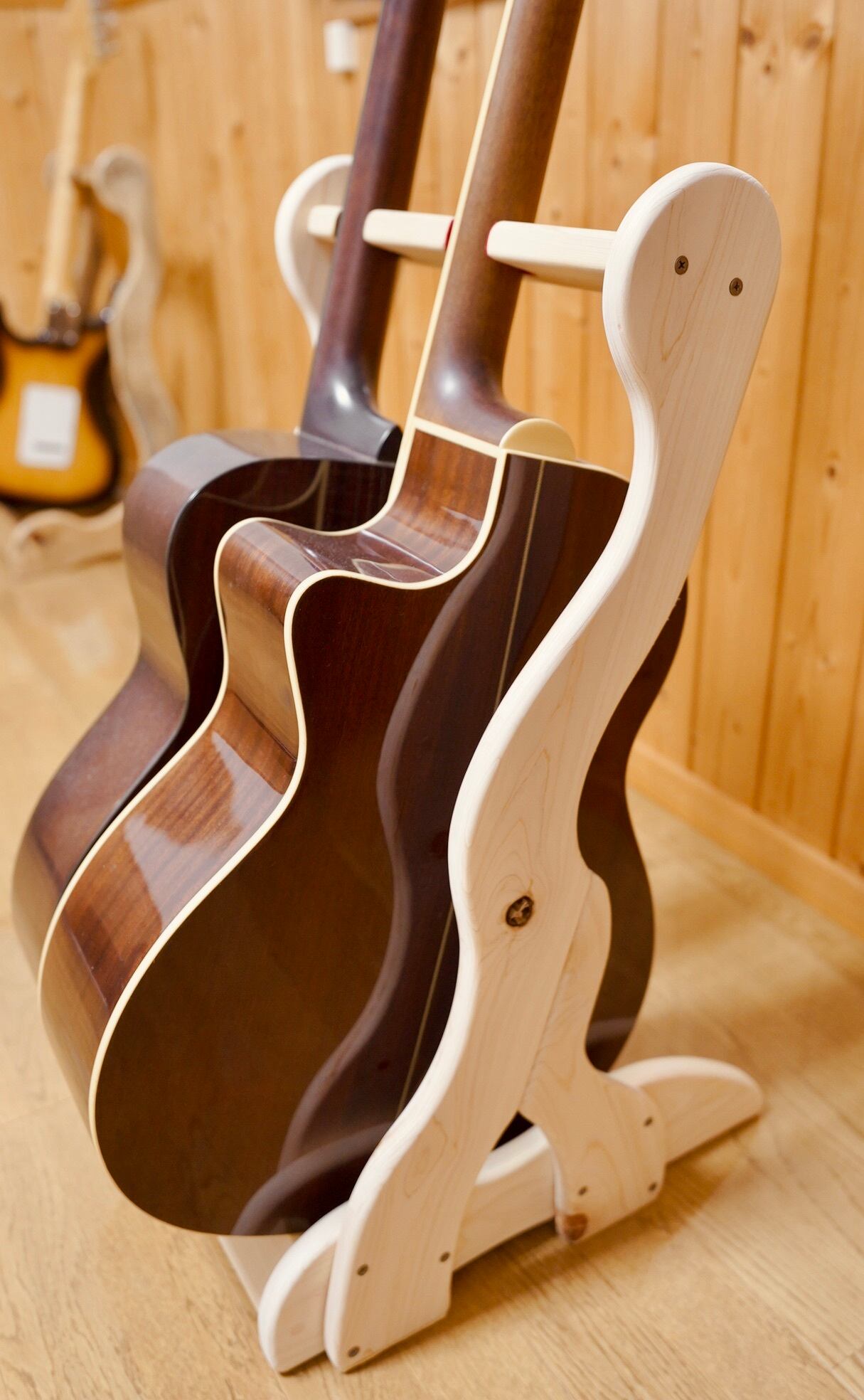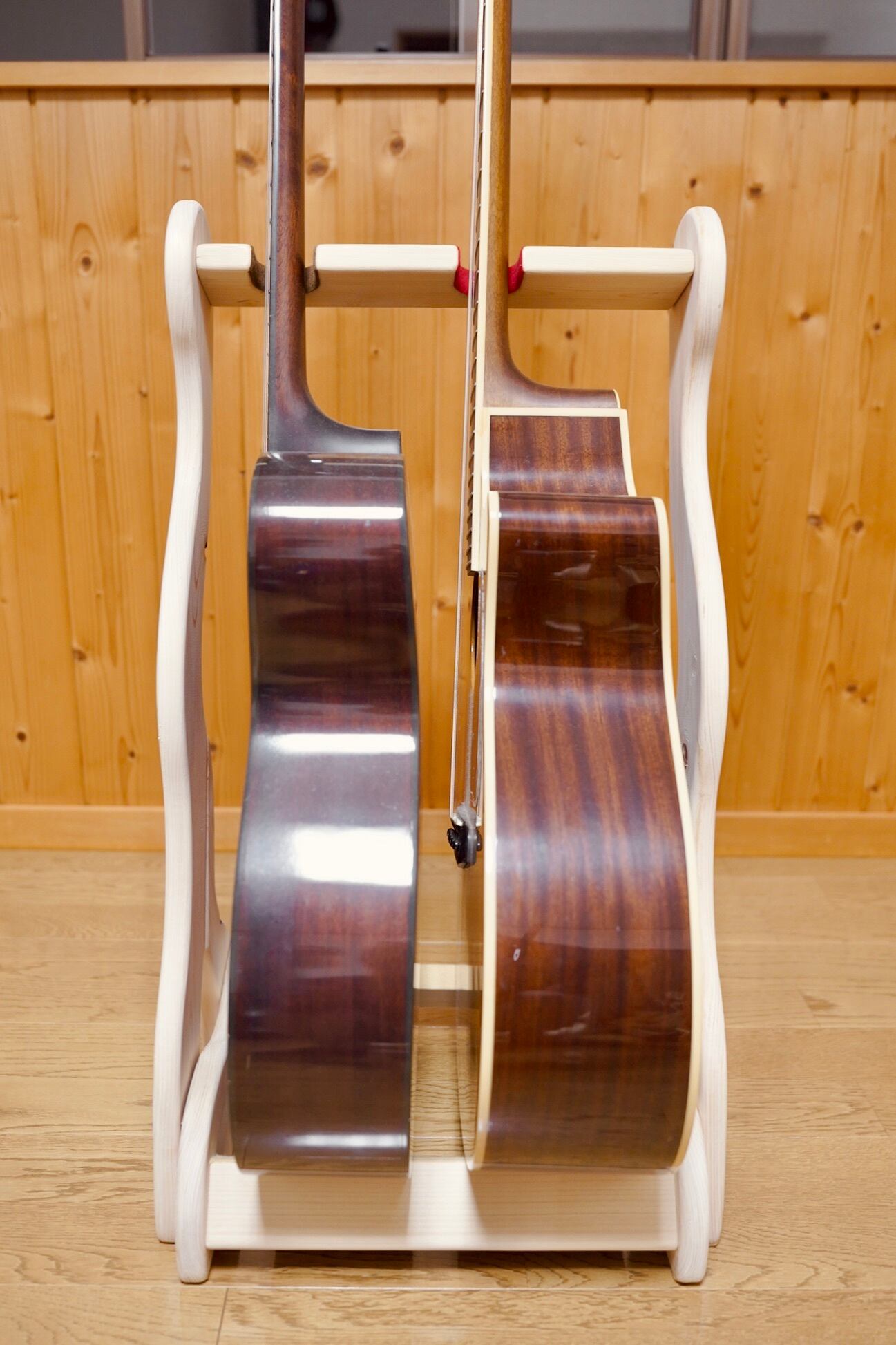 【オーダー品】手作り木工 木製ギタースタンド (無塗装)2本掛け