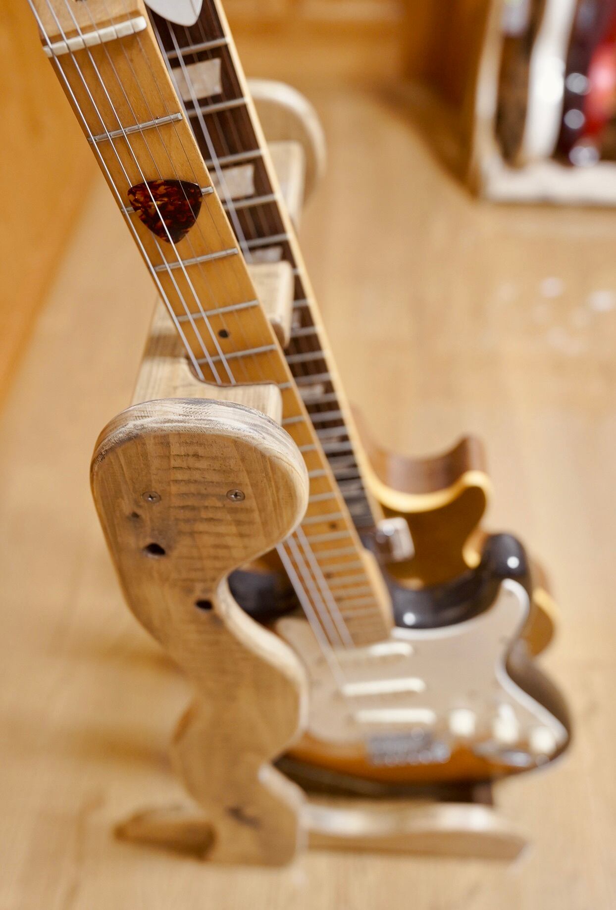 【24時間以内に発送】手作り木工 木製ギタースタンド (古材) 2本掛け