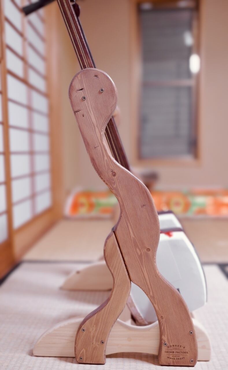 こちらは無垢材を使用したハンドメイドの三味線ラックです。