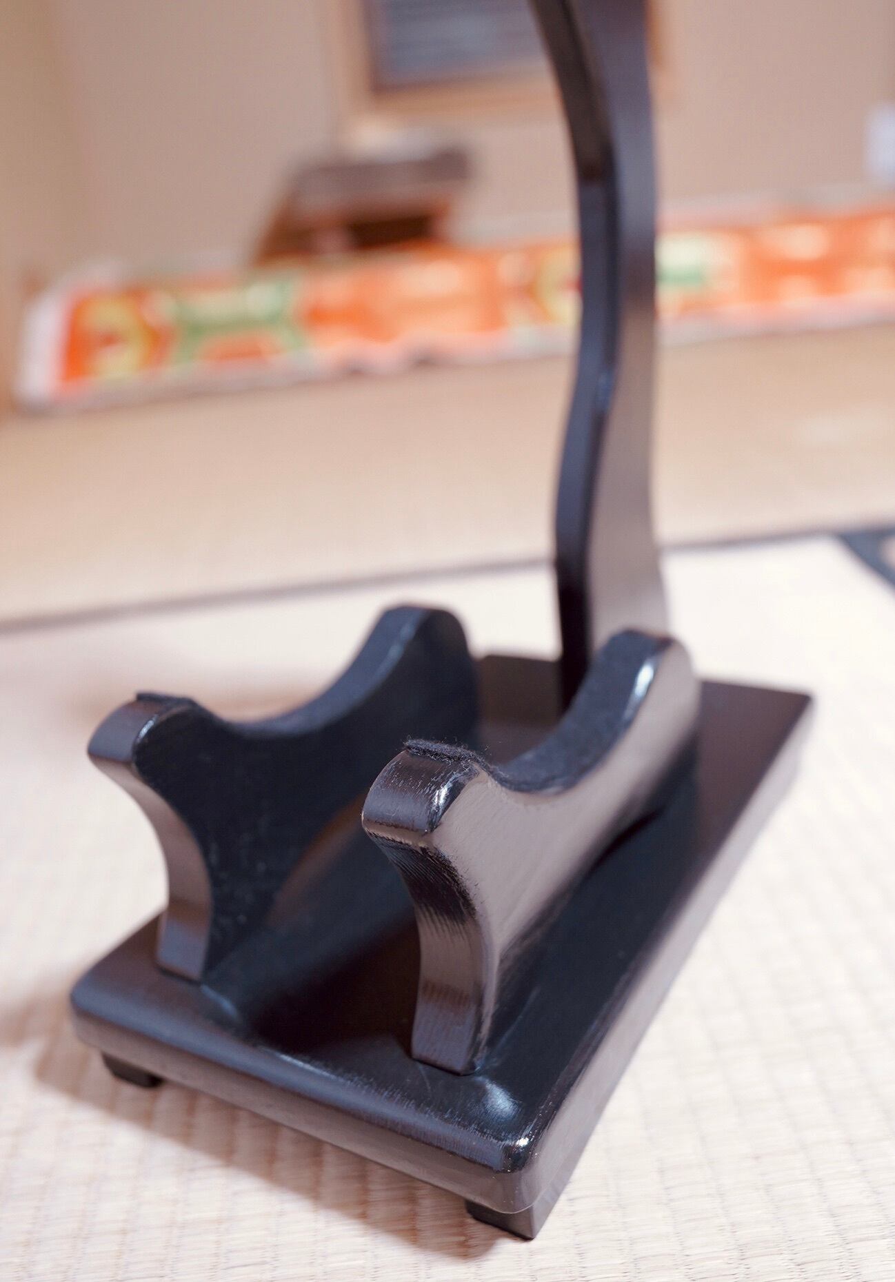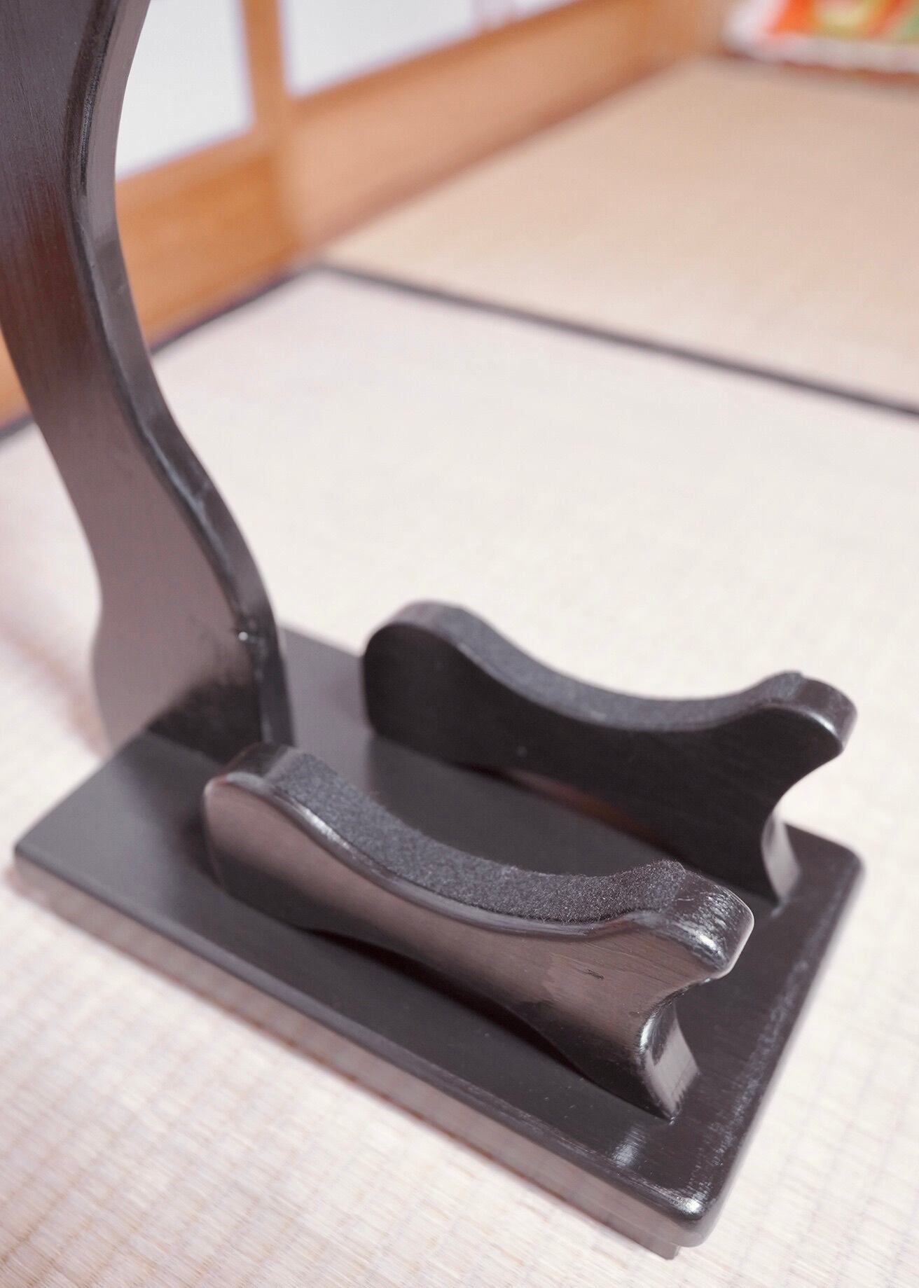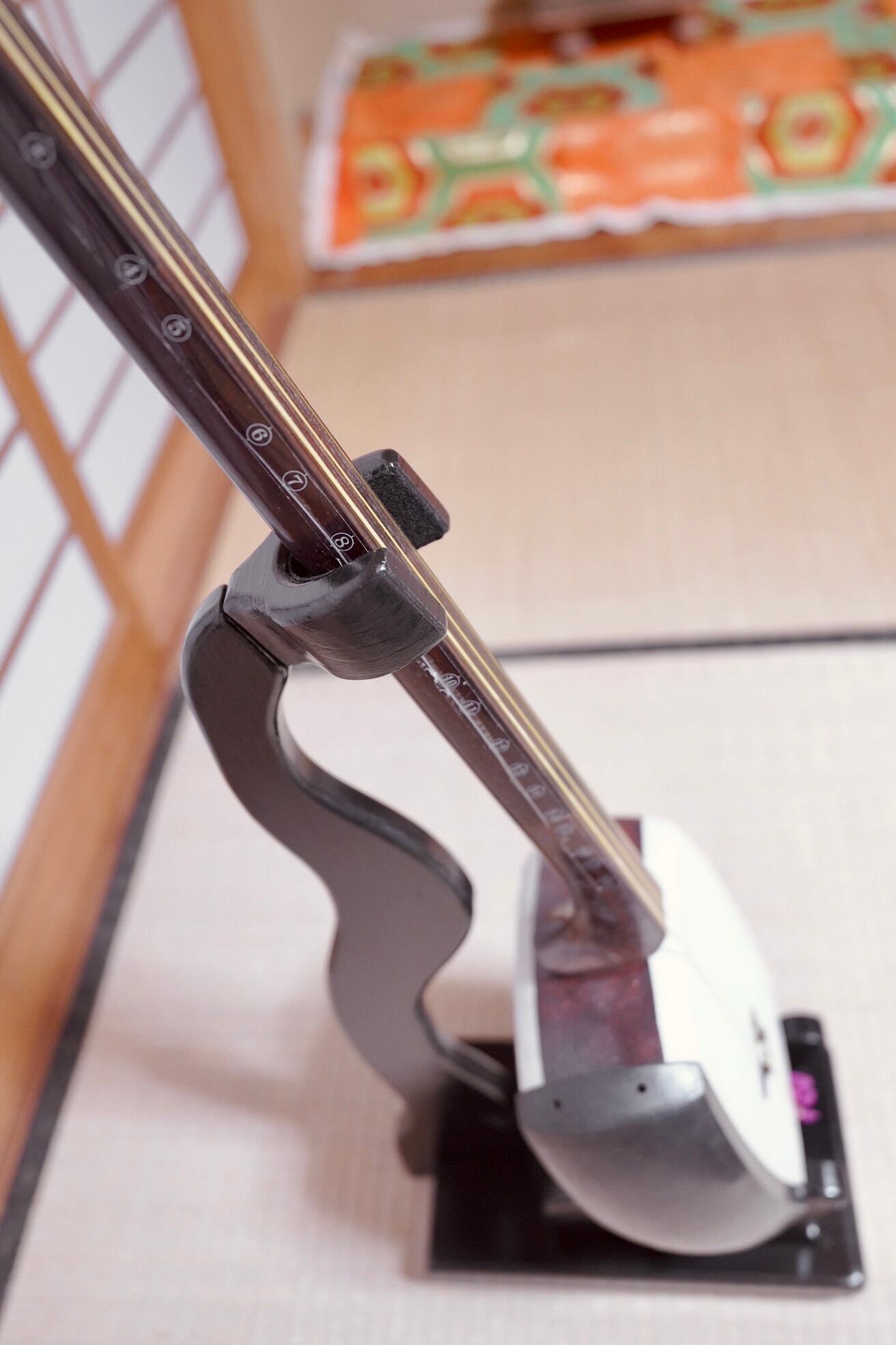 【24時間以内に発送】手作り木工 木製三味線スタンド (黒漆) タイプA