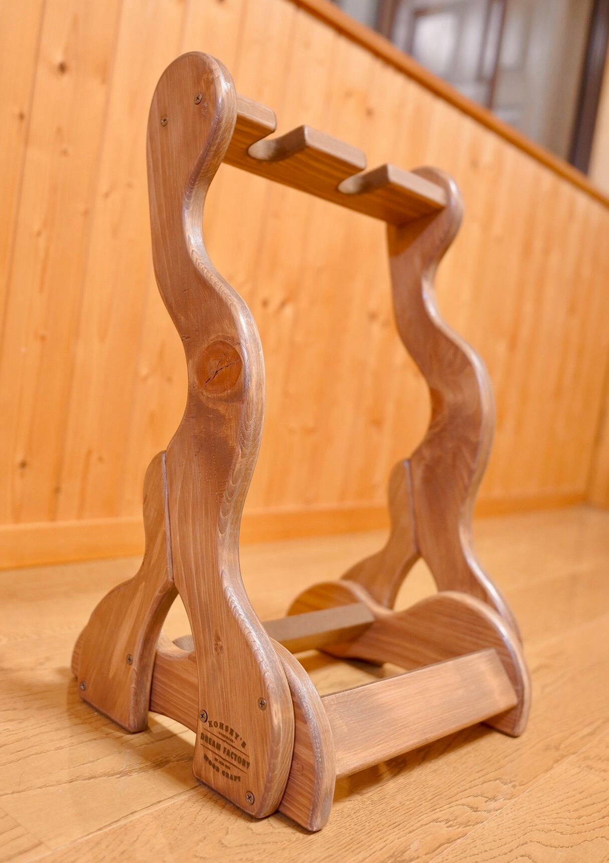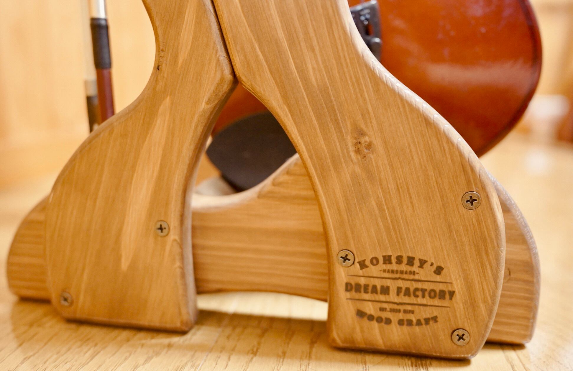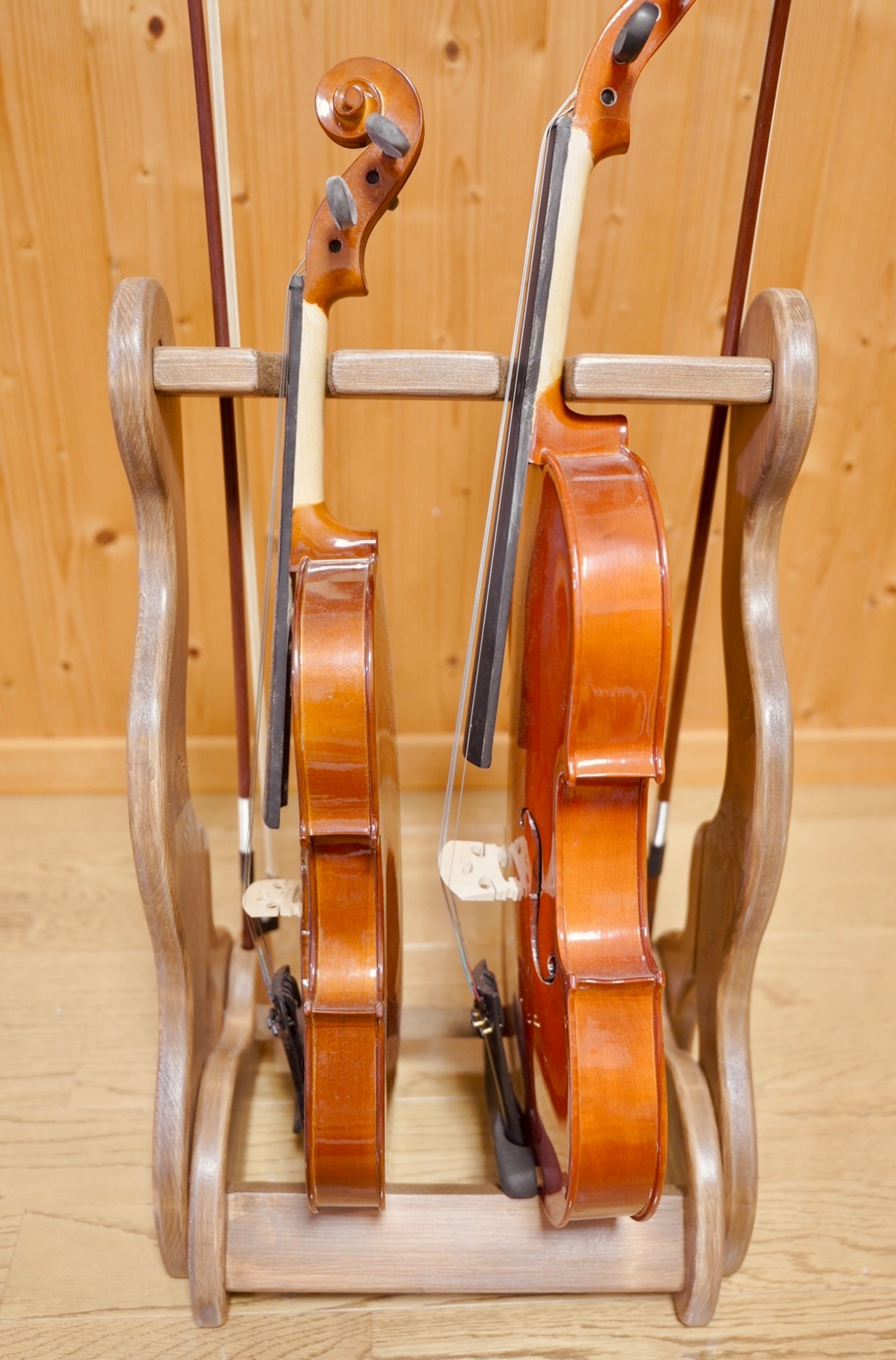 【24時間以内に発送】手作り木工 木製バイオリン・ヴィオラスタンド (ニス仕上げ)2本掛け