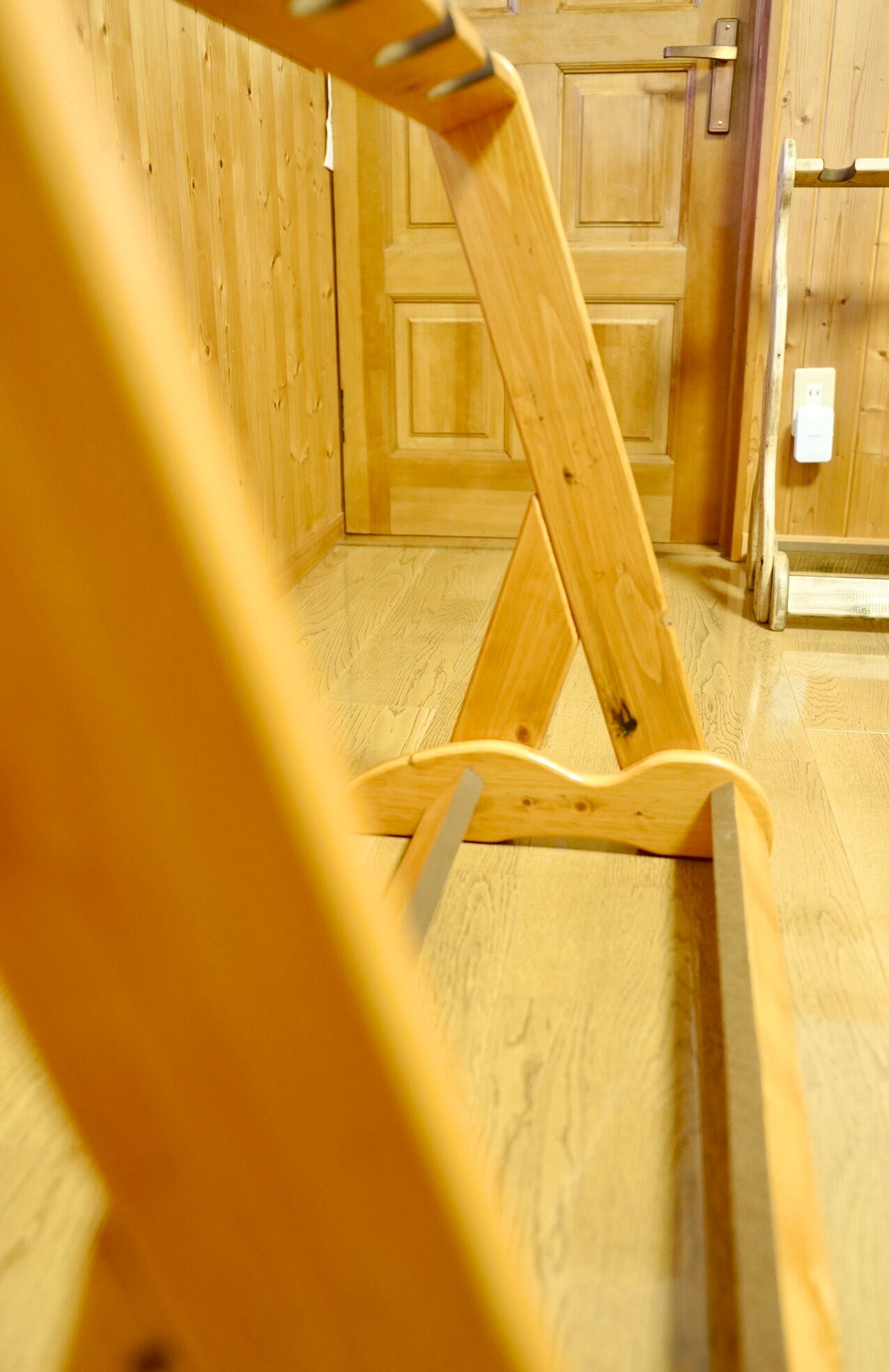 こちらは無垢材を使用したハンドメイドのギターラックです。