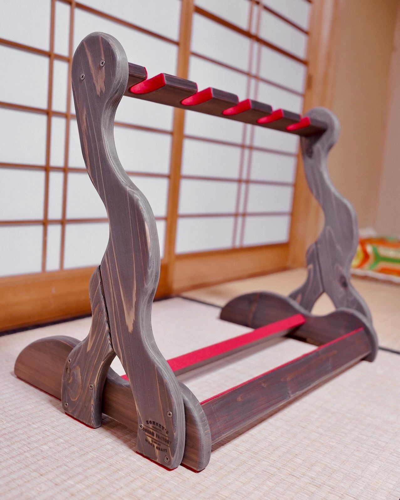 【24時間以内に発送】手作り木工 木製三線スタンド (ステイン仕上げ) 5本掛け