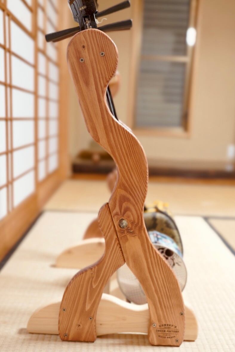 こちらは無垢材を使用したハンドメイドの三線ラックです。