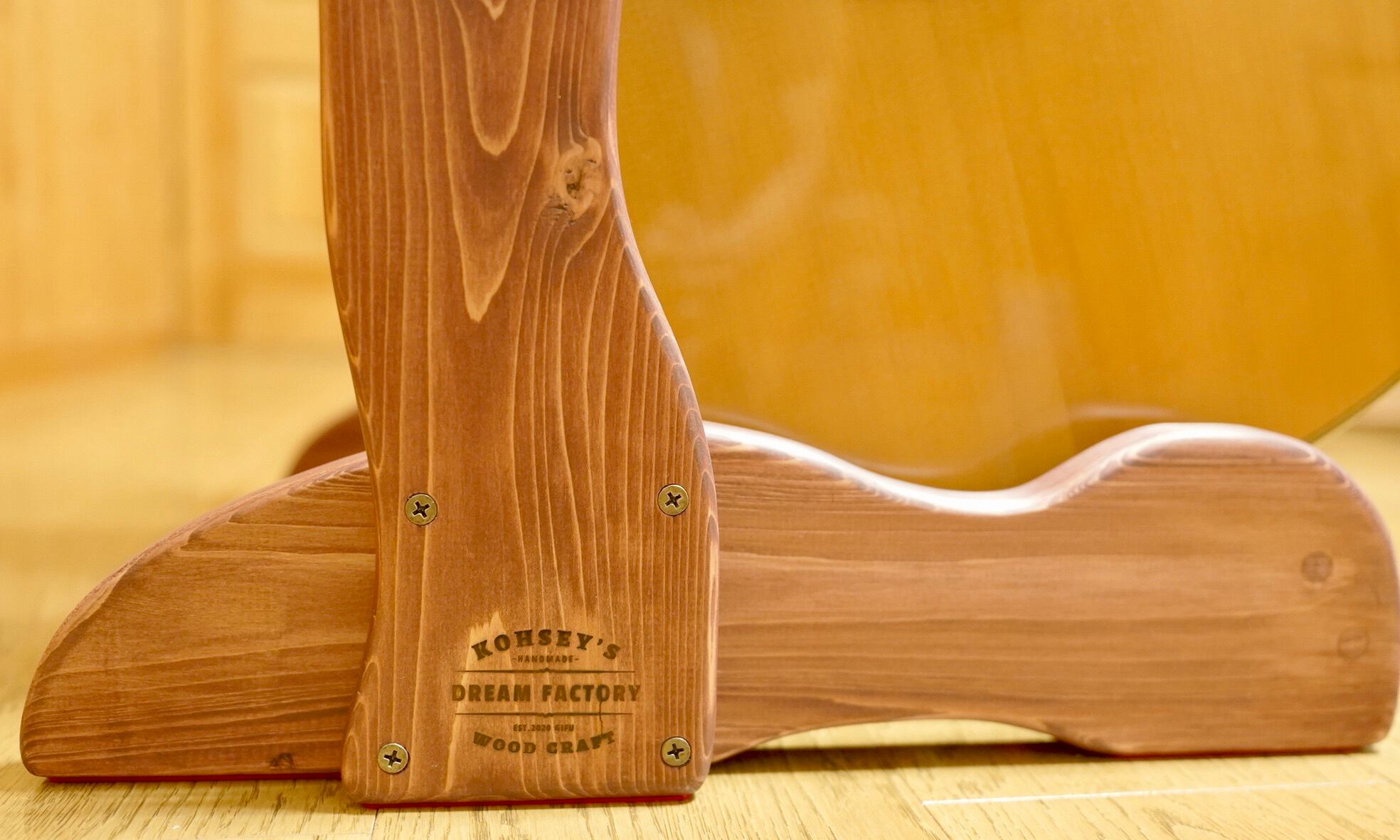 ギターのボディを支える二本の横木は角度をつけてハの字にしてあり、ボディをしっかりとキャッチできるように設計されています。