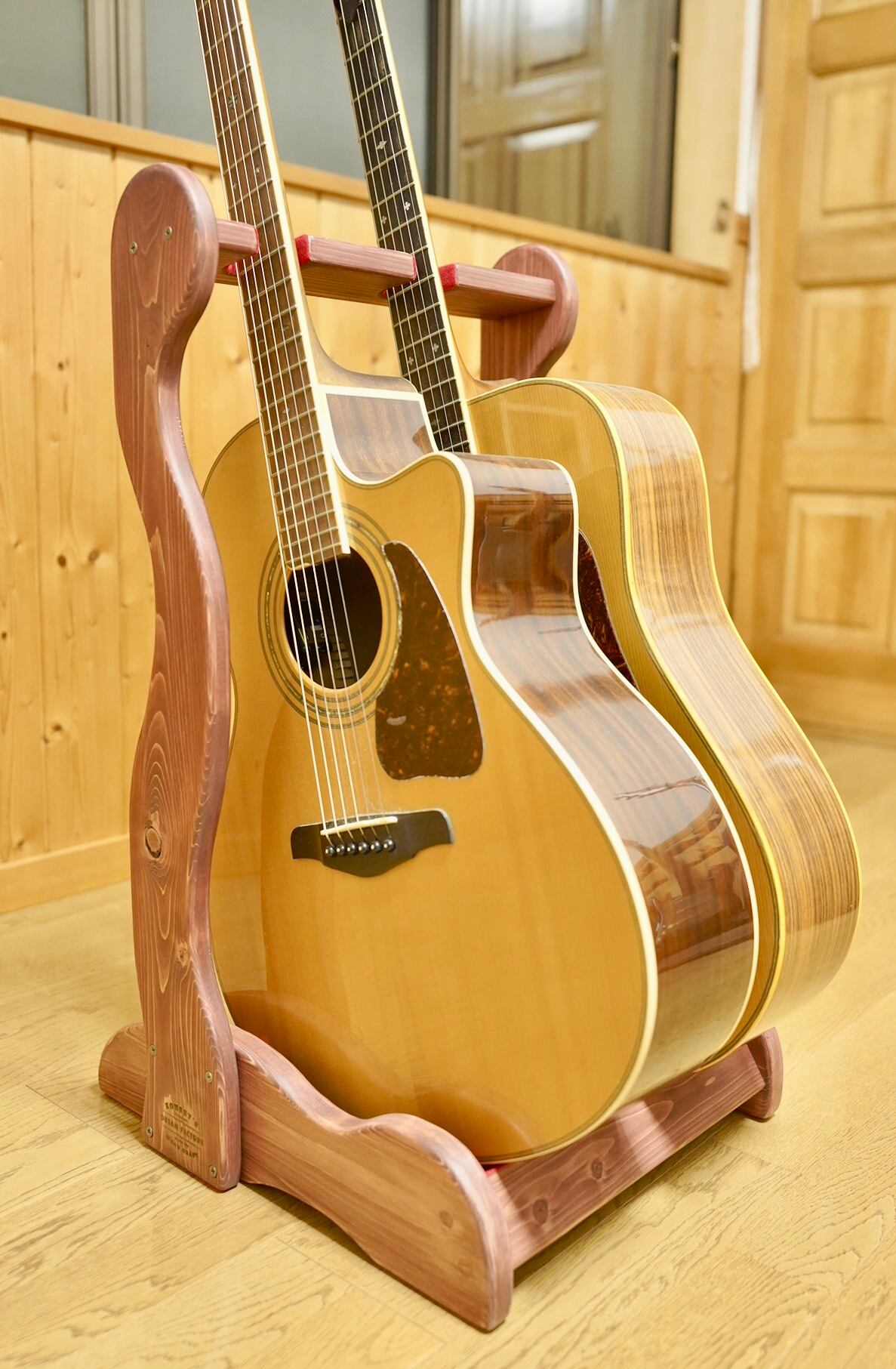 【24時間以内に発送】手作り木工 木製ギタースタンド (保護剤仕上げ) 2本掛け
