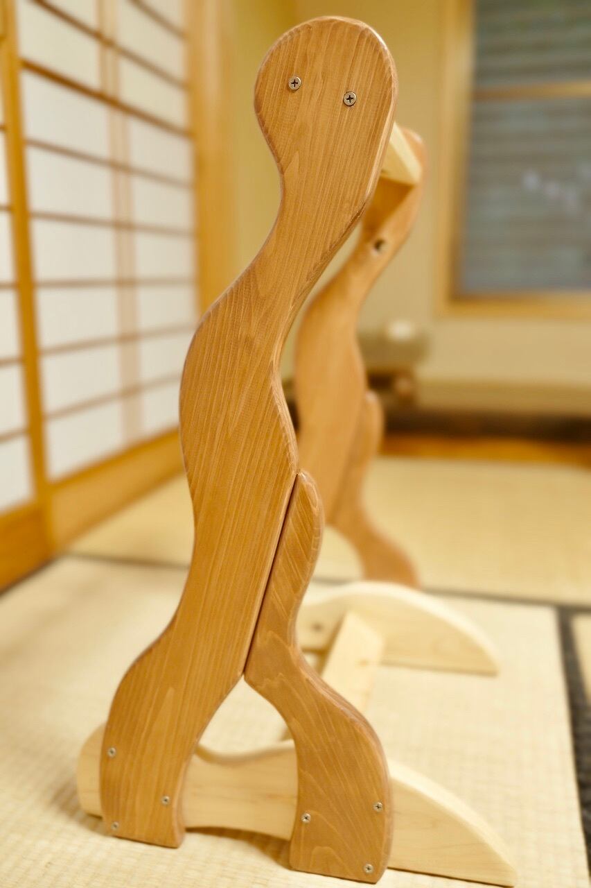 こちらは無垢材を使用したハンドメイドの三味線ラックです。