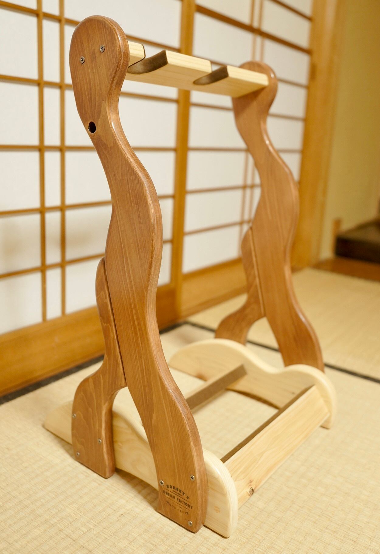 【24時間以内に発送】手作り木工 木製三味線スタンド (ニス仕上げ) 2丁掛け