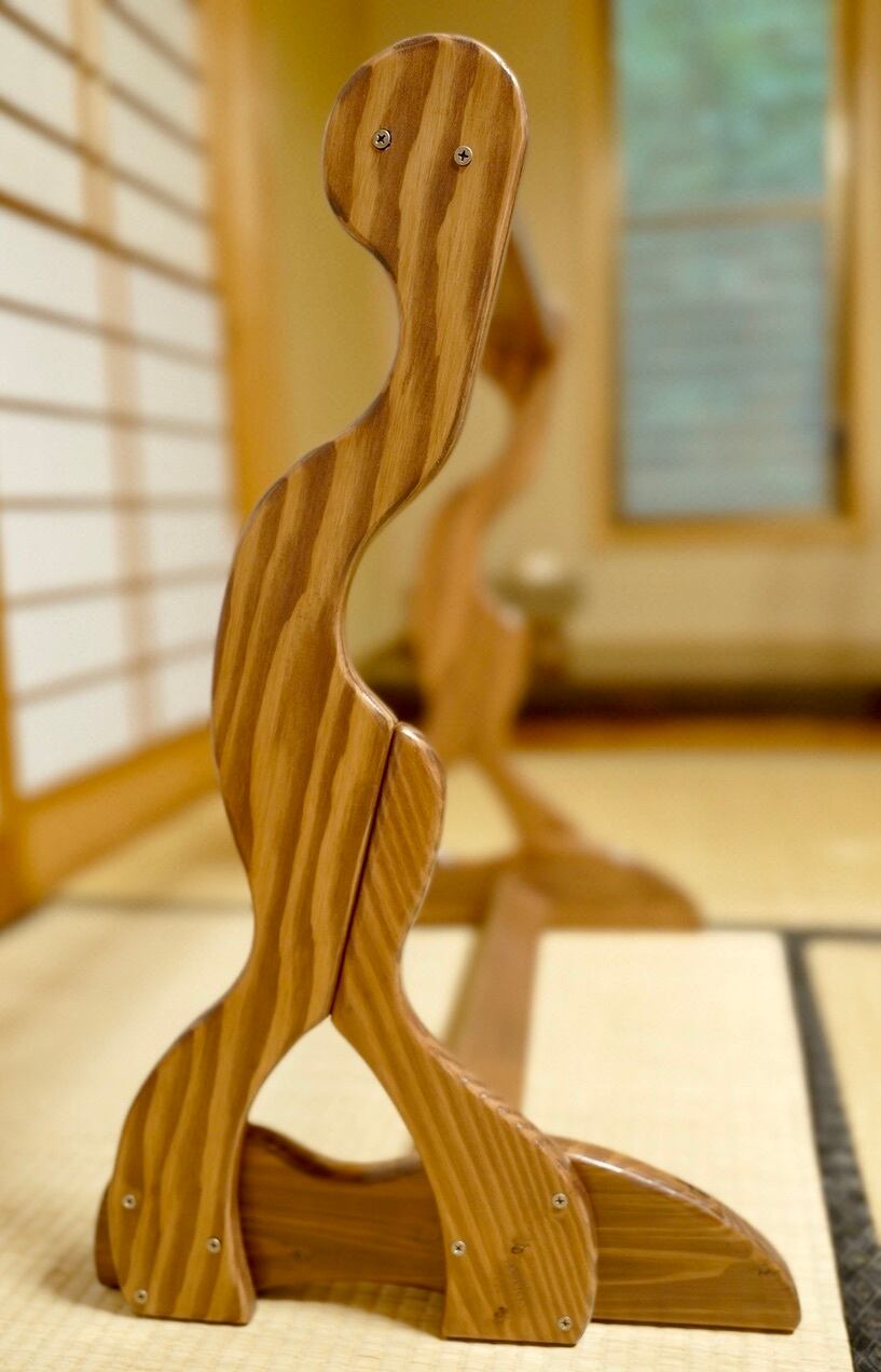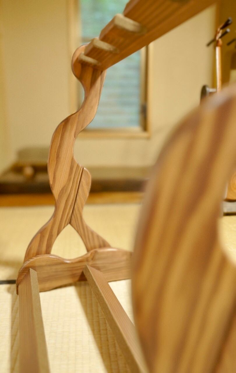 こちらは無垢材を使用したハンドメイドの三味線ラックです。