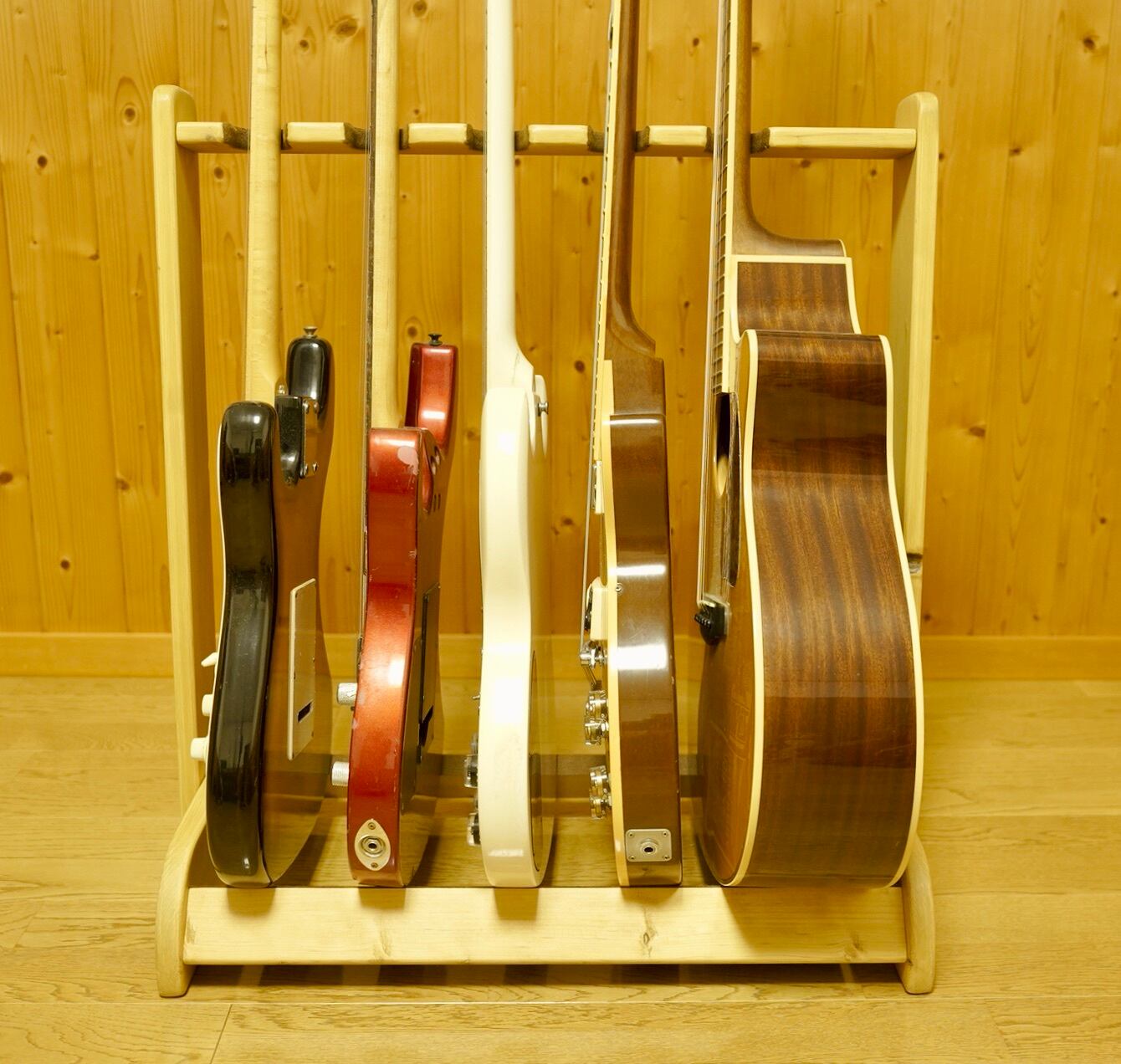 【24時間以内に発送】手作り木工 木製ギタースタンド (オーク) 5本掛け