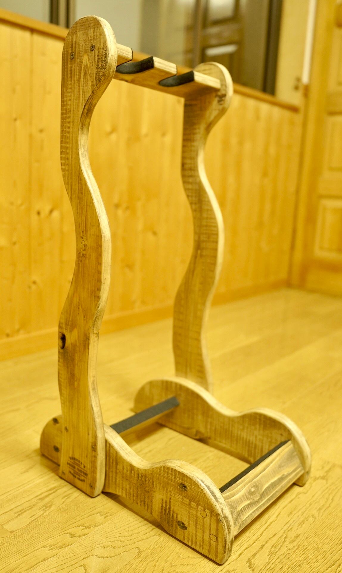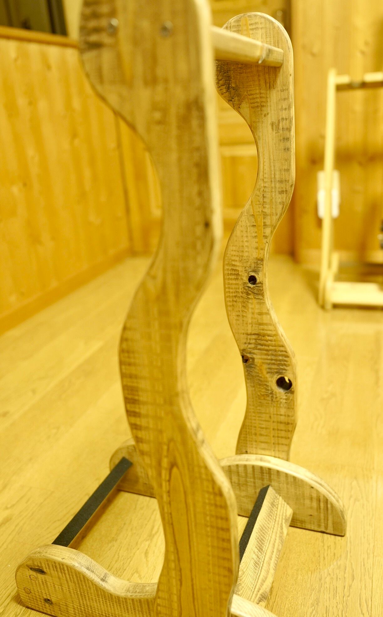 古材を使用したハンドメイドのギターラックです。