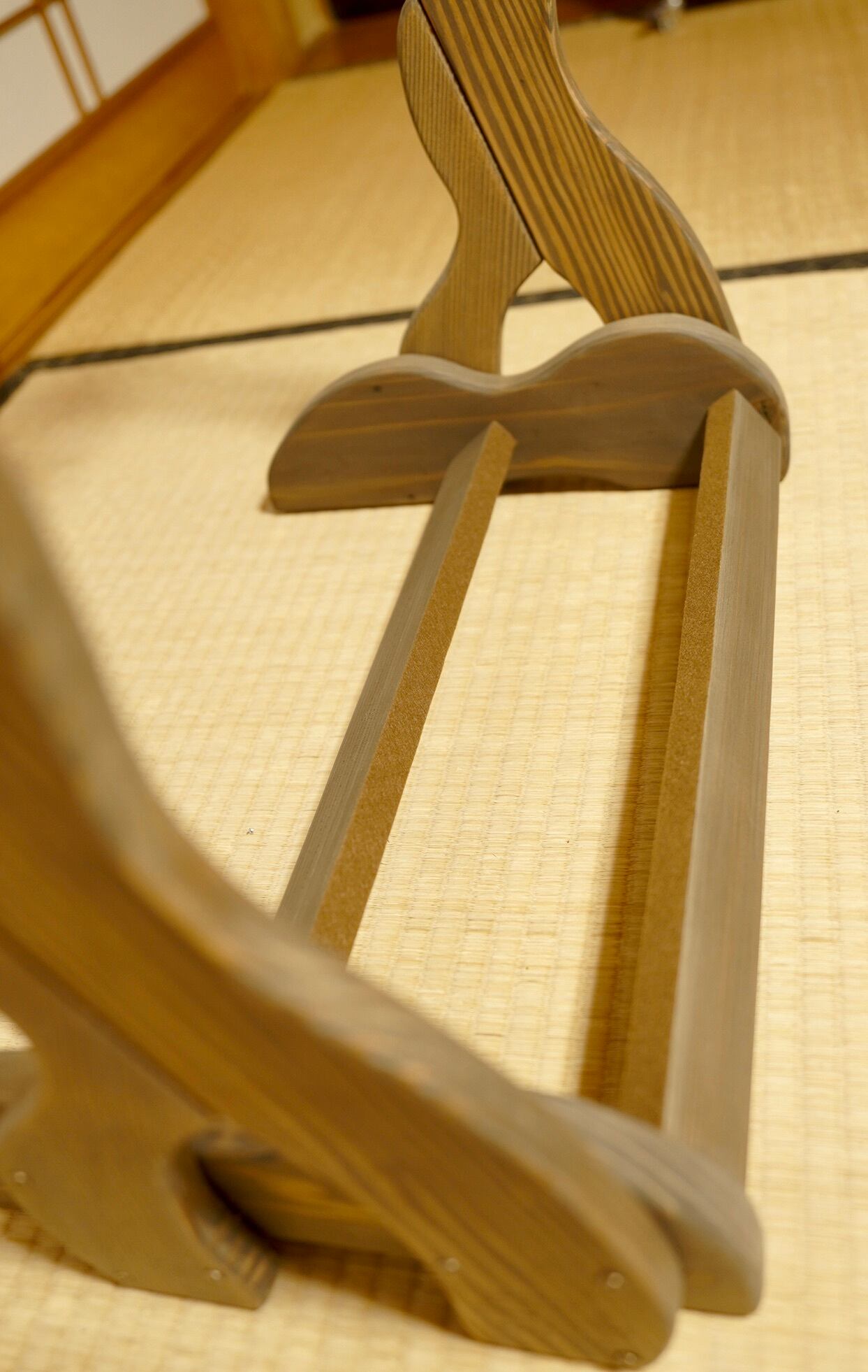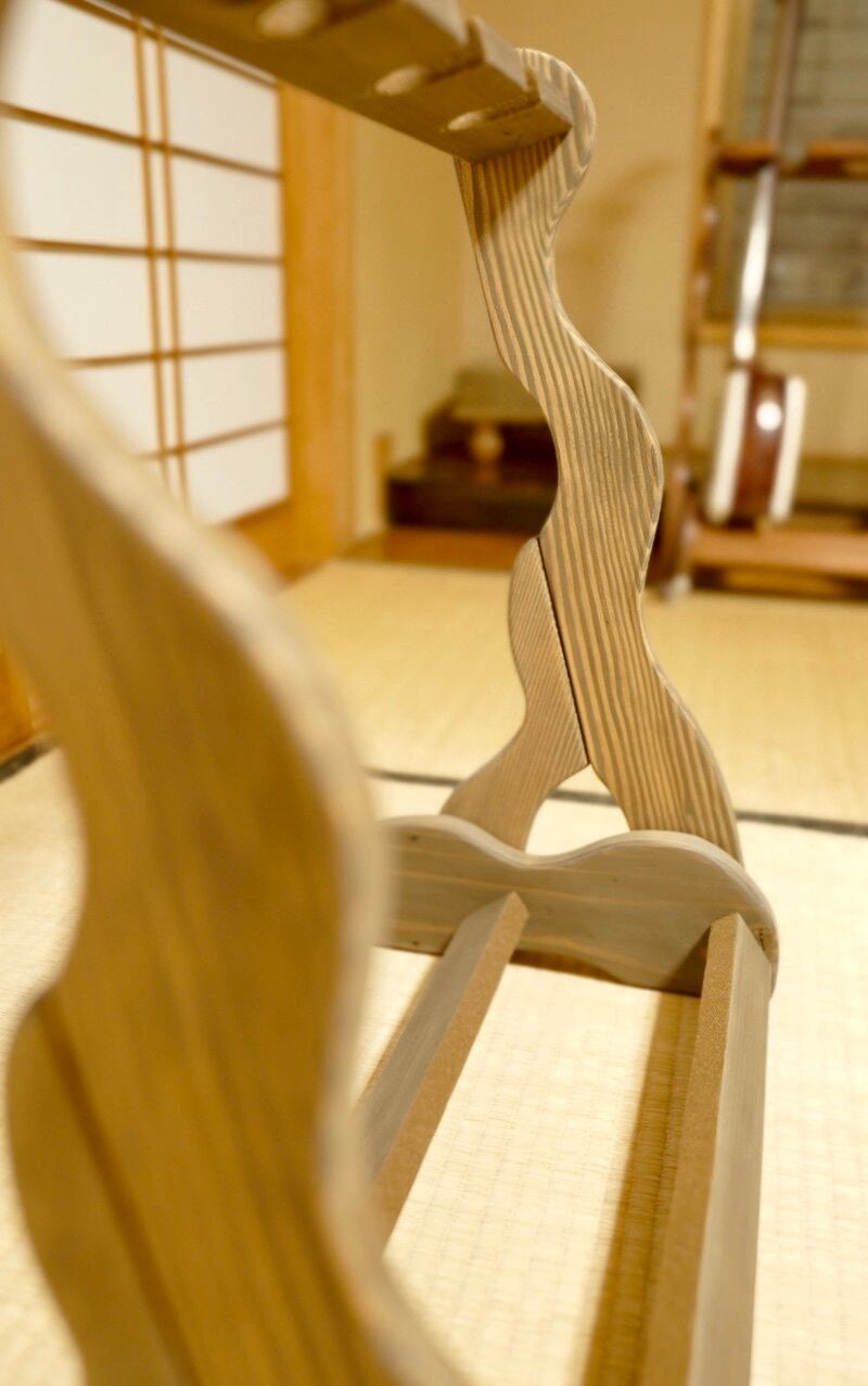こちらは無垢材を使用したハンドメイドの三線ラックです。