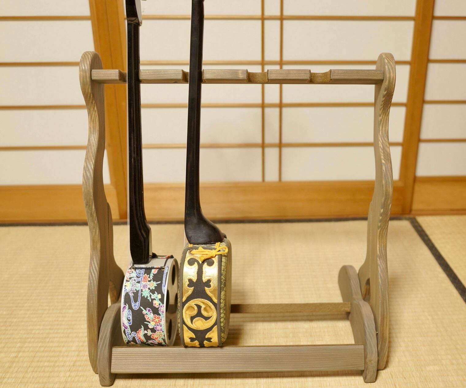 ※こちらのスタンドには三味線(細棹〜太棹)を掛けることはできません。