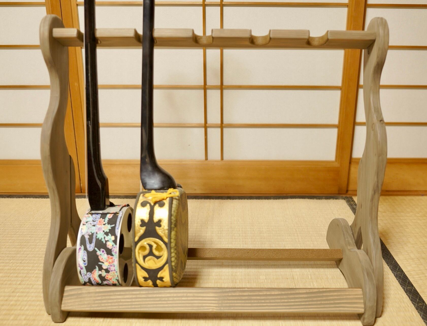 ※こちらのスタンドには三味線(細棹〜太棹)を掛けることはできません。