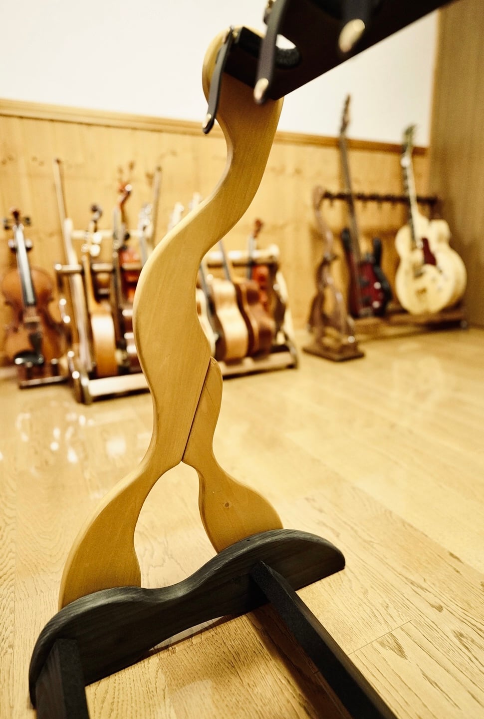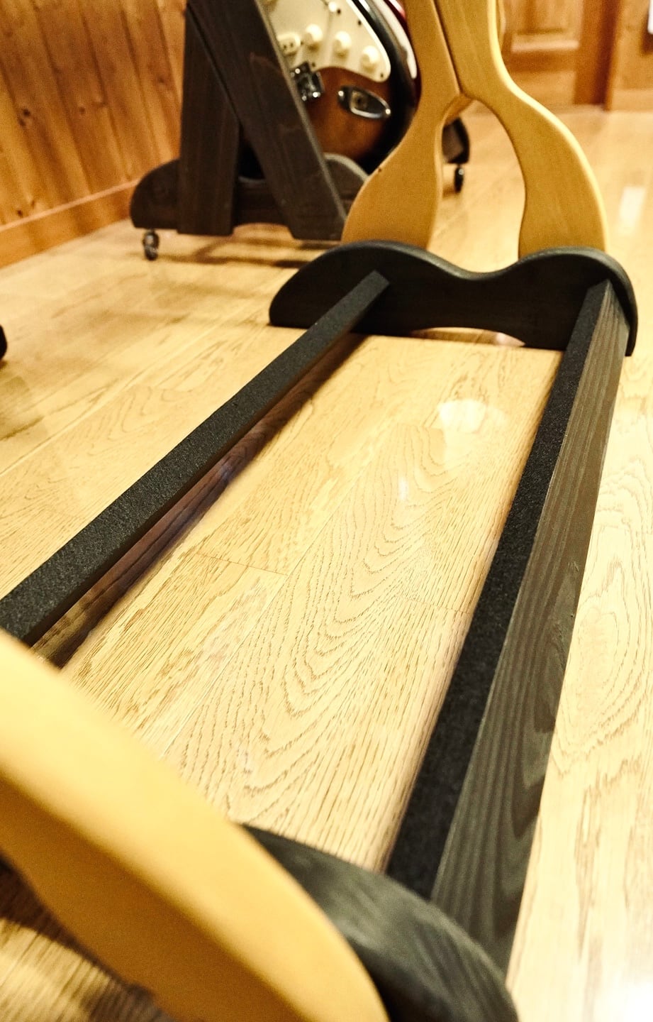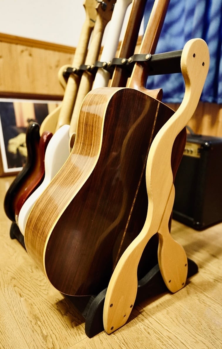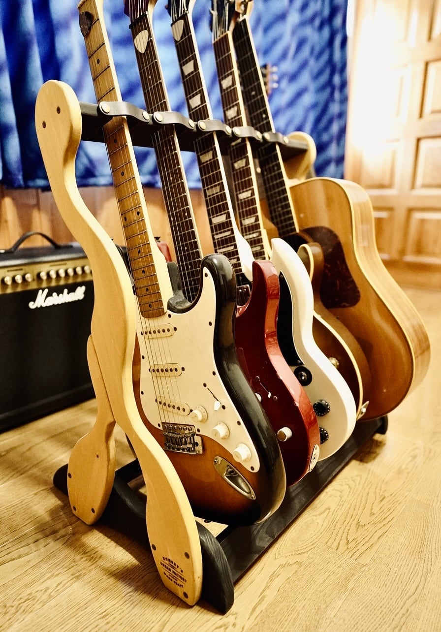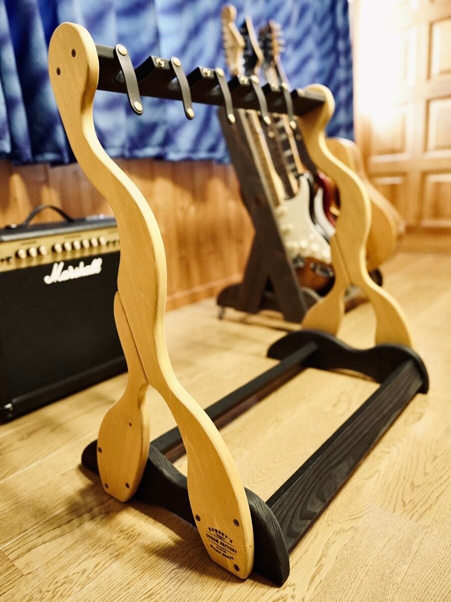 そんな想いから生まれた、無垢材の温もりと職人のこだわりが詰まった限定1台のハンドメイドのギターラックです。