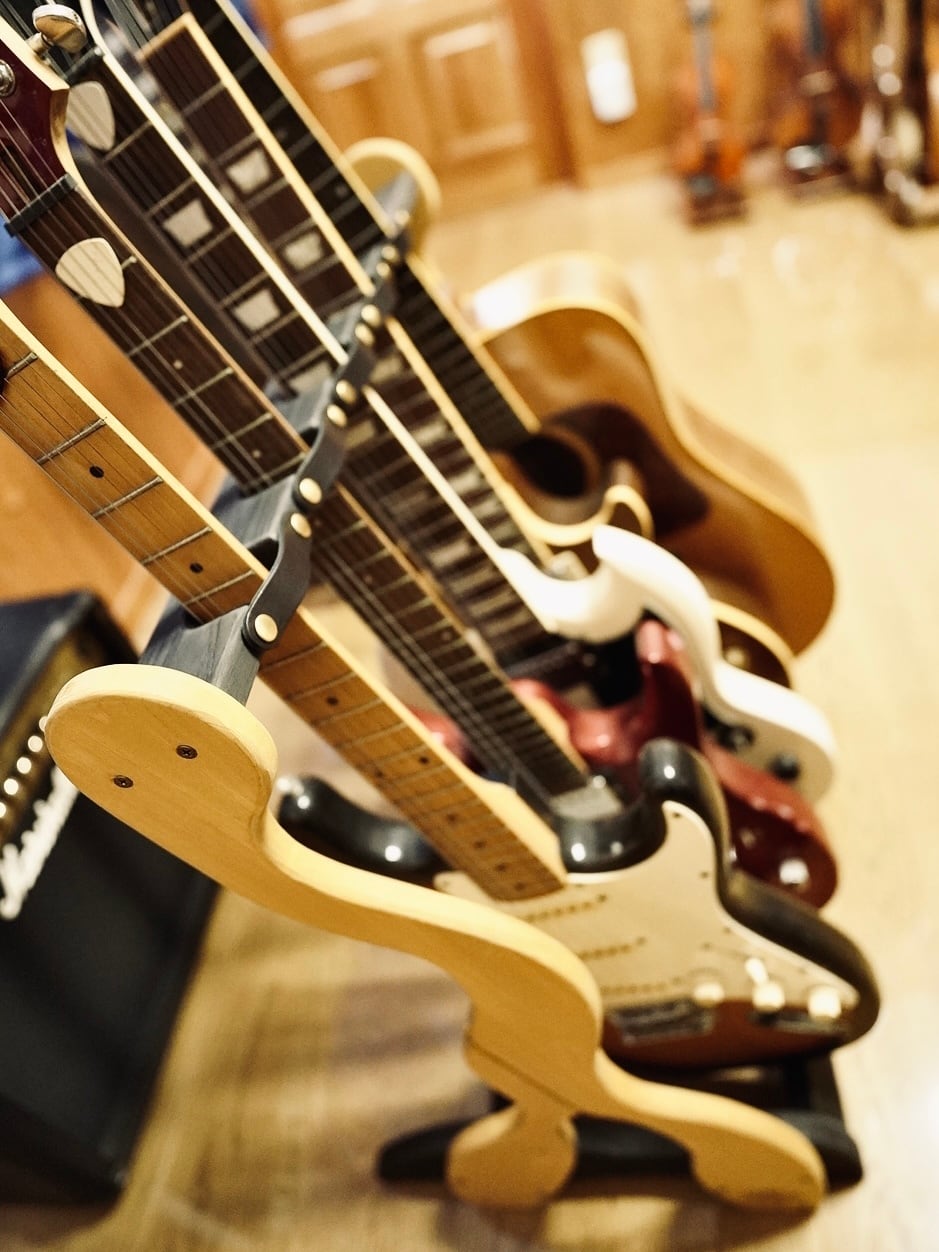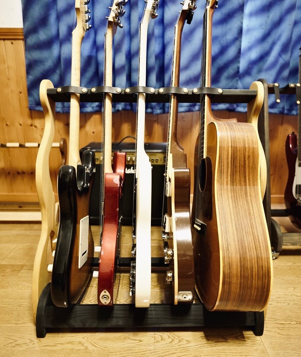 ・収納力: エレキ4本+アコギ1本を想定。形状が微妙に異なるハンドメイドの一点物です。