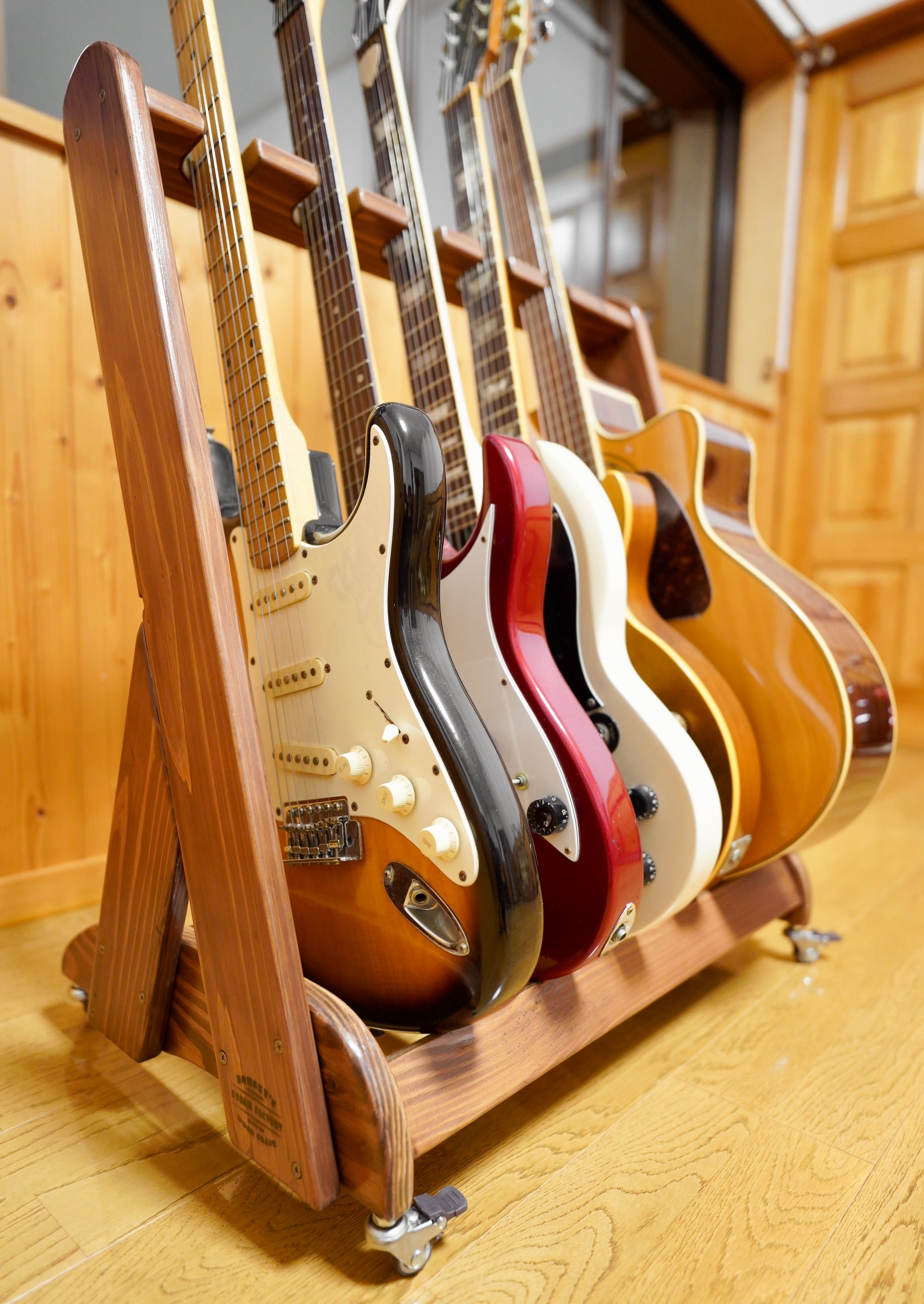 【24時間以内に発送】手作り木工 ギタースタンド (ニス仕上げ) 5本掛け