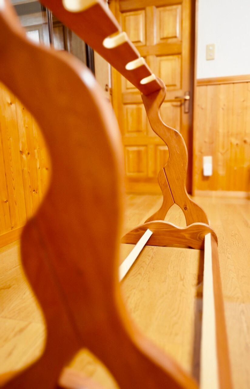 こちらは無垢材を使用したハンドメイドのギターラックです。