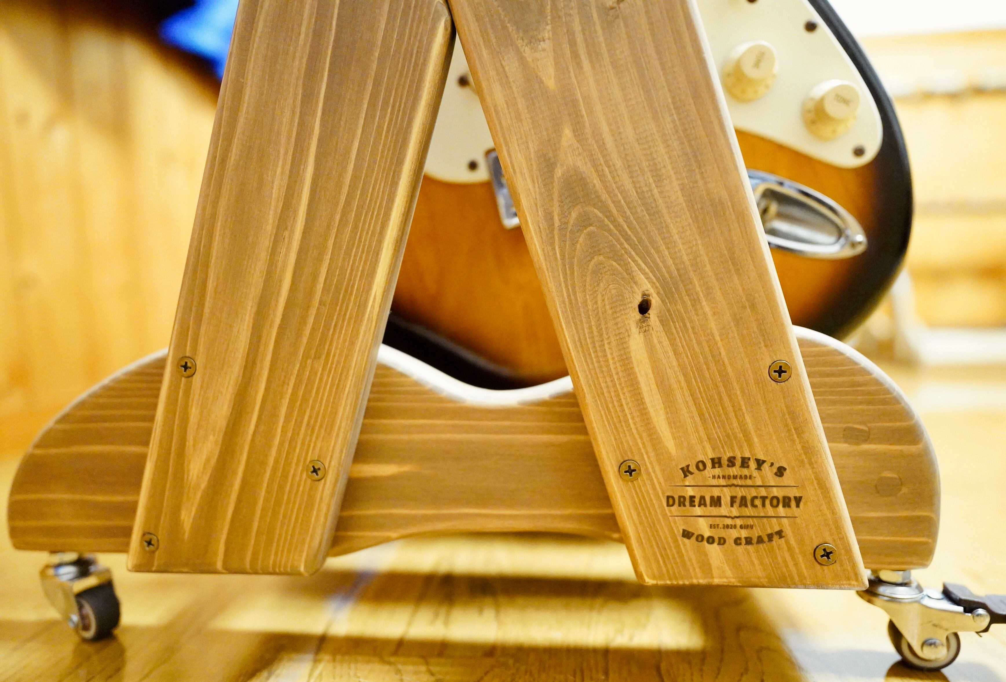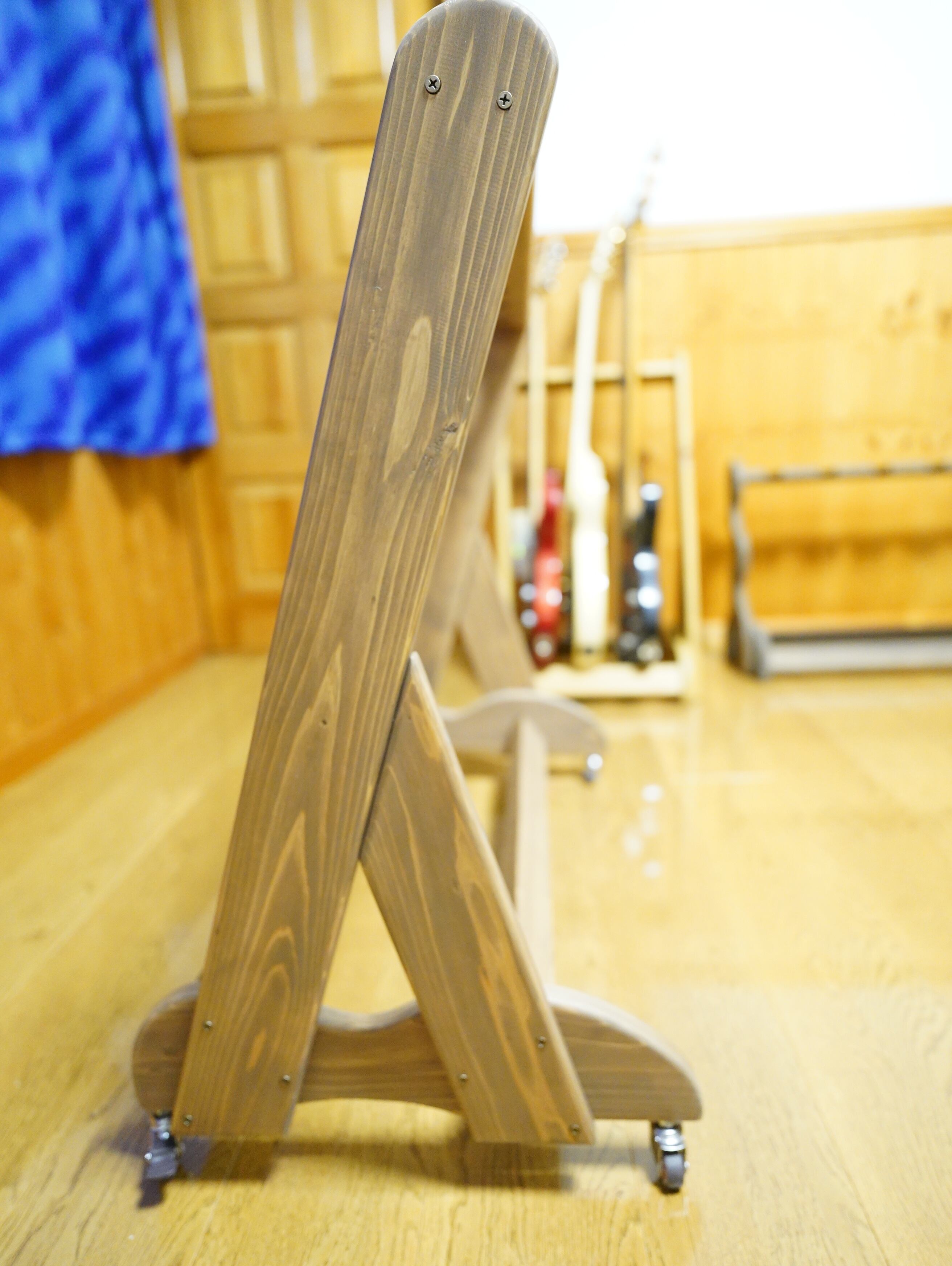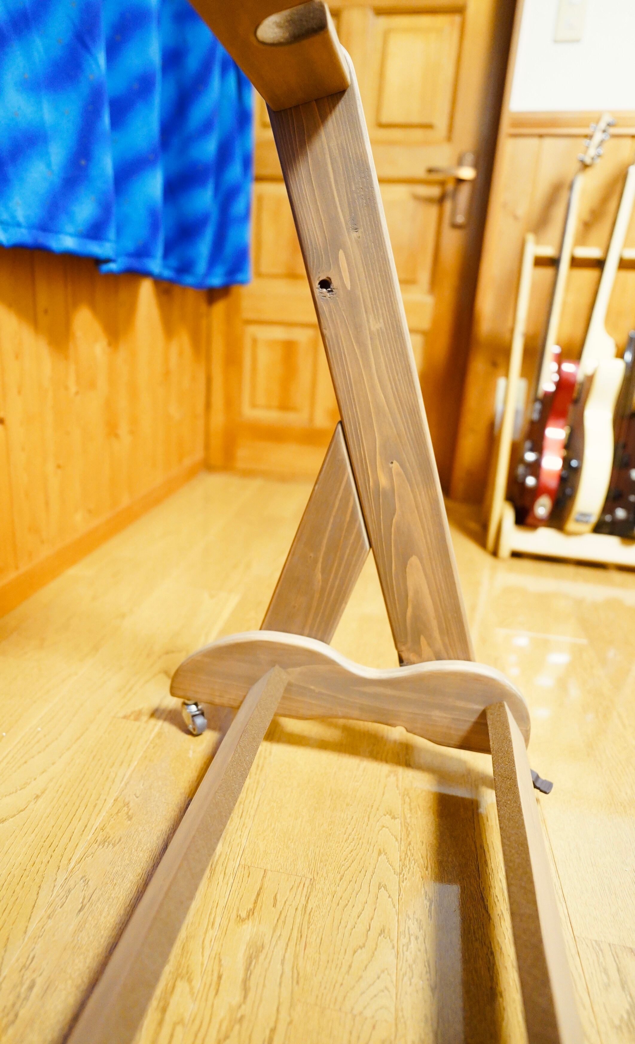 ギターを支える二本の横木は角度をつけてハの字にしてあり、