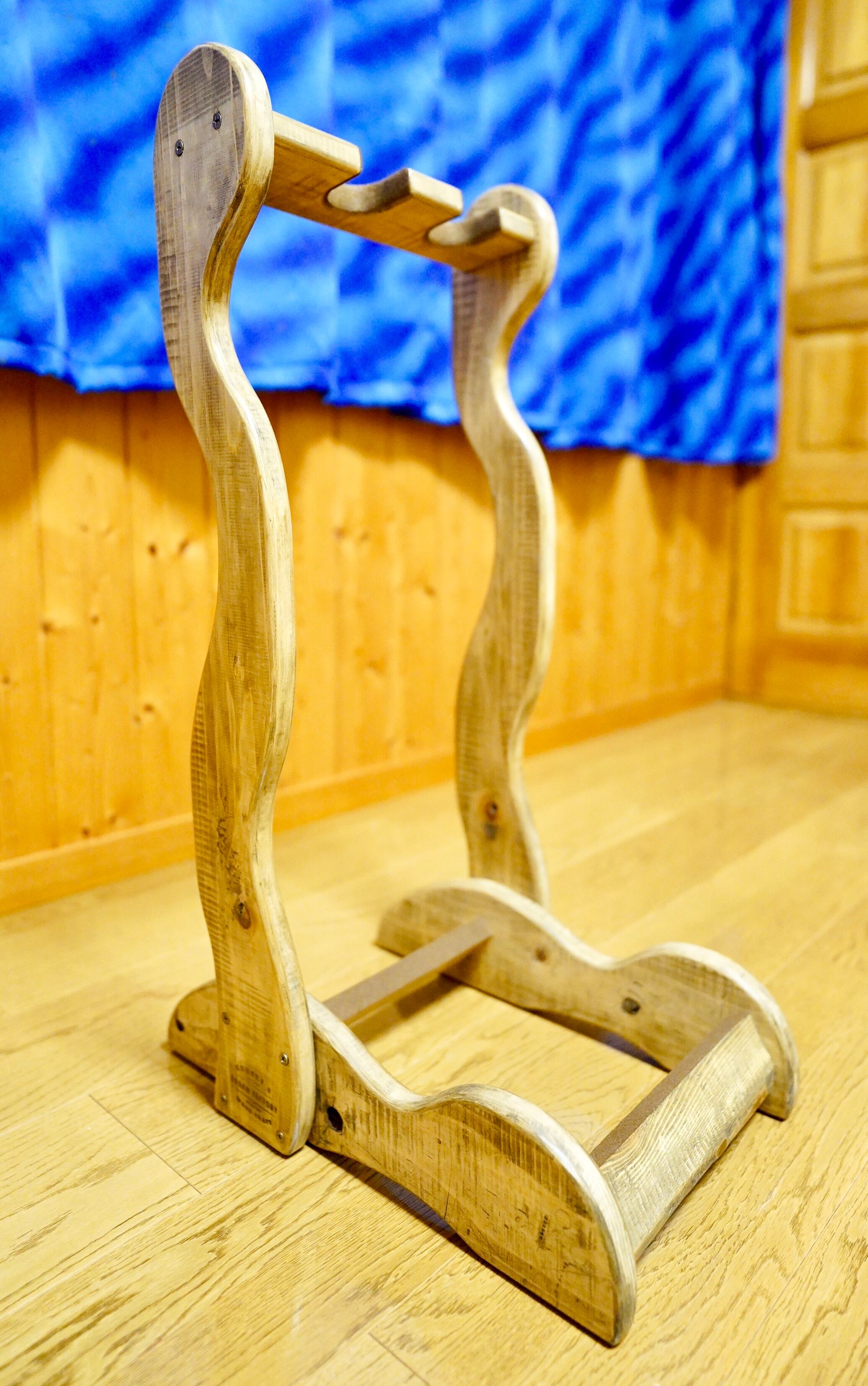 【24時間以内に発送】手作り木工 木製ギタースタンド (古材) 2本掛け