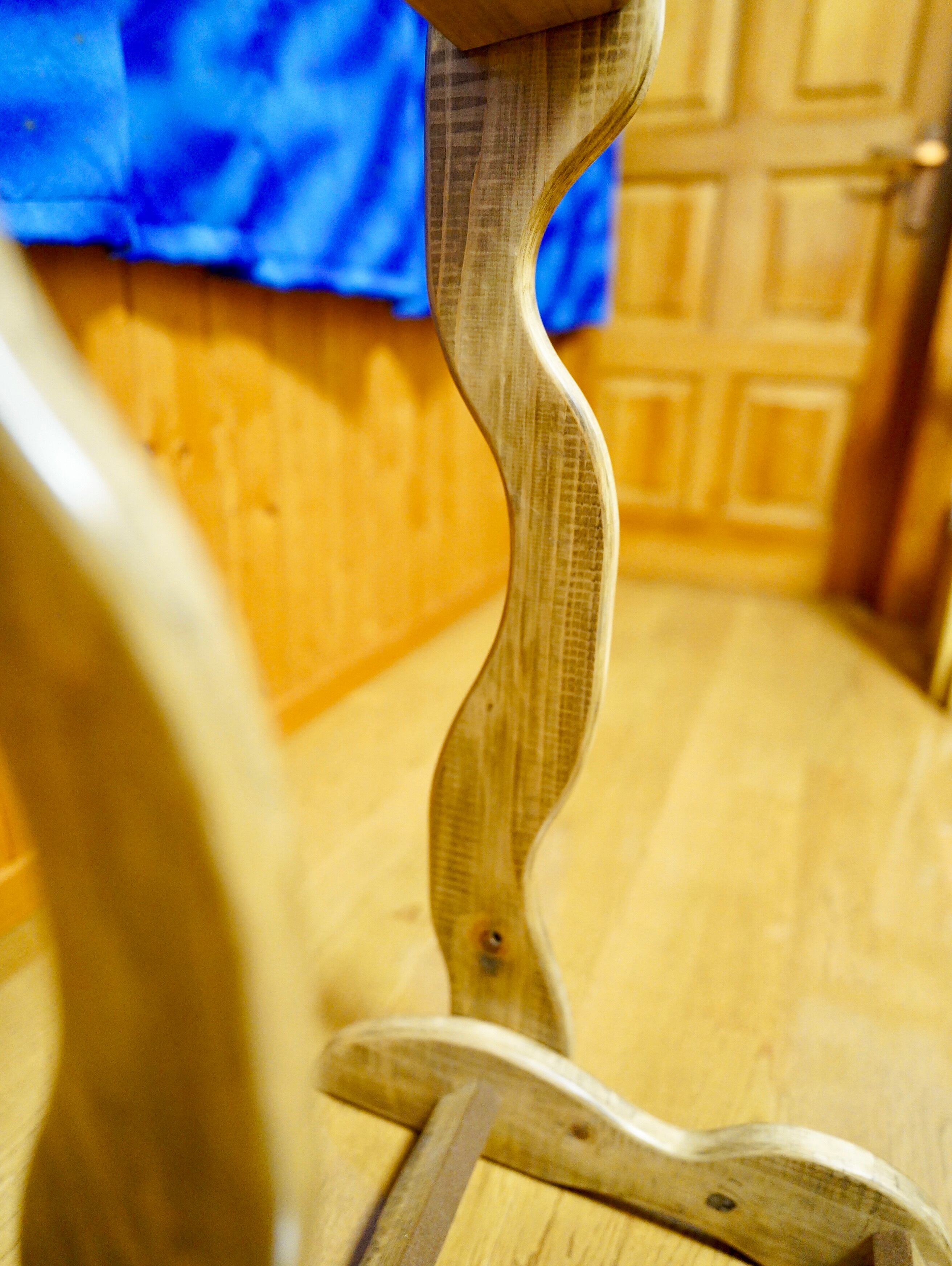 ギターのボディを支える二本の横木は角度をつけてハの字にしてあり、ボディをしっかりとキャッチできるように設計されています。
