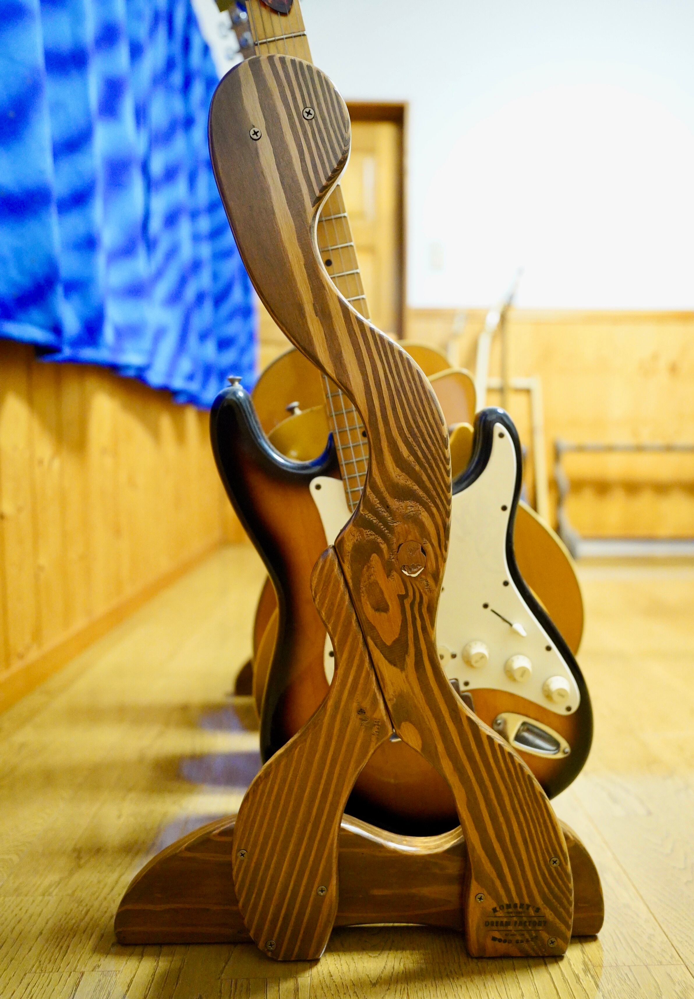 【24時間以内に発送】手作り木工 木製ギタースタンド (ニス仕上げ) 4本掛け